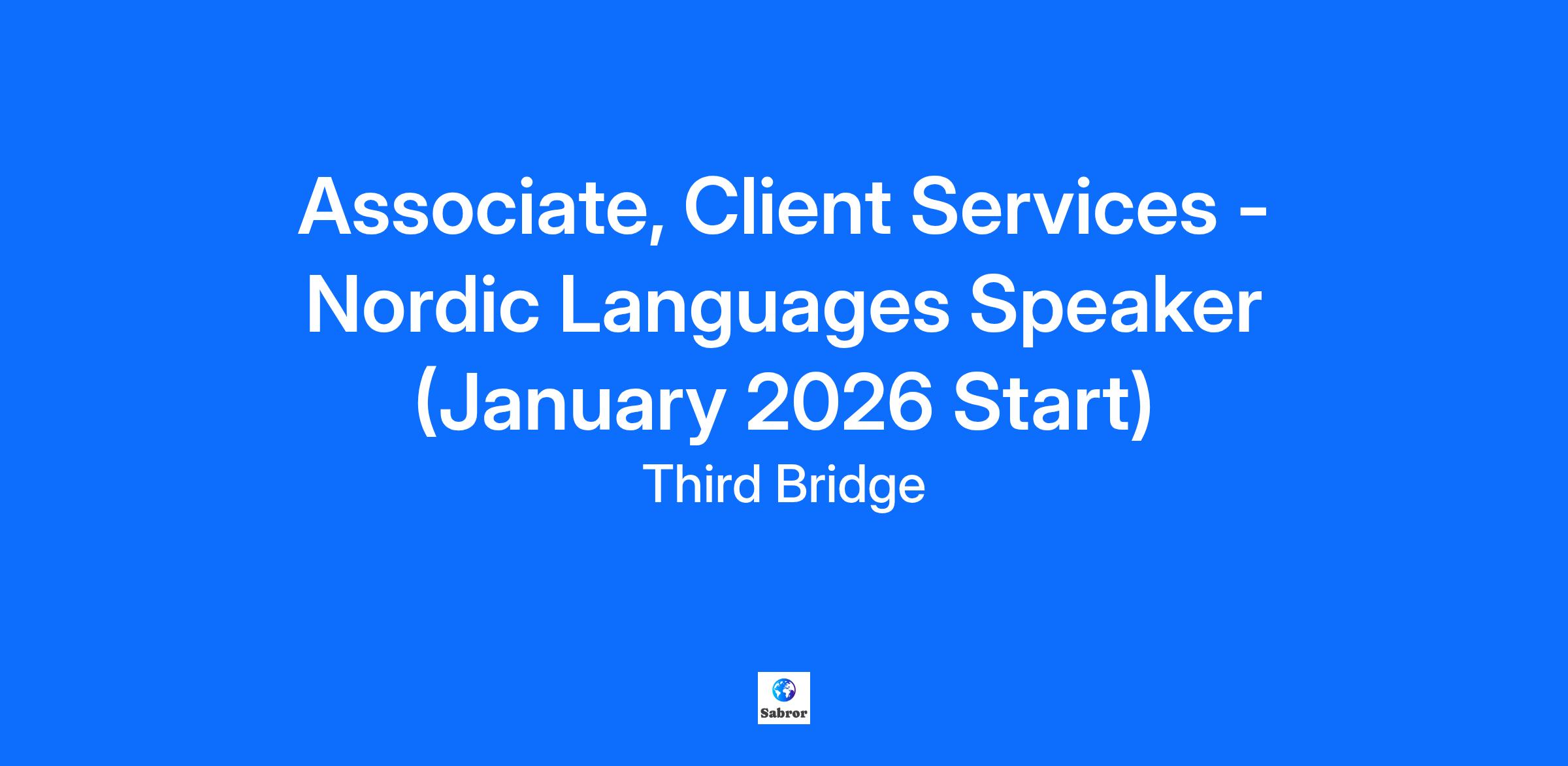Company DescriptionStart Dates: January, April, July & September 2026Want to accelerate your career in a high-energy, commercial role? If you’re competitive, a confident communicator, both on the phone and in person, and hungry to grow fast, our Associate role at Third Bridge could be your next big move.About Third BridgeWe connect the world’s top investors and business leaders to the insights that shape investment decisions. From private equity firms and hedge funds to leading consultancies, our clients count on us to find the exact expert they need - fast.Since 2007, we’ve grown to 1,500+ people across global financial hubs, becoming a trusted research partner to thousands of decision-makers. This is where ambitious people come to accelerate their careers.Job DescriptionWhy Join Us?We’re offering more than a role - we’re offering a career launchpad. As a Client Services Associate, you’ll develop the commercial awareness and business acumen that open doors to long-term careers in sales, account management, leadership, research and so much more. We promote from within, and our top performers move into management in as little as two years.You’ll thrive if you:Love a fast-paced, target-driven environmentHave the confidence to pick up the phone and start conversations with anyoneAre naturally curious, quick to learn and love to solve complex problemsBuild rapport fast and think on your feetAre resilient and motivated to exceed goalsWhat You’ll DoYou’ll be at the heart of our business - finding, calling, and engaging industry experts to deliver the insights our clients need, often under extremely tight deadlines. Expect to spend much of your day on the phone, persuading specialists to share their expertise and securing their time for client calls. Day to day, you’ll:Own projects end-to-end, truly understanding the specific client needs and scheduling high-calibre expert calls.Cold call and engage experts across industries, overcoming objections and winning buy-inWork at speed, managing multiple projects and clients at onceLearn fast, gaining broad knowledge of markets, business models, and regulationsCross-Sell the full range of Third Bridge services including content library, surveys, advisory, as well as 1-1 calls.What You’ll GainCommercial edge: Sales, negotiation, relationship-building skills and the opportunity to develop leadership skills very early in your careerClient exposure: Work with leading private equity firms, hedge funds, and consultanciesClear progression: Every manager started in the Associate role; promotion possible within 2 yearsAnnual Personal Development Allowance to invest in your growthWould you like to learn more about our Associate position? Take our free virtual job simulation and learn what it is like to work in this role.QualificationsWhat We’re Looking ForBusiness fluency in Danish, Finnish, Norwegian, Icelandic or Swedish (written and oral - Level C1 and above).You’re intellectually strong, you’re ambitious, have leadership or extracurricular experience, and have shown grit through internships, work experience, or other achievements.Additional InformationSalary and Benefits:Total first-year salary is expected to be £51,000–£68,000 (based on average-high performance). This is in line with a £40,000 base salary plus an uncapped performance bonus accessible after your first month.Enjoy comprehensive benefits including health, dental, vision, pension contributions, and more.Appreciate good work-life balance with 25+ vacation days, flex days, and work from anywhere for one month per yearBe part of our engaging culture with social events, professional development, and a dynamic, supportive team.  Key Words: Graduate Job, Graduate Scheme, Graduate Programme, Entry Level Job, Financial Services, Degree, Early Careers, Communication Skills, Problem-Solving Skills, Drive, Team Work, Management Consultancy Clients, Private Equity Firms Clients, Hedge Fund Clients, Investment Decisions, Cross-Sell, Expert Network, Client Services, Cold Call, Jobs in London, London Jobs, January, Nordic Languages Skills, Danish Language Skills, Finnish Language Skills, Norwegian Language Skills, Icelandic Language Skills, Swedish Language Skills