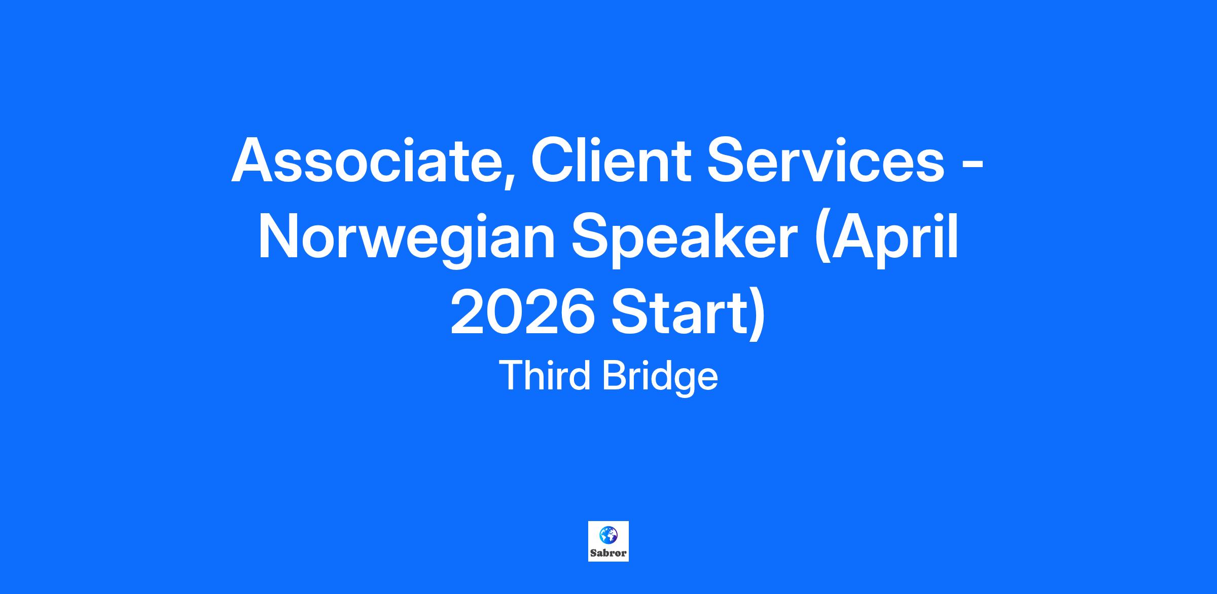 Company Description Start Dates: April, July & September 2026 Want to accelerate your career in a high-energy, commercial role? If you’re competitive, a confident communicator, both on the phone and in person, and hungry to grow fast, our Associate role at Third Bridge could be your next big move. About Third Bridge We connect the world’s top investors and business leaders to the insights that shape investment decisions. From private equity firms and hedge funds to leading consultancies, our clients count on us to find the exact expert they need - fast. Since 2007, we’ve grown to 1,500+ people across global financial hubs, becoming a trusted research partner to thousands of decision-makers. This is where ambitious people come to accelerate their careers. Job Description Why Join Us? We’re offering more than a role - we’re offering a career launchpad. As a Client Services Associate, you’ll develop the commercial awareness and business acumen that open doors to long-term careers in sales, account management, leadership, research and so much more. We promote from within, and our top performers move into management in as little as two years. You’ll thrive if you: Love a fast-paced, target-driven environment Have the confidence to pick up the phone and start conversations with anyone Are naturally curious, quick to learn and love to solve complex problems Build rapport fast and think on your feet Are resilient and motivated to exceed goals What You’ll Do You’ll be at the heart of our business - finding, calling, and engaging industry experts to deliver the insights our clients need, often under extremely tight deadlines. Expect to spend much of your day on the phone, persuading specialists to share their expertise and securing their time for client calls. Day to day, you’ll: Own projects end-to-end, truly understanding the specific client needs and scheduling high-calibre expert calls. Cold call and engage experts across industries, overcoming objections and winning buy-in Work at speed, managing multiple projects and clients at once Learn fast, gaining broad knowledge of markets, business models, and regulations Cross-Sell the full range of Third Bridge services including content library, surveys, advisory, as well as 1-1 calls. What You’ll Gain Commercial edge: Sales, negotiation, relationship-building skills and the opportunity to develop leadership skills very early in your career Client exposure: Work with leading private equity firms, hedge funds, and consultancies Clear progression: Every manager started in the Associate role; promotion possible within 2 years Annual Personal Development Allowance to invest in your growth Would you like to learn more about our Associate position? Take our free virtual job simulation and learn what it is like to work in this role. Qualifications What We’re Looking For Business fluency in Norwegian (written and oral - Level C1 and above). You’re intellectually strong, you’re ambitious, have leadership or extracurricular experience, and have shown grit through internships, work experience, or other achievements. Additional Information Salary and Benefits: Total first-year salary is expected to be £51,000–£68,000 (based on average-high performance). This is in line with a £40,000 base salary plus an uncapped performance bonus accessible after your first month. Enjoy comprehensive benefits including health, dental, vision, pension contributions, and more. Appreciate good work-life balance with 25+ vacation days, flex days, and work from anywhere for one month per year Be part of our engaging culture with social events, professional development, and a dynamic, supportive team. Key Words: Graduate Job, Graduate Scheme, Graduate Programme, Entry Level Job, Financial Services, Degree, Early Careers, Communication Skills, Problem-Solving Skills, Drive, Team Work, Management Consultancy Clients, Private Equity Firms Clients, Hedge Fund Clients, Investment Decisions, Cross-Sell, Expert Network, Client Services, Cold Call, Jobs in London, London Jobs, April, Norwegian Language Skills