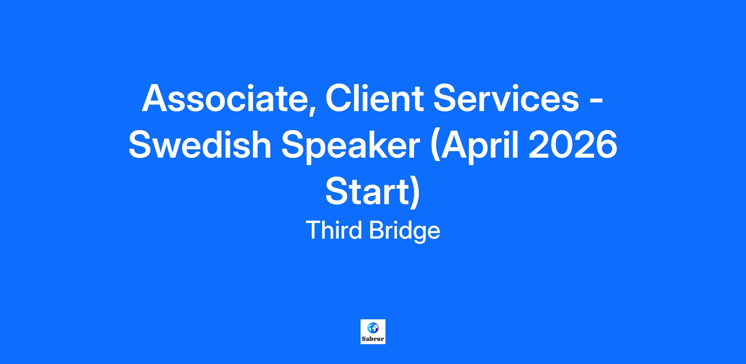 Company Description Start Dates: April, July & September 2026 Want to accelerate your career in a high-energy, commercial role? If you’re competitive, a confident communicator, both on the phone and in person, and hungry to grow fast, our Associate role at Third Bridge could be your next big move. About Third Bridge We connect the world’s top investors and business leaders to the insights that shape investment decisions. From private equity firms and hedge funds to leading consultancies, our clients count on us to find the exact expert they need - fast. Since 2007, we’ve grown to 1,500+ people across global financial hubs, becoming a trusted research partner to thousands of decision-makers. This is where ambitious people come to accelerate their careers. Job Description Why Join Us? We’re offering more than a role - we’re offering a career launchpad. As a Client Services Associate, you’ll develop the commercial awareness and business acumen that open doors to long-term careers in sales, account management, leadership, research and so much more. We promote from within, and our top performers move into management in as little as two years. You’ll thrive if you: Love a fast-paced, target-driven environment Have the confidence to pick up the phone and start conversations with anyone Are naturally curious, quick to learn and love to solve complex problems Build rapport fast and think on your feet Are resilient and motivated to exceed goals What You’ll Do You’ll be at the heart of our business - finding, calling, and engaging industry experts to deliver the insights our clients need, often under extremely tight deadlines. Expect to spend much of your day on the phone, persuading specialists to share their expertise and securing their time for client calls. Day to day, you’ll: Own projects end-to-end, truly understanding the specific client needs and scheduling high-calibre expert calls. Cold call and engage experts across industries, overcoming objections and winning buy-in Work at speed, managing multiple projects and clients at once Learn fast, gaining broad knowledge of markets, business models, and regulations Cross-Sell the full range of Third Bridge services including content library, surveys, advisory, as well as 1-1 calls. What You’ll Gain Commercial edge: Sales, negotiation, relationship-building skills and the opportunity to develop leadership skills very early in your career Client exposure: Work with leading private equity firms, hedge funds, and consultancies Clear progression: Every manager started in the Associate role; promotion possible within 2 years Annual Personal Development Allowance to invest in your growth Would you like to learn more about our Associate position? Take our free virtual job simulation and learn what it is like to work in this role. Qualifications What We’re Looking For Business fluency in Swedish (written and oral - Level C1 and above). You’re intellectually strong, you’re ambitious, have leadership or extracurricular experience, and have shown grit through internships, work experience, or other achievements. Additional Information Salary and Benefits: Total first-year salary is expected to be £51,000–£68,000 (based on average-high performance). This is in line with a £40,000 base salary plus an uncapped performance bonus accessible after your first month. Enjoy comprehensive benefits including health, dental, vision, pension contributions, and more. Appreciate good work-life balance with 25+ vacation days, flex days, and work from anywhere for one month per year Be part of our engaging culture with social events, professional development, and a dynamic, supportive team. Key Words: Graduate Job, Graduate Scheme, Graduate Programme, Entry Level Job, Financial Services, Degree, Early Careers, Communication Skills, Problem-Solving Skills, Drive, Team Work, Management Consultancy Clients, Private Equity Firms Clients, Hedge Fund Clients, Investment Decisions, Cross-Sell, Expert Network, Client Services, Cold Call, Jobs in London, London Jobs, April, Swedish Language Skills