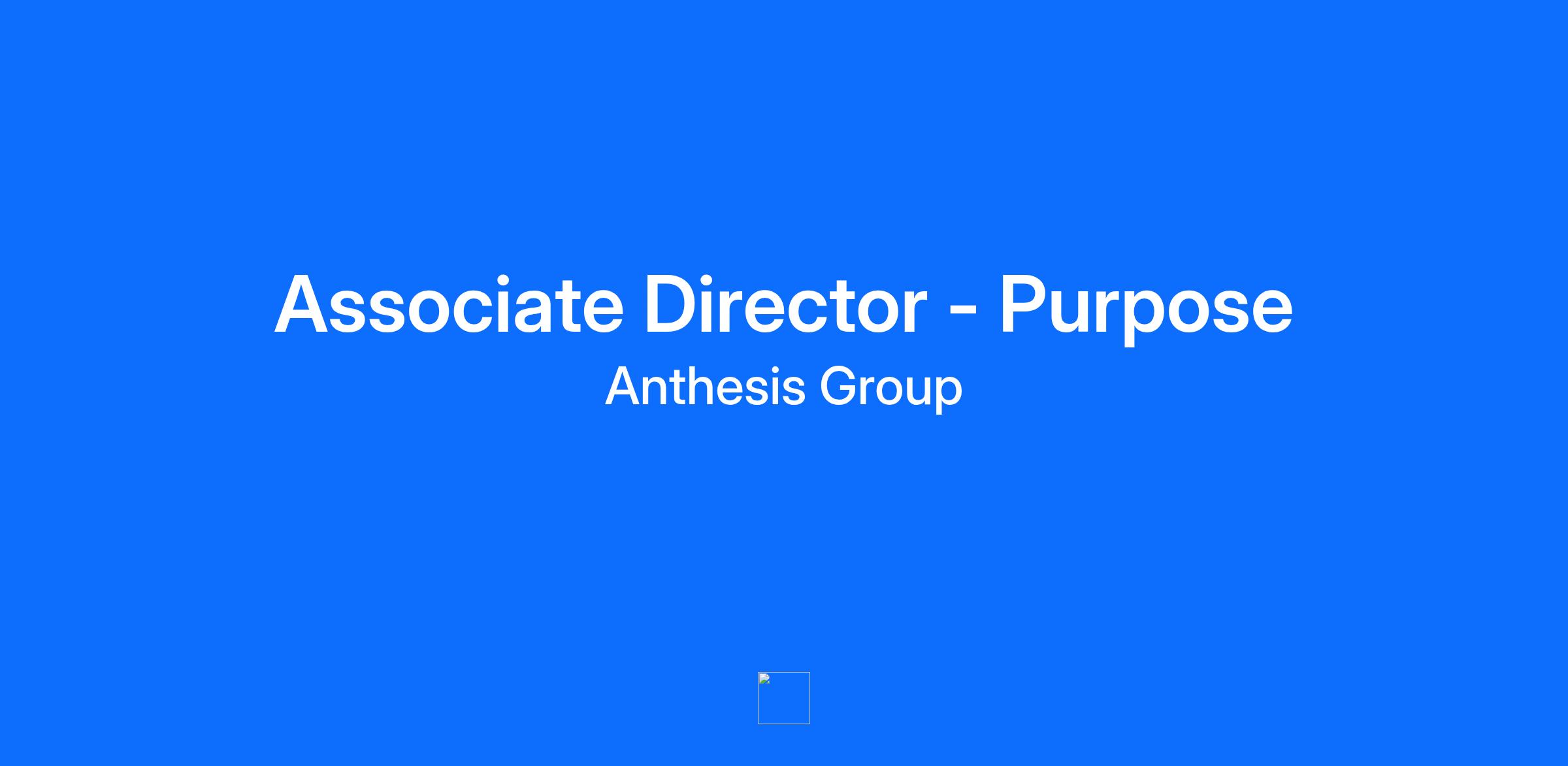 Associate Director - Purpose Department: Leadership & Change : Leadership & Change Employment Type: Permanent - Full Time Location: UK - London Description As an Associate Director in our Purpose Consulting team, you will lead strategic projects that help large organizations define, embed, and activate their purpose. This senior consulting role requires deep expertise in purpose strategy and the ability to deliver transformative work for major clients. The role will also require the candidate to play a key role in business development. Key Responsibilities Client Delivery: Lead purpose strategy engagements for large businesses, managing projects valued at £250k+. Develop and deliver high-quality strategic recommendations that help clients develop and deliver their organisational purpose Link these recommendations to growth ensuring purpose is seen as a valuable tool for the business and an idea that is bought into across the organisation Manage and mentor project teams, ensuring excellence in delivery and client satisfaction. • Build strong relationships with senior client stakeholders and act as a trusted advisor. Growth: Expand existing accounts through strong client relationships and strategic insight. Sales: Achieve annual sales targets of £400k+ through new business development and account growth. Contribute to business development, including proposal writing and pitching for new opportunities. Stay ahead of trends in purpose, sustainability, and corporate strategy to inform client work and thought leadership. Skills, Knowledge & Expertise 8+ years of experience in purpose, management consulting or a related field, with a focus on purpose strategy. Proven track record of leading large-scale projects for major organizations. Strong understanding of organizational purpose and its role in business strategy. • Exceptional leadership, communication, and stakeholder management skills. Ability to manage complex projects and deliver results under pressure. Experience of working with senior level stakeholders and leading and managing internal project teams Job Benefits Your Benefits Work within a highly motivated team in an innovative and rapidly growing global company Opportunity to have a direct impact and be a key part of the growth and development of the business and the team Work solely on projects that have an impact on the sustainability and climate change goals/challenges for clients Opportunity to work with, collaborate with and learn from sustainability SME’s who are passionate about the work they do and the impact Anthesis can have Exposure to a wide range of clients and projects on a global basis Competitive salary in line with, experience and skills Competitive benefits including flexible working, 25 days holiday and two volunteering days off and the day off for your Birthday! An opportunity to participate in the Anthesis Employee Participation Plan (EPP), an industry-pioneering employee incentive plan that allows all employees to be rewarded for the growth in the equity value of Anthesis. Cooperative, supportive and open working atmosphere.