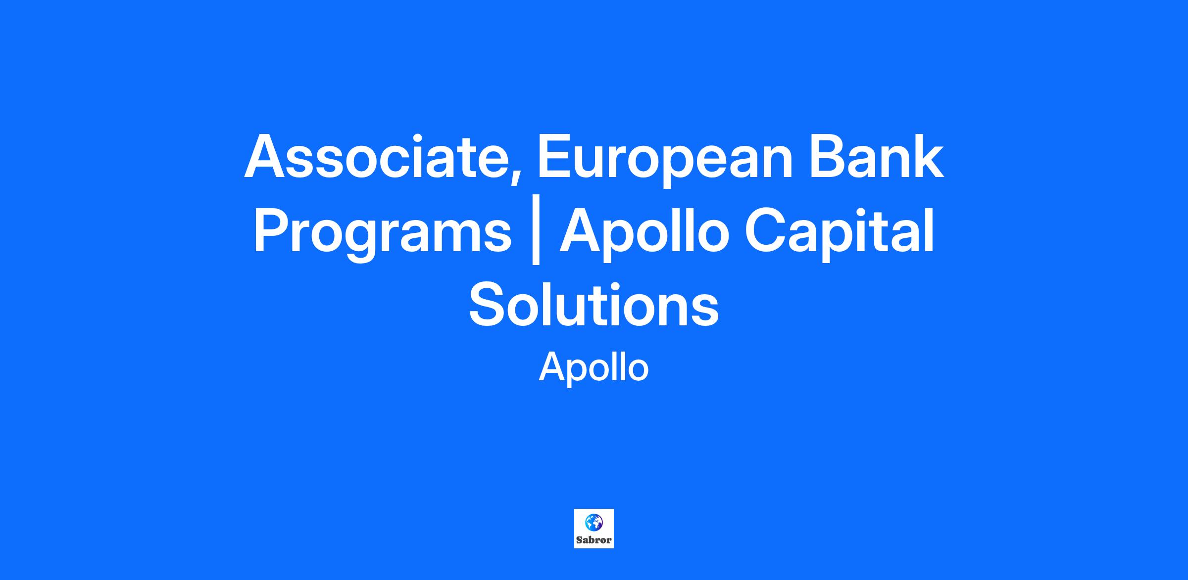Position Overview Apollo Capital Solutions (“ACS”) anchors the Firm’s capital markets, syndication, and dedicated origination efforts. As one centralized team, ACS partners with each of Apollo’s investment businesses to provide capital markets expertise, structuring, execution, and ultimately drive syndication efforts on investments across the Credit, Hybrid, and Equity spectrum. You can learn more about Apollo’s ACS strategy here. The Bank Programs & Partnerships team within ACS plays a critical role in the firm’s strategy to expand its partnerships with banks and capital markets participants. These programs are designed to unlock scalable, recurring fee revenue and originations across the platform. The Associate will support our Programs lead to manage and execute bank program initiatives across Europe. This role provides a unique opportunity to sit at the intersection of strategic partnerships, product innovation, and capital markets execution, helping to advance Apollo’s growth and connectivity with leading financial institutions. The ideal candidate is analytical, commercially minded, and entrepreneurial, with strong attention to detail and an ability to manage multiple workstreams in a fast-paced, high-impact environment. Primary Responsibilities: Support the execution of strategic partnerships with banks and capital markets participants, including risk transfer, fee generation, and origination initiatives Assist in evaluating deal flow, preparing underwriting memos, and advancing deals through Apollo’s investment process for program-related opportunities Help manage the day-to-day execution of ongoing programs, including both relationship and execution coverage of external partners and active coordination with internal constituents Track and monitor revenue and origination performance against program targets Prepare presentation materials, marketing pitches, case studies, and business plans for internal senior management, committees, and external partner institutions Qualifications & Experience 3+ years of experience in investment banking, capital markets, corporate strategy, or consulting Prior experience working with banking or capital markets counterparties preferred Undergraduate degree from a leading academic institution with a record of academic achievement Familiarity with structured finance, credit, or partnership-based business models Strong financial modelling, analytical, and problem-solving skills, with the ability to translate data into actionable insights Exceptional project management and organizational abilities, with a track record of managing multiple workstreams and stakeholders Excellent communication and presentation skills, including experience drafting materials for senior management and external partners Collaborative, resourceful, and self-motivated, with a commercial mindset and ability to thrive in a dynamic, high-performance environment About Apollo Apollo is a high-growth, global alternative asset manager. In our asset management business, we seek to provide our clients excess return at every point along the risk-reward spectrum from investment grade credit to private equity. For more than three decades, our investing expertise across our fully integrated platform has served the financial return needs of our clients and provided businesses with innovative capital solutions for growth. Through Athene, our retirement services business, we specialize in helping clients achieve financial security by providing a suite of retirement savings products and acting as a solutions provider to institutions. Our patient, creative, and knowledgeable approach to investing aligns our clients, businesses we invest in, our employees, and the communities we impact, to expand opportunity and achieve positive outcomes. As of June 30, 2025, Apollo had approximately $840 billion of assets under management. To learn more, please visit www.apollo.com. OUR PURPOSE AND CORE VALUES Our clients rely on our investment acumen to help secure their future. We must never lose our focus and determination to be the best investors and most trusted partners on their behalf. We strive to be: The leading provider of retirement income solutions to institutions, companies, and individuals. The leading provider of capital solutions to companies. Our breadth and scale enable us to deliver capital for even the largest projects – and our small firm mindset ensures we will be a thoughtful and dedicated partner to these organizations. We are committed to helping them build stronger businesses. A leading contributor to addressing some of the biggest issues facing the world today – such as energy transition, accelerating the adoption of new technologies, and social impact – where innovative approaches to investing can make a positive difference. We are building a unique firm of extraordinary colleagues who: Outperform Expectations Challenge Convention Champion Opportunity Lead Responsibly Drive Collaboration As One Apollo team, we believe that doing great work and having fun go hand in hand, and we are proud of what we can achieve together. OUR BENEFITS Apollo relies on its people to keep it a leader in alternative investment management, and the firm’s benefit programs are crafted to offer meaningful coverage for both you and your family. Come to Apollo and join a community of extraordinary people who are committed to a culture of excellence and collaboration in everything that we do. We invest in our people for the long term and are committed to supporting their development at every stage of their career. Join Apollo and learn from some of the smartest problem-solvers in the world to build your career and make your mark on the future of finance.