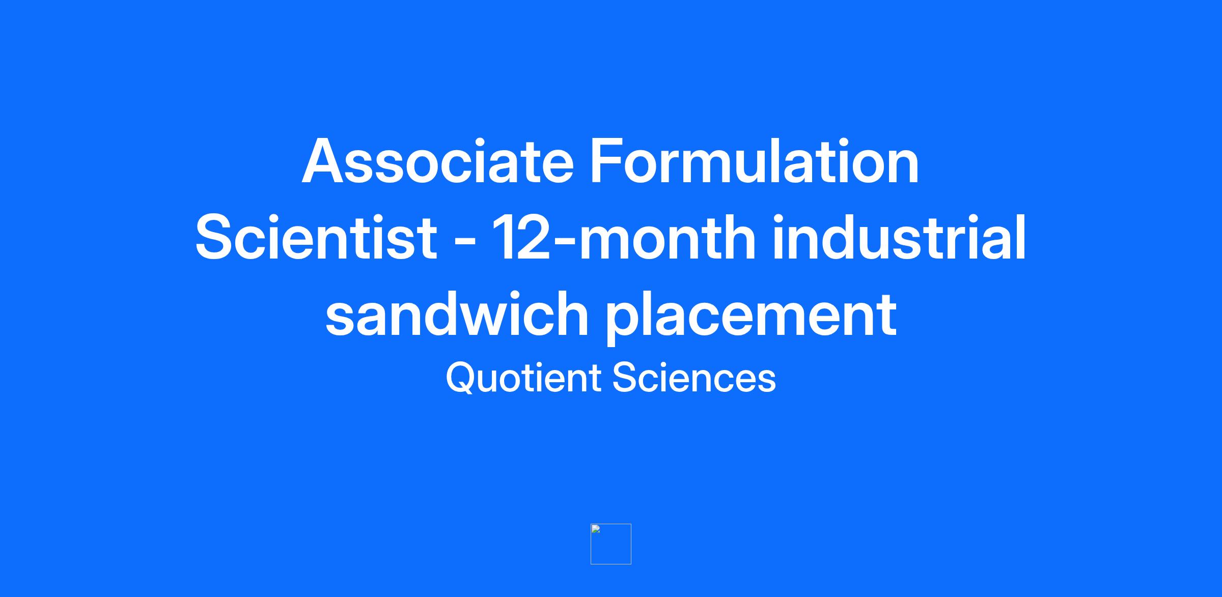 Quotient Sciences: Molecule to Cure. Fast. Quotient Sciences is a leading drug development and manufacturing accelerator, helping biotech and pharma companies bring new medicines to patients faster. With over 35 years of experience and a track record of success, we provide Drug Product (CDMO) and Clinical (CRO) services across the entire development pathway, including formulation development, clinical pharmacology, clinical trials, and commercial product manufacturing. Our proprietary and disruptive platform – “Translational Pharmaceutics®” – integrates Drug Product Manufacturing and Clinical Testing to eliminate silos in the drug development process. This in turn reduces costs, improves outcomes, and significantly accelerates drug development times. Why join us: Because every day counts when bringing new medicines to patients. Our 1,000+ experts across the US, UK, and beyond are united by science, agility, and a culture that turns ideas into impact—fast. About the Role Join our Pharmaceutical Sciences Development team at Quotient Sciences as an Associate Formulation Scientist on a 12-month industrial sandwich placement. This is an exciting opportunity to gain hands-on experience in formulation development within a fast-paced, science-driven environment. You will support the development and characterisation of drug formulations, contributing to projects that accelerate molecules from early development through clinical testing. This role is ideal for students seeking a sandwich placement year as part of their degree. Key Responsibilities Assist in pre-formulation and formulation development experiments. Prepare and characterise dosage forms under supervision. Document laboratory work in compliance with SOPs and GMP standards. Collaborate with cross-functional teams to meet project objectives. Maintain a safe and compliant laboratory environment. What We’re Looking For Currently enrolled in a degree programme that includes a placement year. Studying a relevant subject such as Pharmaceutical Sciences, Chemistry, Pharmacy, or Drug Delivery. Strong interest in formulation science and drug development. Ability to commit to a full-time 12-month placement starting June–September 2026. Reliable, enthusiastic, and self-motivated Good computer skills including MS Excel, PowerPoint, and Word. Good verbal and written communication skills. Why Join Us? Gain practical experience in a leading drug development organisation. Work alongside experienced scientists on real-world projects. Develop technical and professional skills in a supportive environment. Application Requirements When applying for a position with Quotient Sciences to be able to work in our organization you must be aged 18 years or over and not have been debarred by the FDA. If you indicate you are under the age of 18 or have been debarred then your application will be automatically declined. Our Commitment to Diversity, Equity and Inclusion Quotient Sciences are advocates for positive change and conscious inclusion. We strive to create a diverse Quotient workforce and develop a workplace culture that provides a sense of acceptance for every person within our organization. As a global employer, we recognize the value in having an organization that is a true reflection and representation of our society today. Specifically we will not discriminate on the basis of race, color, creed, religion, gender, gender identity, pregnancy, marital status, partnership status, domestic violence victim status, sexual orientation, age, national origin, alienage or citizenship status, veteran or military status, disability, medical condition, genetic information, caregiver status, unemployment status or any other characteristic prohibited by federal, state and/or local laws. This applies to all aspects of employment, including hiring, promotion, demotion, compensation, training, working conditions, transfer, job assignments, benefits, layoff, and termination.