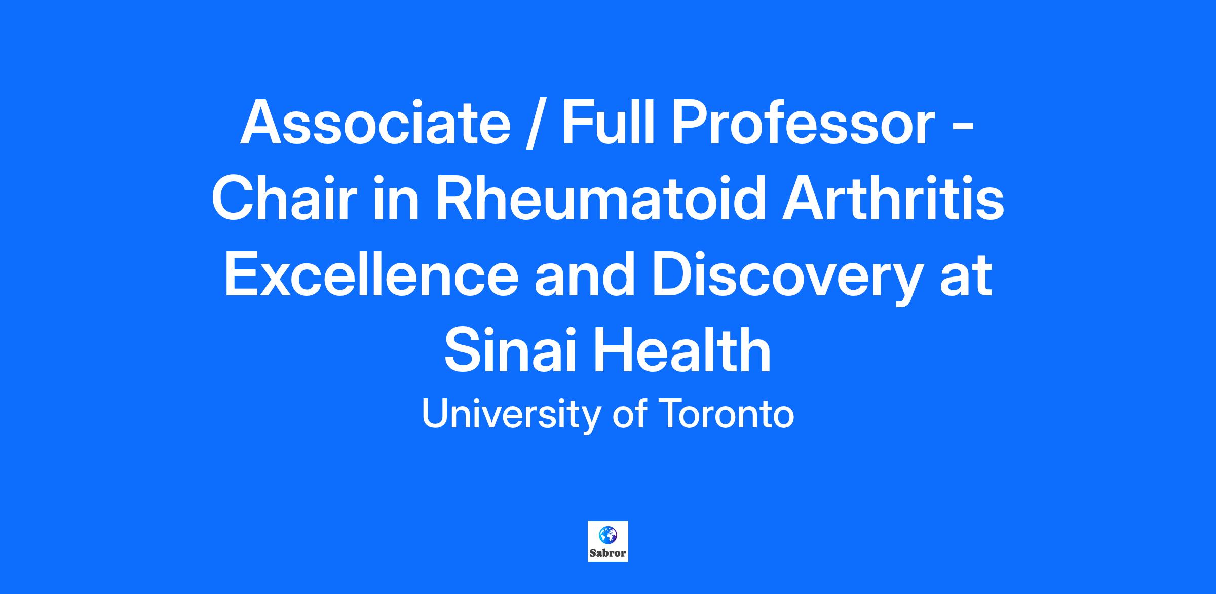 Date Posted: 07/23/2025 Closing Date: 11/15/2025, 11:59PM ET Req ID: 44396 Job Category: Faculty - Clinical Faculty/Division: Temerty Faculty of Medicine Department: Dept of Medicine Hospital Affiliation: Sinai Health System Campus: St. George (Downtown Toronto) Description: Sinai Health System and the University of Toronto are seeking applications for a Clinician Scientist to become the inaugural Chair in Rheumatoid Arthritis Excellence and Discovery at the Sinai Health System. The effective start date of the appointment is negotiable but expected to be January 1, 2026. The Division of Rheumatology is seeking to advance the frontiers of rheumatoid arthritis (RA) care, research, innovation, and advocacy. Sinai Health has been recognized as an international centre of excellence in RA and our program has made discoveries and multiple contributions over the years. In a ground-breaking approach, we aim to seamlessly integrate our multimodal expertise in RA with the ultimate goal of enhancing patient outcomes. Aligned with Sinai Health System's dedication to leading in the management of complexity, the Chair in Rheumatoid Arthritis Excellence and Discovery will spearhead initiatives focused on promoting advances in person-centered care. The successful candidate will be part of a large, academically successful rheumatology unit with a clinical role aligned with divisional and departmental priorities. The Division of Rheumatology incorporates exemplary clinical care with an active clinical research program and a strong presence in medical education at the internal medicine, subspecialty, and fellowship levels. Our scientists support the educational activities of the division. The successful candidate must hold or be eligible for a full-time clinical academic appointment at the rank of Associate or Full Professor at the University of Toronto. He/she/ they must hold an MD degree and have successfully completed approved postgraduate subspecialty training in rheumatology resulting in recognized certification as a rheumatologist. He/she/ they must have, or be eligible for, licensure in Ontario. Candidates should have graduate training in an area of scholarship that aligns with their research and scholarly endeavours. This position is for a 5-year term, and renewable following a successful review. The successful candidate will report directly to the University of Toronto and Sinai Health System leadership for the Division of Rheumatology and the Department of Medicine. The successful applicant should have leadership experience and must have an established track record of achievement in collaborative clinical, basic and/or translational research. He/she/ they should be a national / international expert in his/her/ their field. She/he/ they will be expected to develop a successful strategic plan and fundraising program for RA research within an academic health sciences hospital. Academic excellence will be assessed by review of applicants’ peer-reviewed publications, research grants, other documentation of relevant creative professional activities, invitations to, and presentations at, significant conferences and events, awards, and accolades. These attributes should be supported by experience in clinical teaching and supervision. Academic rank, job description, salary and contractual arrangements will be commensurate with the qualifications and experience of the successful candidate. The successful candidate would also have a primary clinical research appointment at the Lunenfeld-Tanenbaum Research Institute. Remuneration and start-up funding is multi-sourced and includes base salary support, commensurate with the job description, funding through clinical (fee-for-service) billings, the Alternate Funding Plan, and funds from the endowed Chair. The Chair is endowed at $3 Million and is resourced to provide annual revenues to be used for both direct Chair support and scholarly activities, with expenditures to be approved by the Hospital Chief of Rheumatology. Closing date for applications: November 15, 2025 Interested individuals should send a copy of their curriculum vitae, the names and contact information of three referees, and a cover letter describing relevant experience and reason for interest in this role to: Dr. Nigil Haroon Division Head, Rheumatology, Mount Sinai Hospital, Room 2-221 600 University Ave. Toronto ON M5G 1X5 e-mail: Shirlene.Eliathamby@uhn.ca phone: (416) 603-5001 CAUTION: This ad is “posted only” to the U of T affiliated hospital job board. Please see the information directly above for the application instructions; applications submitted via the "Apply Now" button on this page will NOT be considered for this position. For more information about the Division of Rheumatology please visit https://deptmedicine.utoronto.ca/rheumatology