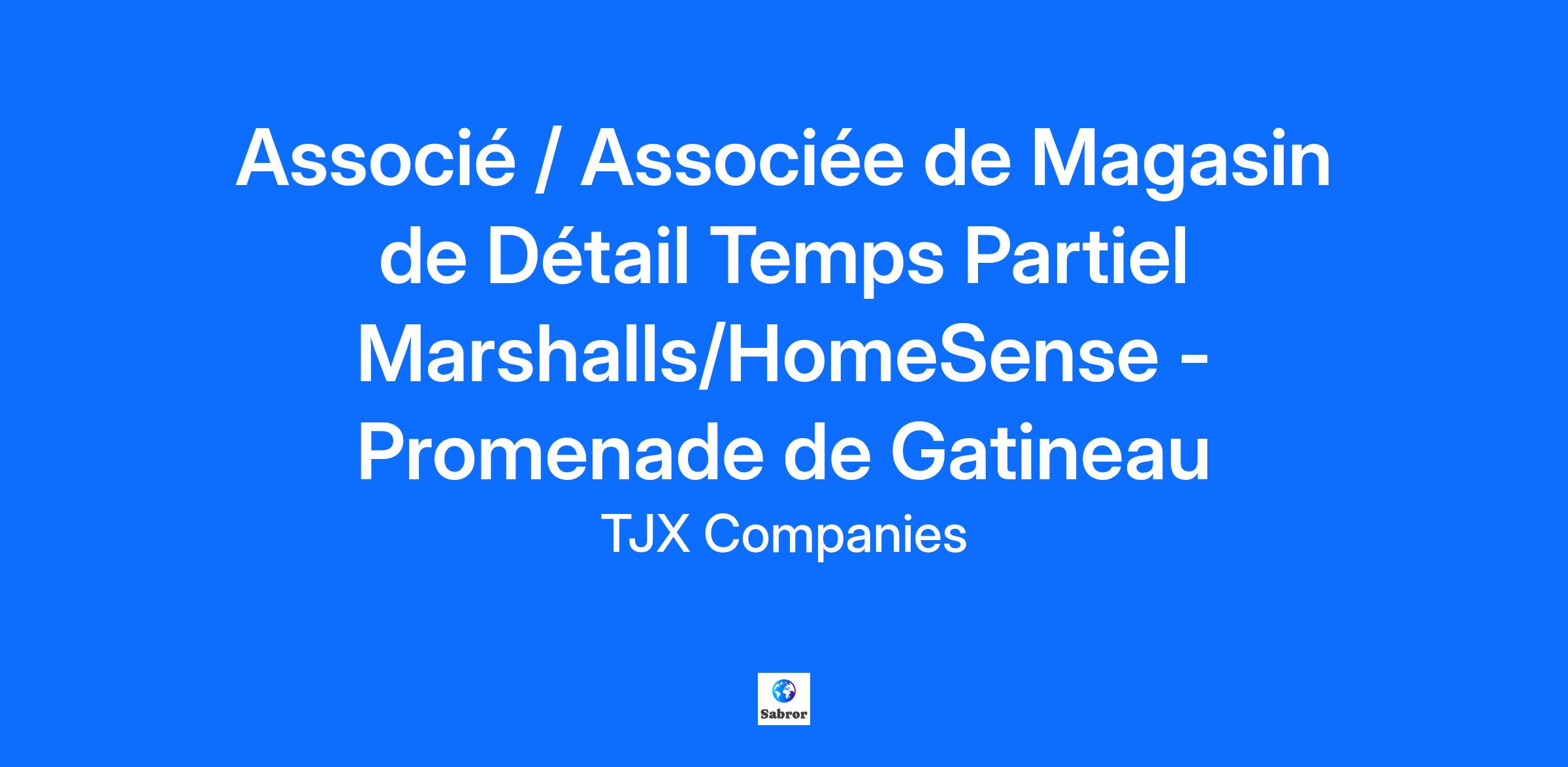 Marshalls At TJX Canada, every day brings new opportunities for growth, exploration, and achievement. You’ll be part of our vibrant team that embraces diversity, fosters collaboration, and prioritizes your development. Whether you’re working in our Distribution Centers, Corporate Offices, or Retail Stores—WINNERS, HomeSense, and Marshalls, you’ll find abundant opportunities to learn, thrive, and make an impact. Come join our TJX family—a Fortune 100 company and the world’s leading off-price retailer. Here at TJX Canada, we are an equal opportunity employer committed to the inclusion and accommodation of all individuals. Job Description: Offre d’emploi d’associé(e) de magasin de detail Nous sommes à la recherche d’associé(e)s de magasin qui rejoindront notre équipe au sein d’un environnement accueillant. Que vous soyez en début de carrière ou que vous ayez déjà de l’expérience, nous serions ravis de travailler avec vous et de vous aider à évoluer. Pourquoi travailler avec nous? Profitez de rabais exclusifs dans nos magasins, pour vous et les membres admissibles de votre famille. Nous valorisons l’intégrité, le respect et le travail d’équipe, en favorisant une culture inclusive unique. Nous proposons des ressources de formation et de perfectionnement conçues pour vous permettre d’apprendre, d’évoluer et de réussir. Nous vous offrons, à vous et à votre famille, un soutien grâce à nos programmes d’aide pour les associé(e)s et leur famille, qui mettent à disposition des ressources et des services utiles pour améliorer votre bien-être. Ce que vous ferez : Créer une atmosphère chaleureuse en accueillant les clients avec le sourire, en leur apportant votre aide afin de répondre à leurs besoins et en veillant à leur offrir une expérience de magasinage positive. Assumer des tâches variées, pouvant aller de servir les clients à la caisse et de les aider en salle d’essayage à apporter son soutien à l’entrepôt et veiller à ce que le magasin reste propre et accueillant. Saisir les possibilités de croissance en participant à des programmes d’apprentissage et de perfectionnement pour renforcer vos compétences et vos connaissances. Intégrer une équipe soudée et collaborative, travaillant ensemble à l’atteinte d’objectifs communs. À propos de vous : Vous êtes sympathique et abordable et capable de créer un environnement chaleureux et inclusif en faisant en sorte que tout le monde se sente à l’aise et apprécié. Vous êtes engagé(e) et avez l’esprit d’équipe et vous soutenez vos collègues, communiquez ouvertement et êtes toujours prêt(e) à prêter main forte. Vous avez d'excellentes compétences en matière de communication : vous savez expliquer les choses clairement, écouter de manière active et répondre aux préoccupations avec attention. Vous êtes flexible et capable de vous adapter, vous êtes toujours organisé(e), vous gérez bien votre temps et vous aimez travailler dans un environnement actif en constante évolution. Pas d’expérience? Aucun problème! Nous vous apporterons toute la formation dont vous avez besoin. Si vous êtes prêt(e) à investir votre énergie et votre passion, nous serions ravis de faire votre connaissance. Joignez-vous à nous pour faire partie d’un environnement dans lequel chaque jour offre la possibilité de faire la différence. Additional Information: Candidates aged 18 and over will be required to undergo a criminal record check as part of the hiring process. Internal TJX Associates must submit their applications via the Jobs Hub in Workday. Direct applications to this job posting will not be accepted. Address: 1100 Maloney Blvd W Unit 113 Location: CAN Marshalls Store 0778 Gatineau QC Échelle des salariales horaires: $16,10-$20,13 / Heure * Il s'agit ici de l’échelle salariale à l’embauche prévue, ce qui ne représente pas nécessairement l’échelle salariale complète pour le poste. Le taux de rémunération offert pourrait être supérieur à l'échelle salariale affichée en raison de plusieurs facteurs, notamment des compétences pertinentes, l'expérience, et les exigences du marché du travail local.