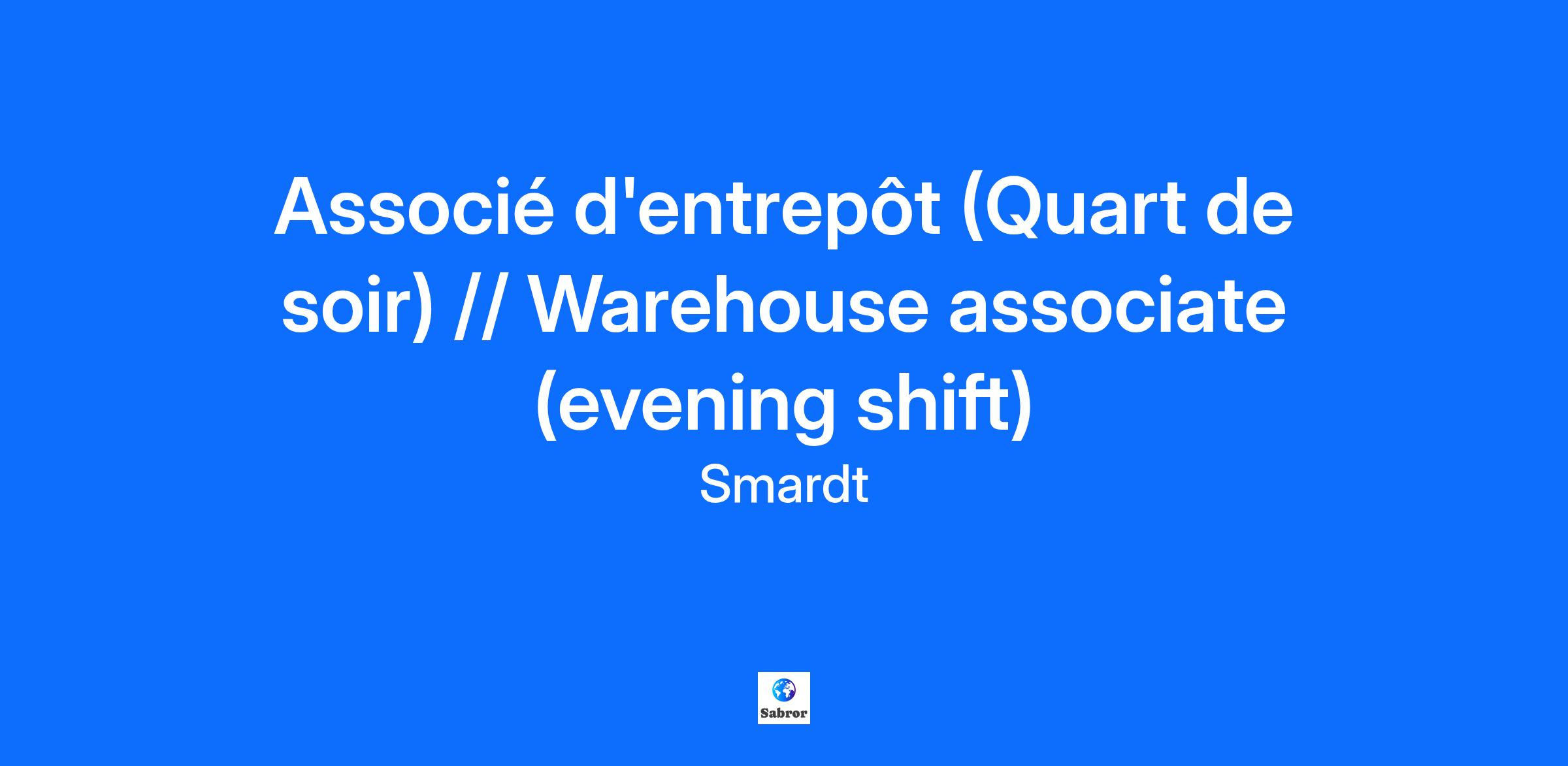 ASSOCIÉ(E) D’ENTREPÔT – Joignez-vous à une entreprise innovante en pleine croissance!