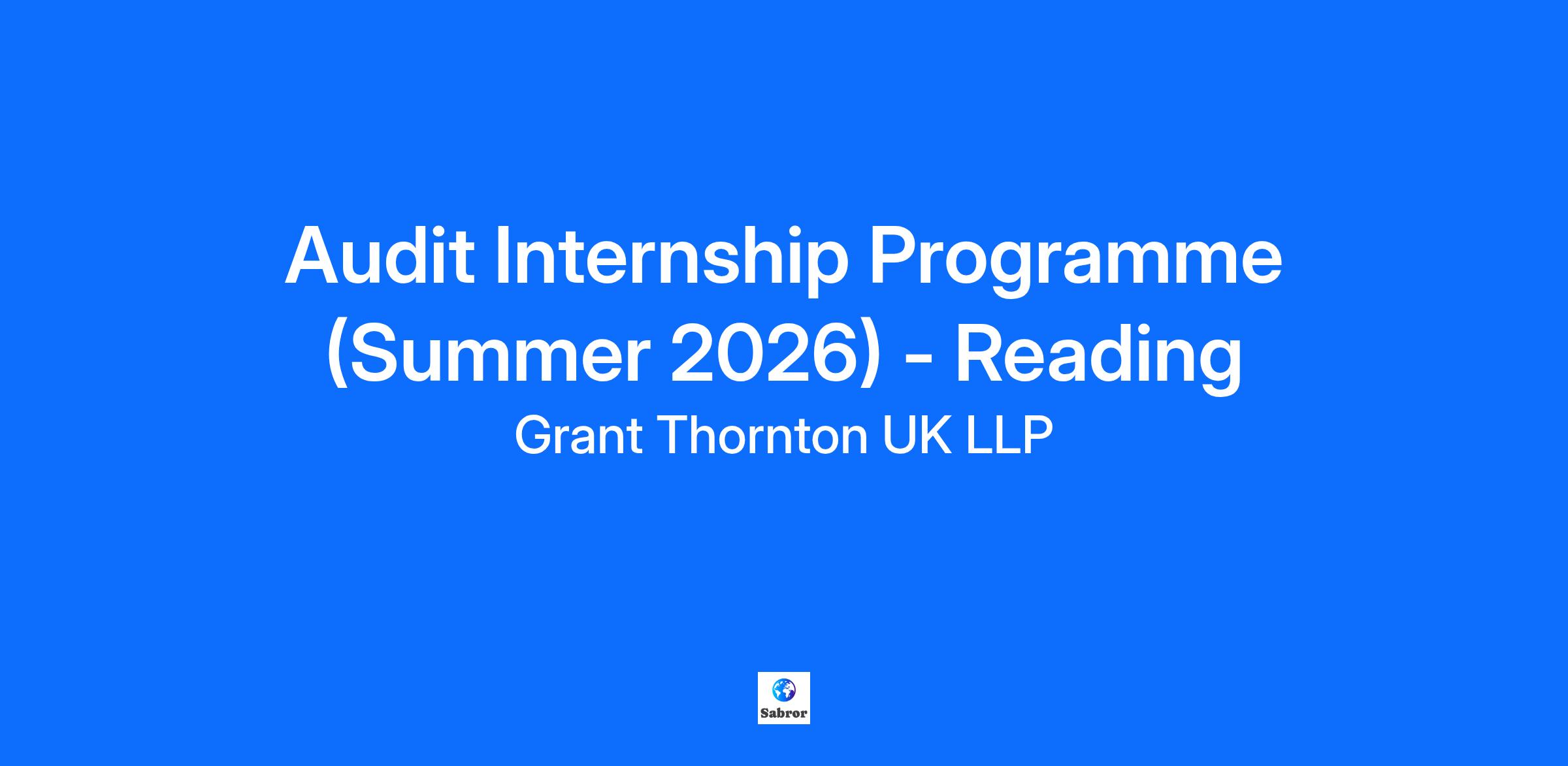 Audit Internship Programme (Summer 2026) - Reading