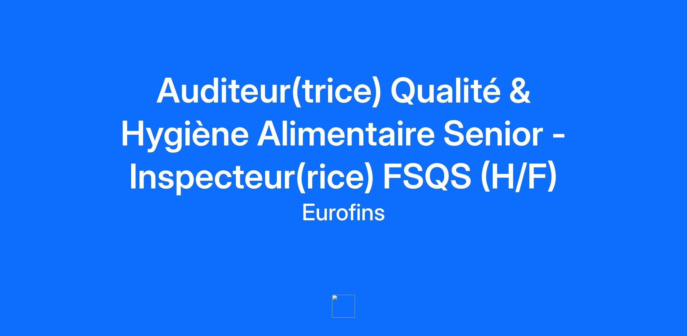 Auditeur(trice) Qualité & Hygiène Alimentaire Senior - Inspecteur(rice) FSQS (H/F)