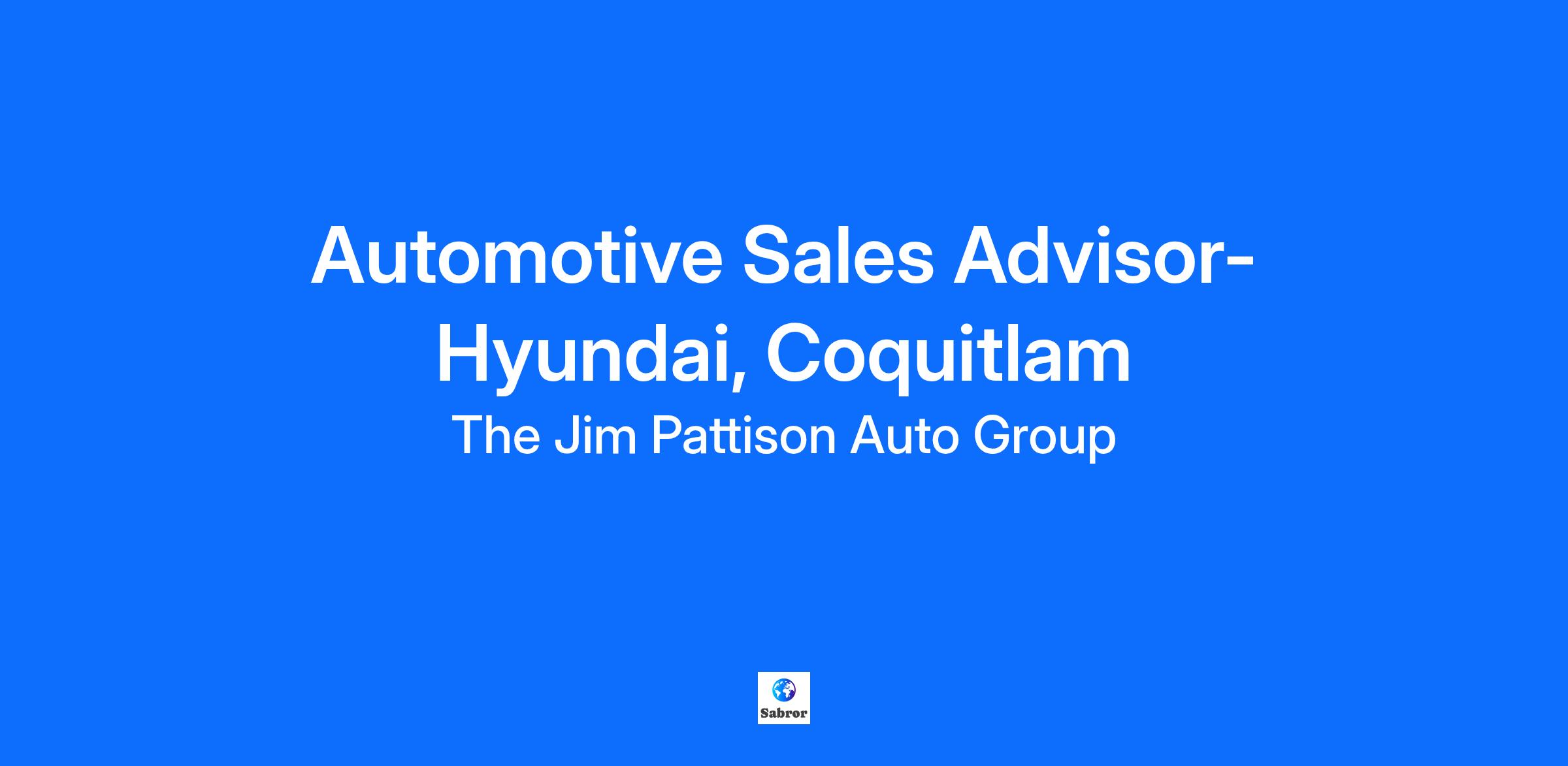 Come join the award-winning team at Jim Pattison Hyundai Coquitlam as an Automotive Sales Advisor! If you are a driven, tech-savvy, and personable individual who strives to achieve excellence in customer satisfaction and relationship building, this opportunity is for you! Why join us… Competitive commission and bonus plans. We have premium products with highly effective prices at our high-volume location. We have unlimited opportunities for growth and development. State-of-the-art amenities. Flexible schedules. Manufacturer and in-house training are provided. Exclusive access to vendor promotions, offers and purchase programs. Recognition and rewards program. Comprehensive benefits package. Amazing colleagues, great working environment, and a team building culture! A day in the life… Endorsement of the finest personal service to our customers. Advise and guide guests through our vehicle inventory based on their needs. Keeping abreast of competitor products and the overall automotive market in Canada. What we look for… We require a valid provincial driver’s license. Sales Permit is required for vehicle sales. A positive can-do attitude! More about us… https://www.jpautogroup.com/dealership/about.htm https://www.jimpattison.com/about/our-story/ We would like to thank all applicants for their interest in this exciting opportunity. Only those selected for an interview will be contacted directly.