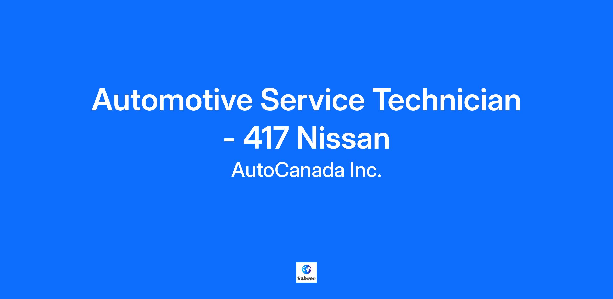 Join the ride! Position: Automotive Service Technician Dealership: 417 Nissan Location: Ottawa, ON Classification: Full Time, Onsite, **Immediate vacancy** Salary: $28.00-$32.00 flat, + productivity bonus, Safety boot allowance: $150.00 Increase: Supplemental rate increase upon completion of Nissan training 417 Nissan is proud to be a part of the AutoCanada dealership network. AutoCanada is the largest Canadian owned and publicly traded automotive dealer group operating in Canada and the US. We are innovative, data-driven and our commitment to our Team Members, customers and operational excellence fuels our success. Our dealership Team Members are at the heart of our success, building long-lasting, trust-based relationships with customers across Canada. Our national network provides opportunities and support to build the career that’s right for you. Working here is fast-paced, non-stop, and a little unpredictable—and we love it. Your area of focus. As an Automotive Technician, your primary responsibilities include diagnosing, testing, and repairing vehicle systems to ensure their security and functionality, using specialized tools and diagnostic equipment. You'll conduct preventative maintenance, inspect critical vehicle components such as brakes, fuel systems, and engines, and repair or replace parts as needed. In addition, you'll mentor apprentices and maintain a safe and efficient work environment. What drives your day-to-day? * Performing vehicle repairs and/or maintenance work as outlined on RO with efficiency and accuracy, performing all duties in accordance with dealership and OEM standards * Communicating with Parts and Service Advisors regularly to effectively manage production/repairs, cycle times and customer communication * Conducting multi-point inspections to make appropriate recommendations for repairs while ensuring the safety and reliability of any vehicle that has been repaired prior to them being returned to the customer * Document all work performed on the vehicle RO by creating a story in the on the associated repair order, in a manner consistent with OEM standards, ensuring payment of warranty work is provided by the manufacturer * Maintain an inventory of common automotive technician’s tools not normally inventoried by the Service department as a “store-provided” piece of equipment * Keep abreast of factory technical bulletins and participate in factory-sponsored training classes as required * Providing an exceptional repair experience to drive customer loyalty and department revenue. What are the must-haves… * 5 years + as a licensed, 310S Technician * Strong knowledge in various makes and models. * A provincially recognized Journeyman Automotive Mechanic Certificate, completed or in process * Red Seal Certification would be considered an asset * Completion of a related post-secondary program and or training courses * Professional demeanor and strong work ethic * Excellent communication, problem-solving and organizational skills * Ability to operate electronic diagnostic equipment * Ability to work individually and as part of a team * High level of integrity and work ethic * Must possess a valid driver's license and a safe driving history The Perks. * Competitive Compensation and Benefits Package * Employee Vehicle Purchase & Service Plans * Employee and Family Assistance Programs * Company-wide appreciation events and contests throughout the calendar year * Professional development and the opportunity to grow your career And those are just the basics. We strive every day to create a workplace culture that embraces diversity and inclusivity, ensures fairness and equal opportunities, and fosters a sense of belonging for all Team Members. As an equal opportunity employer, we actively support everyone in expressing themselves and reaching their full Can you picture yourself here already? We hope so. It’s equally as important that you choose us as we choose you. Take a sneak peek at what we think makes this one of the best workplaces around. If you think you’re a good fit to come along on our ride, apply now through our website at www.autocan.ca/careers. We thank all applicants for their interest; however, only those selected for an interview will be contacted. Our commitment extends to reaching out to individuals from various backgrounds and identities. We do not discriminate based on gender identity, race, national origin, ethnicity, religion, age, sexual orientation, marital or family status, or mental/physical disabilities. AutoCanada is committed to collaborating with and providing reasonable accommodations to individuals with disabilities. If you need accommodation during the recruitment process, please inform your recruiter. Instagram [https://www.instagram.com/autocanadainc/] Facebook [https://www.facebook.com/autocan] LinkedIn [https://www.linkedin.com/company/autocanada] INST #LI-PR1 . . . . . . . . . . . . . Automotive technician, auto tech, auto repair, vehicle repair, mechanic, mobile mechanic, journeyman, journey man, master technician, line technician, maintenance technician, red seal, apprentice technician, technician a tech, b tech, c tech, a-tech, b-tech, c-tech, lube tech, oil change, tire technician, general service technician, service tech, GST, alignment technician, suspension, diesel, diesel, commercial, fleet technician, fleet maintenance, ev tech, diagnostic, transmission, RST, certified, Stellantis, Ford, Honda, Toyota, GM, General Motors, Chrysler, Dodge, Jeep, RAM, Acura, Alfa Romeo, Aston Martin, Audi, Bentley, BMW, Bugatti, Buick, Cadillac, Chevrolet, Chevy, Ferrari, Fiat, GMC, Jaguar, Land Rover, Lamborghini, Maserati, McLaren, Mercedes-Benz, Mercedes, MB, Porsche, Hyundai, Kia, Nissan, Infiniti, Mazda, Mitsubishi, Lexus, Lincoln, Lotus, JLR, Mini, AMG, Polestar, Rivian, Rolls Royce, Rolls-Royce, Subaru, Tesla, VW, Volkswagen, Ottawa, Nepean, Kanata, Pembroke, Smith Falls, Montreal, Quebec City, Barrhaven, Goulbourn, Stit