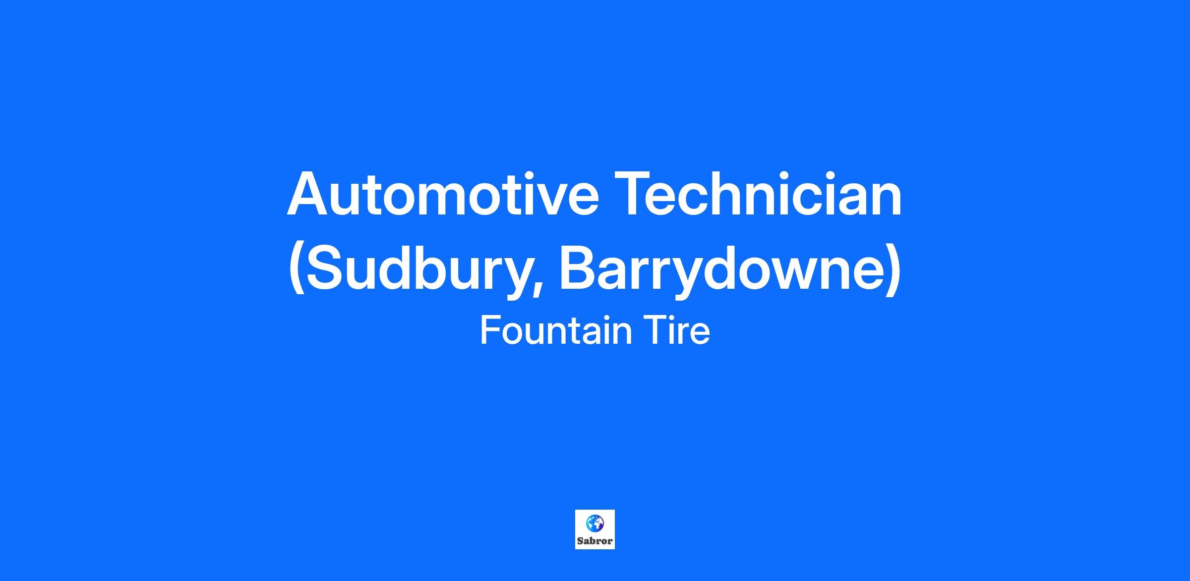 Overview Fountain Tire Sudbury (Barrydowne) is looking for a skilled and Licensed Automotive Service Technician to join our team! At Fountain Tire, our associates are our number one asset. As a member of our team, you will get to enjoy some of our great benefits: What’s in it for you? Competitive wages: $40 - $45 per hour based on experience We take care of you and your family with our impressive health, dental, and vision benefits A retirement savings plan with company matching to help you achieve your financial goals Regular day shifts with opportunities for overtime A clean and safe work environment Great discounts for you and your family on tires, parts and mechanical services The opportunity for continual learning, growth, and advancement! You will get to: Diagnosing the cause of any malfunction on a customer’s vehicle Performing appropriate repairs with accuracy and efficiency Completing approved service on customer vehicles Testing and adjusting vehicle systems to manufacturer’s performance specifications Performing scheduled maintenance service, such as oil changes, lubrications and tune ups. Advising customers and associates on work performed, general vehicle condition, and future repair requirements Maintaining mechanical service equipment on a regularly scheduled basis Operating company and customer vehicles in a clean and safe manner Supporting customer relationships by responding to customer inquiries What does it take to get on track? Licensed/Red Seal status in the Automotive Service Technician trade 4+ years of automotive experience Strong knowledge of automotive industry and skills required to provide mechanical service to our customers A diagnostic specialist that enjoys keeping up with modern technology The successful applicant will have strong written and verbal communication skills Commitment to providing a superior customer experience Ability to maintain a valid driver’s license and provide a satisfactory driver’s abstract from province of residence on an annual basis At Fountain Tire, you’d have a great place to work! Market leading wages, a manager with a large support network, and the chance to learn and grow. If you are interested apply in-store or online today!