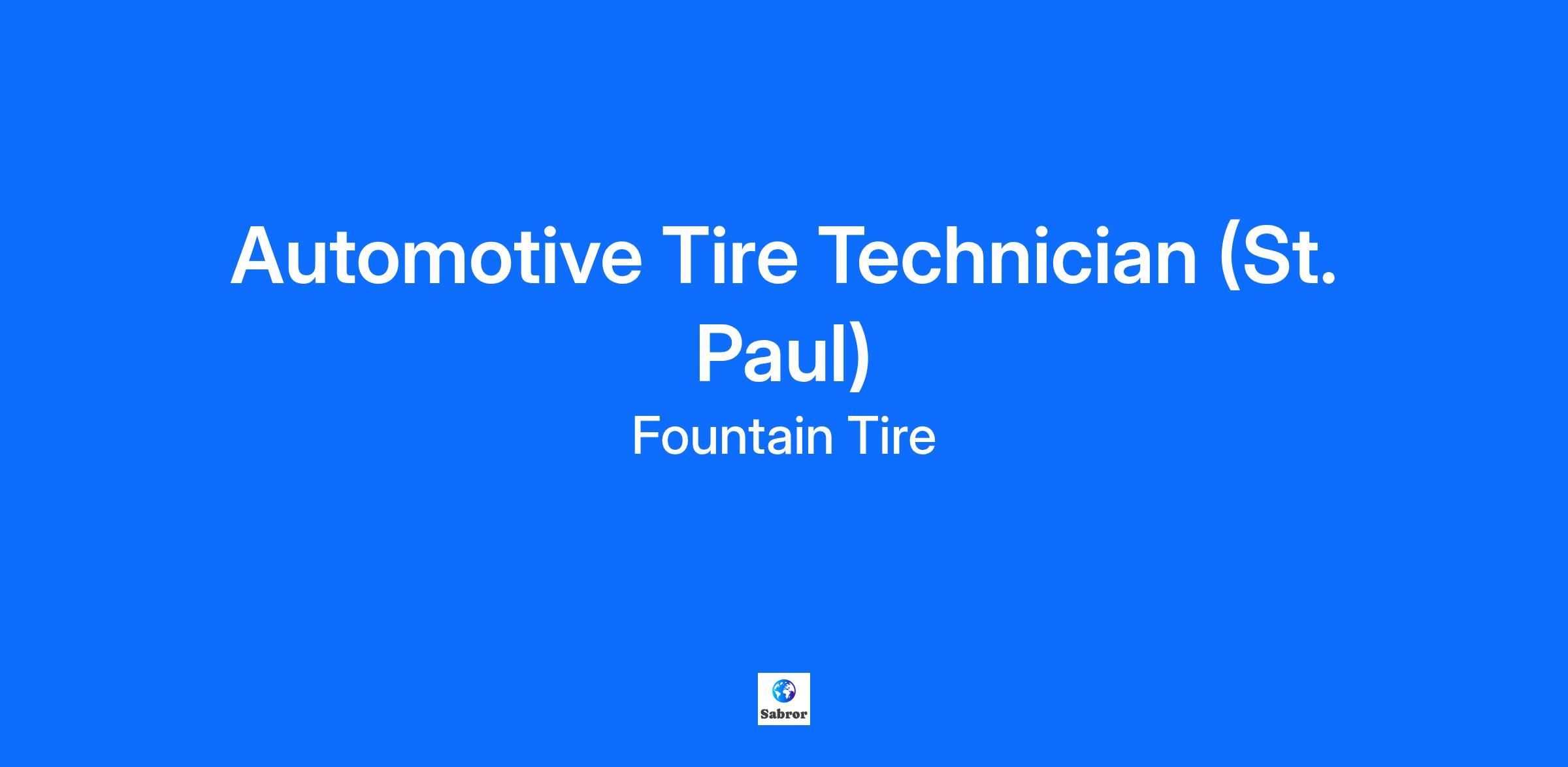 Overview Fountain Tire St. Paul, an established automotive repair shop, is looking for a responsible, safe, and dedicated associate to join our team as an Automotive Tire Technician! What do we offer? Competitive wages based on experience Health, dental, and vision benefit programs for you and your family, including a RRSP program with company matching! We will develop your skills and certifications with our excellent training & opportunities for advancement The opportunity to work with an excellent team and great customers in a clean, safe, and respectful environment Regular full time day shifts, with opportunities for overtime during our busy seasons (spring and fall) Discounts for you and your family on tires, parts, and services at all Fountain Tire locations The opportunity for growth into apprenticeships and leadership positions - own your own Fountain Tire store! You will be responsible for: Installing, balancing, rotating, and repairing passenger and light truck tires and wheels Resetting and repairing tire pressure monitoring systems (TPMS) Maintaining tire service equipment on a regularly scheduled basis Completing specialty tire work which could include studding, retread, run flat, nitrogen, etc. Assist in inventory management through documentation processes and annual inventory counts The responsibility to keep yourself and your coworkers safe What does it take to get on track? Someone with previous experience would be great, however we are willing to train motivated individuals with a positive attitude A working knowledge of passenger and light truck tires, specialty tire services and wheels is an asset A customer-service focus with the ability to develop and maintain effective relationships with team members and customers A keen attention to detail Ability to maintain a valid driver’s license and provide a satisfactory Driver’s Abstract Basic computer skills Ability to consistently lift 25 kilograms At Fountain Tire, you’d have a great place to work! Market leading wages, a manager with a large support network, and the chance to learn and grow. If you are interested apply in-store or online today!