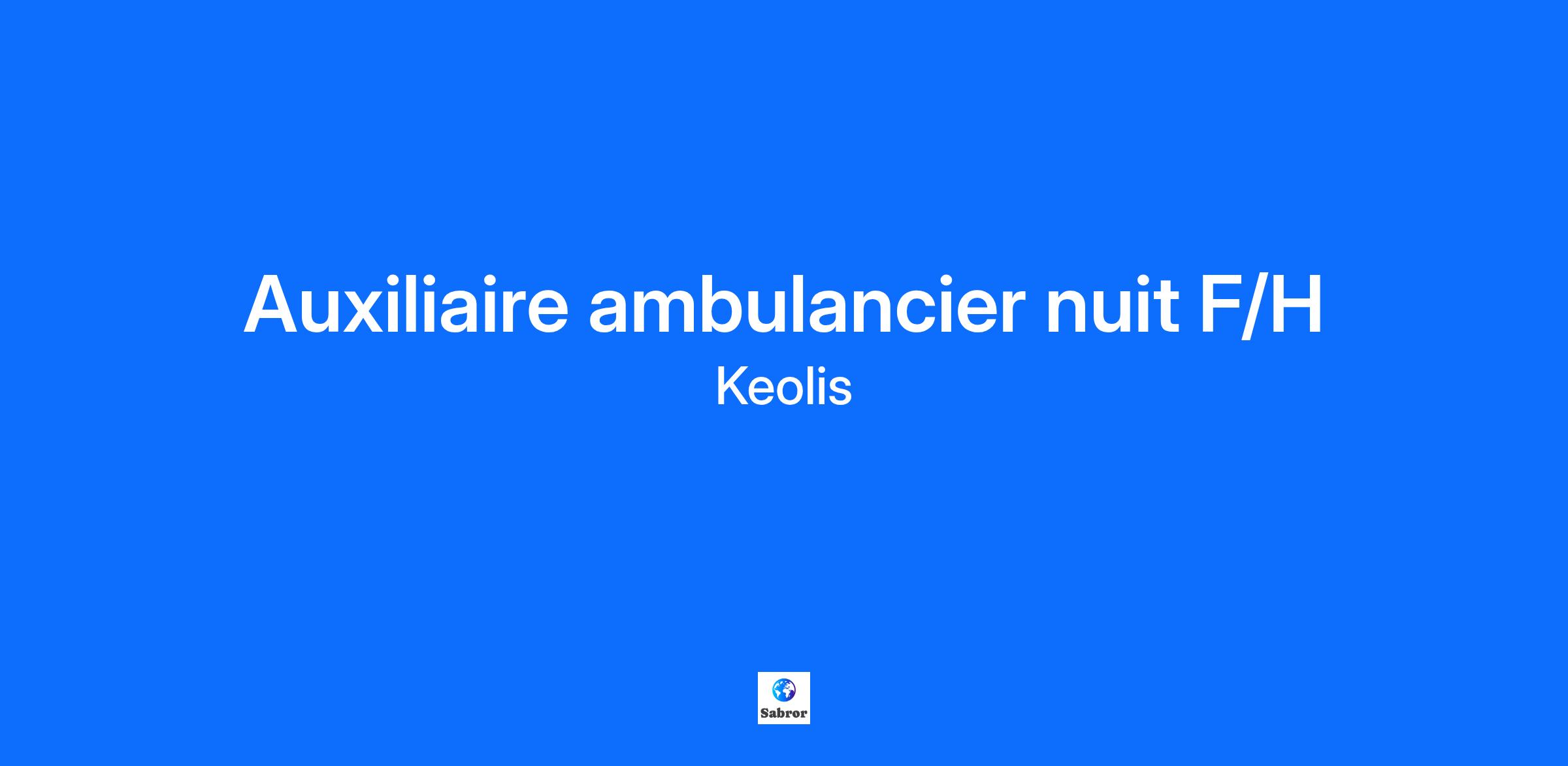 Auxiliaire ambulancier nuit F/H Exploitation Leader dans le secteur du transport sanitaire, Jussieu Secours œuvre chaque jour à la proposition de services de haute qualité, que ce soit pour les transports programmés ou les transports d’urgence. Parce que l’humain est au cœur de notre métier, nous nous engageons pour le bien-être des patients que nous transportons mais aussi de nos salariés en proposant des outils et solutions innovantes qui font évoluer le métier. Contexte Afin de développer notre activité Keolis Santé Nord Finistère, nous lançons un appel à candidature pour le poste d’Auxiliaire Ambulancier F/H NUIT . Missions A ce poste, vous serez en charge de : Prendre en charge/brancarder les patients en assurant leur confort Assurer les gestes et soins d'urgence en cas de besoin Conduire des véhicules sanitaires en respectant le code de la route Nettoyer et désinfecter le matériel et la cellule sanitaire Réaliser les tâches administratives afférentes aux missions et assurer la présence des documents et équipements réglementaires dans la cellule sanitaire Veiller à l'état de marche du véhicule, du matériel de la cellule sanitaire et des moyens de communications et rendre compte des difficultés et anomalies rencontrées Le poste est basé à Brest (29)Profil Pour postuler, il vous faudra être titulaire du Certificat d’Auxiliaire Ambulancier. Vous aimez le contact humain et savez être à l'écoute ? Vous pouvez vous adapter à toutes les situations ? Alors n'hésitez plus à postuler et à vous engager dans un métier qui a du sens ! Ce que nous avons à offrir Une complémentaire santé attractive pour vous et votre entourage avec sa prévoyance Des indemnités repas L’accès à des aides au logement et à un service apportant des solutions bien-être et santé (soutien psychologie, soutien pour l’équilibre vie pro/vie perso, assistance sociale, etc.) Un CSE vous proposant de nombreuses réductions dans multiples enseignes (+ de 300 000 offres de réduction) Planning sur 1 mois (horaire de roulement) Pourquoi nous rejoindre ? Une application stricte des conditions de travail et de la règlementation Des équipements à jour Une formation continue vous permettant d’acquérir de nouvelles compétences Une marque de référence Des évolutions possibles vers des postes de tuteurs/tutrices, régulateurs/régulatrices, responsables opérationnels de proximité, etc. Des possibilités de mobilité géographique au sein de nos différents sites Rejoindre Jussieu Secours, c’est rejoindre un réseau de spécialistes du transport sanitaire passionnés qui vous permettra de vous développer et de vous épanouir dans votre métier. Informations complémentaires "Si votre poste est en lien direct avec la sécurité des personnes vous serez susceptible de faire l'objet d'une enquête administrative. Décret n°2017-757 du 3 mai 2017 et n°2022-770 du 2 mai 2022"