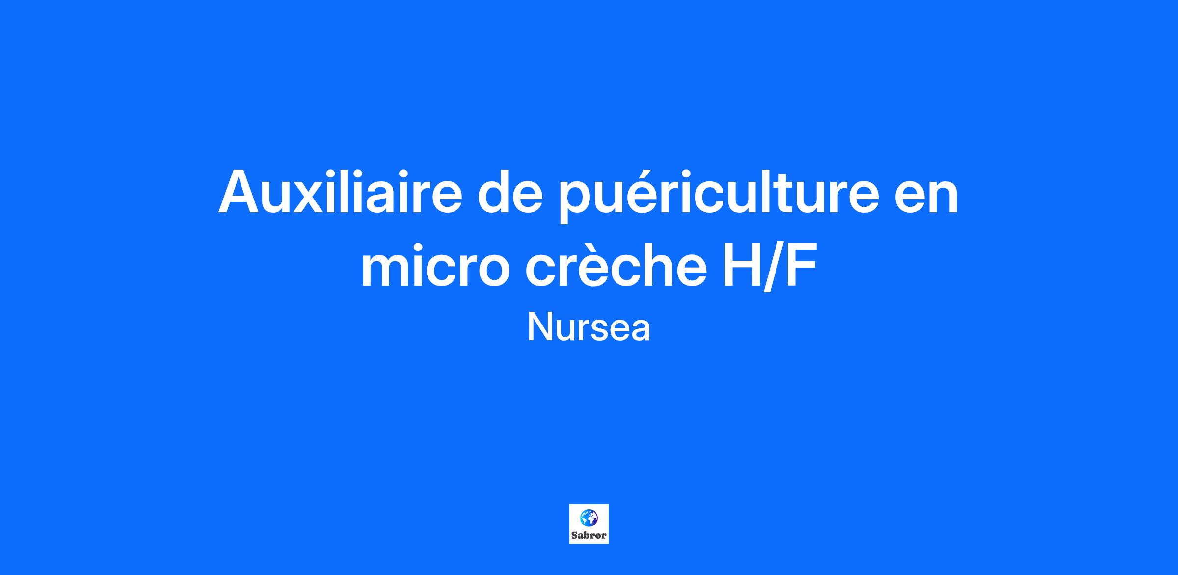 Rejoignez l'équipe de notre micro-crèche Nursea et faites partie de l’aventure dès maintenant ! Nous recherchons un(e) Auxiliaire de Puericulture diplômé(e) du DEAP et passionné(e) pour enrichir nos équipes; Vos missions: Soins quotidiens et bien-être des enfants Assurer l’accueil, l’hygiène et les soins personnalisés l’accompagnement de chaque enfant dans le respect de son rythme unique. Animation et activités d’éveil Participer à l’animation et à l’organisation d’activités ludiques et éducatives pour favoriser le développement physique, psychomoteur et affectif des enfants. Accompagnement des familles Contribuer à instaurer un partenariat de confiance avec les parents par des échanges réguliers et un suivi individualisé. Participation au projet éducatif Appliquer et respecter les consignes pédagogiques de Nursea pour garantir un environnement sûr, sain et stimulatif. Collaboration au sein de l’équipe Travailler en étroite collaboration avec la Référente Technique et les autres membres de l’équipe pour assurer une prise en charge optimale et une ambiance de travail éthique et bienveillante. Votre profil Diplôme requis : Diplôme d’État d’Auxiliaire de Puériculture (DEAP) Localisation : Marseille Des avantages concrets : Rémunération attractive adaptée à votre profil de 2000 à 2200 euros. Planning fixe avec 3 demi-journées de repos par semaine pour favoriser l’équilibre vie professionnelle/personnelle. Tickets restaurant, mutuelle Alan, transport remboursé à 100% et autres nombreux avantages à découvrir. 6eme semaine de congés payés dès 1 an d’ancienneté Un environnement de travail éthique et stimulant Des conditions de travail optimisées, avec des effectifs maîtrisés pour un suivi individualisé des enfants et un cadre de vie professionnelle respectueux. Un accompagnement sur mesure et des opportunités de formation continue Nous offrons des formations régulières pour développer vos compétences et vous permettre d’évoluer. Dans l'objectif d'une politique d'inclusion, toutes nos offres d'emplois sont accessibles aux personnes en situation de handicap