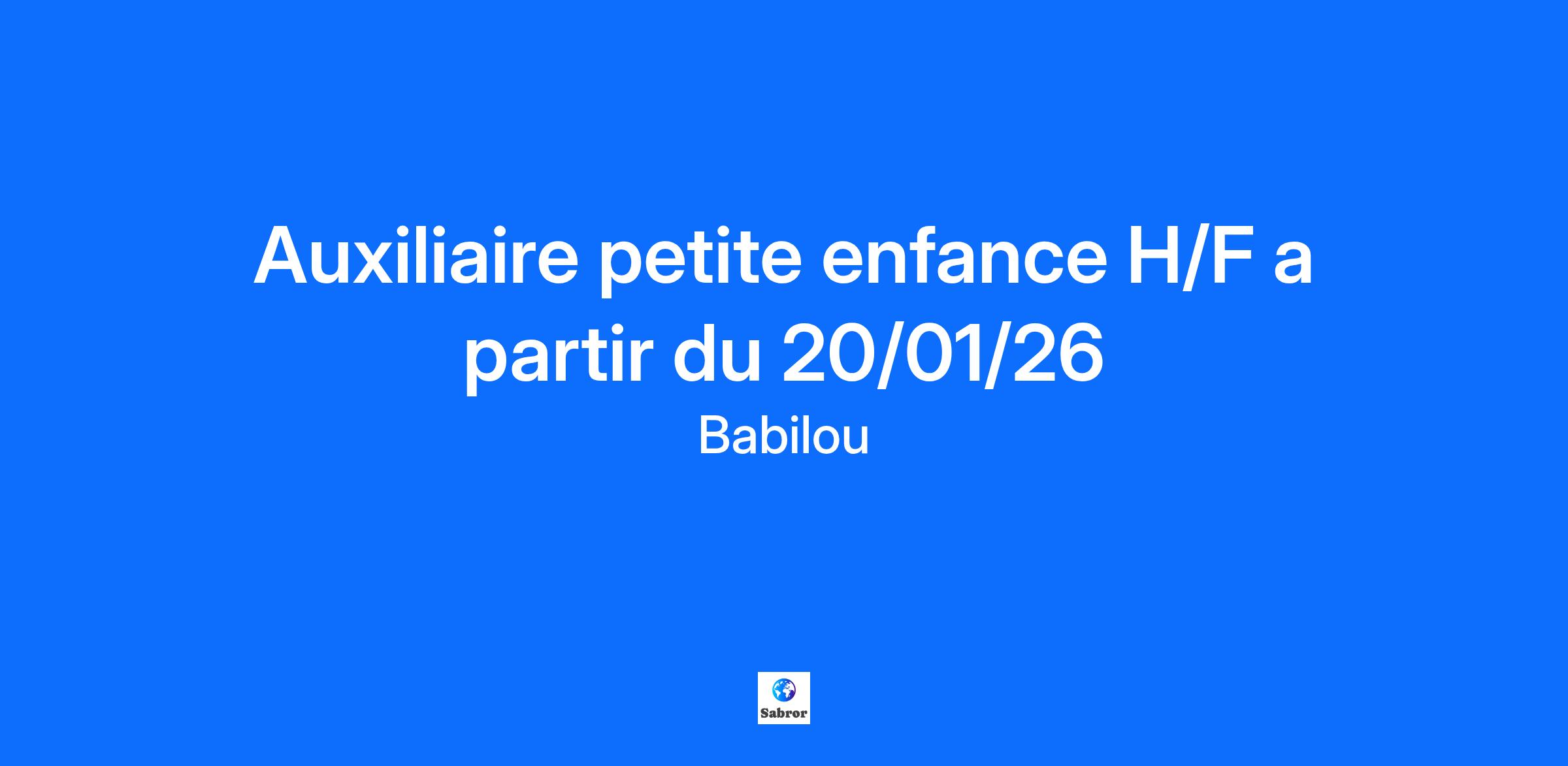 Contract type Regular CDI a partir du 20/01/26 Vous êtes titulaire du CAP Petite Enfance, BEP CSS (BAC professionnel ASSP), du Titre Assistant de Vie aux familles et idéalement vous avez déjà travaillé en crèche, alors ce poste est fait pour vous. « Babilou laisse une liberté aux équipes dans les choix des projets. Chaque crèche est différente, c’est ce qui fait pour moi sa richesse. » Clémence Directrice de crèche. PRINCIPALES MISSIONS : - Vous assurez un accueil de qualité pour l’enfant et sa famille au travers d’activités et de soins individualisés. - Vous participez à la réflexion éducative avec l’équipe. - Vous collaborez à la mise en œuvre du projet pédagogique en lien avec notre Projet d’Etablissement Groupe. - Vous veillez à la sécurité, l’hygiène et le bien-être de chaque enfant. AVANTAGES : - Tickets Restaurant - Prime d’ancienneté, Prime anniversaire - Bonus Annuel Babilou : 1/4 de 13ème mois à partir de 2 ans d'ancienneté - Remboursement des transports en commun à hauteur de 60% - Congés supplémentaires (2 jours la 1ère année, 4 jours la 2ème année, 5 jours la 3ème année) - Avantages CSE (chèques cadeaux, réductions,…) - Places en crèches pour les enfants de nos collaborateurs (plus de 100 en 2023). - Mutuelle d’Entreprise, 1% logement, assistance sociale gratuite - Proximité géographique lieu de travail/ domicile (annonces accessibles en temps réel) - Échange et partage de bonnes pratiques : rencontre mensuelle avec vos collègues et réseau social interne (Workplace). - Dispositifs de formations VAE (30 heures de détachement pour l'écriture du livret, Accompagnement VAE Auxiliaire de puériculture ou EJE, Ateliers, Conférences, E-learning, …) Tous nos postes sont ouverts aux personnes en situation de handicap. Babilou s’engage au travers d’une politique diversité et inclusion. Nous offrons aux équipes en crèche la possibilité d’exprimer leur créativité, venez exprimer la vôtre ! Date of dating post: 20 - 01 - 2026 Babilou est une entreprise familiale créée par Rodolphe et Edouard Carle en 2003. Aujourd’hui, Babilou c’est un projet commun « Grandir Ensemble » qui évolue dans le respect de ses 5 valeurs : Engagement | Qualité | Esprit d’équipe | Diversité | Bienveillance. Depuis 16 ans, nous mettons à disposition des familles un mode d’accueil fiable et qualitatif. Le bien-être de nos équipes conditionne directement la qualité d’accueil des enfants et des familles. C’est pourquoi, guidés par notre Mission Educative, nous avons à cœur d’accueillir nos collaborateurs comme nous accueillons les enfants et leur famille pour qu’ils : Prennent leur place chez Babilou Apprennent à chaque instant Aient confiance en eux Nous rejoindre, c’est être passionné par son métier et animé par une volonté commune : mener à bien la Mission Educative de Babilou, « Au côté des familles, contribuer à l’éducation des enfants, créateurs du monde de demain. »