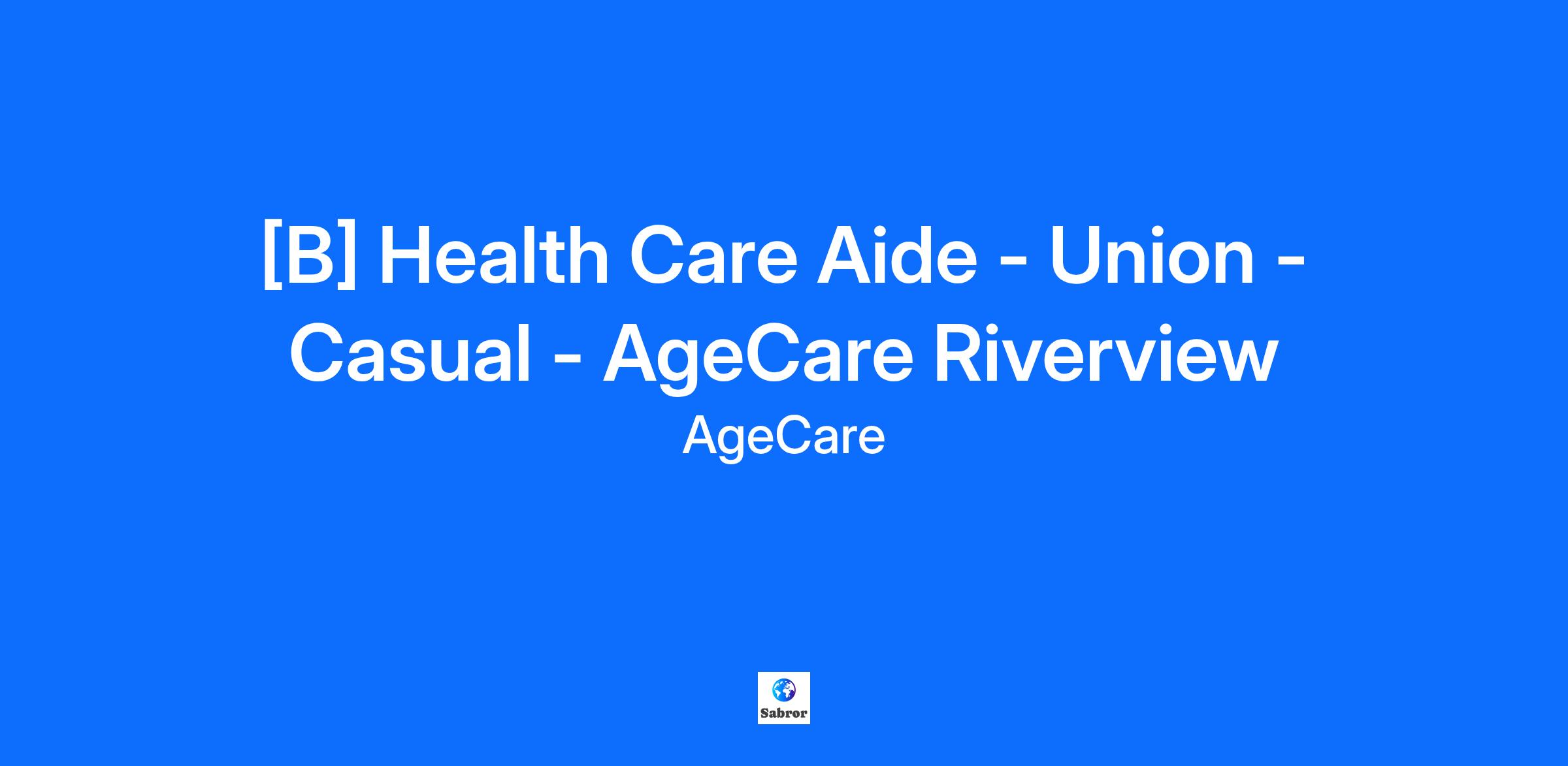 [B] Health Care Aide - Union - Casual - AgeCare Riverview