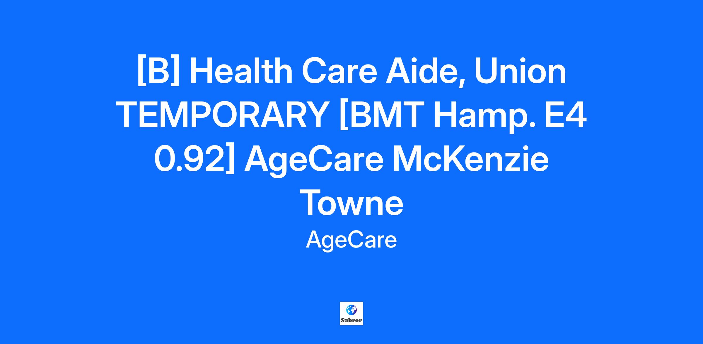 [B] Health Care Aide, Union TEMPORARY [BMT Hamp. E4 0.92] AgeCare McKenzie Towne