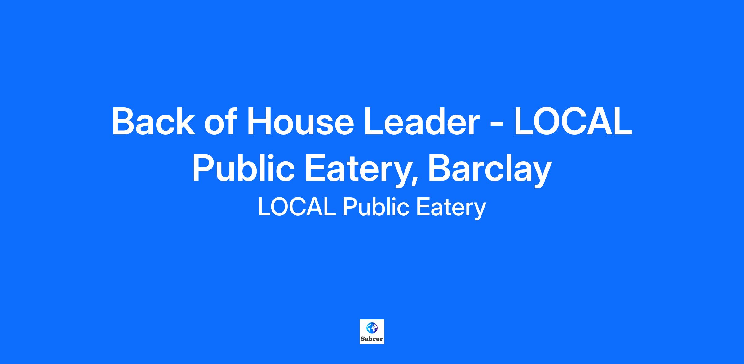 Back of House Leader - LOCAL Public Eatery, Barclay