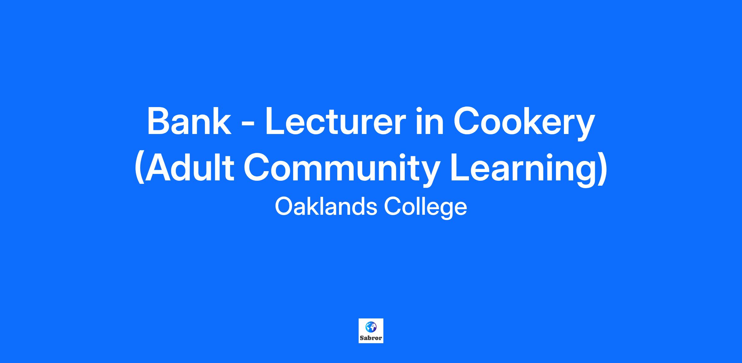 The Adult and Community Learning (ACL) Team at Oaklands College is looking for an experienced and qualified cookery tutor to deliver various cuisines. Offering new and innovative dishes as part of our full cost evening provision. If you have a specific cooking speciality and can offer a wide range of dishes and cuisines for all levels we would love to hear from you. The courses will run in the evening covering a total of 4 weeks, 2 hours per week from 7pm to 9pm. The successful person for this role will need to have experience of cookery and previous teaching experience. It would be desirable if candidates have a QTS. However we can offer you in depth coaching and the opportunity to achieve a recognised teaching qualification whilst employed. Your Day to Day Impact Facilitate practical cookery sessions, ensuring students complete both a main dish and a side dish in each lesson. Communicate clearly a weekly list of required ingredients and equipment. Uphold Health and Safety standards, including food hygiene compliance and completion of relevant risk assessments. Design and deliver a structured cookery course, incorporating a detailed Scheme of Work and comprehensive Lesson Plans. Is This You Demonstrable experience working in a professional kitchen environment. Prior experience in delivering teaching or training sessions, ideally within an educational or community learning setting. Possession of relevant culinary skills supported by appropriate cookery qualifications. A recognised teaching qualification (e.g. Level 3 Award in Education and Training or equivalent) is desirable but not essential. Why Oaklands? At Oaklands, your work matters. We invest in both students and staff to ensure everyone has the opportunity to succeed and grow. Local Government Pension Scheme with excellent employer contributions. Free onsite permit parking. Ongoing CPD and free access to Adult Community Learning courses. Onsite gym and wellness treatments at discounted rates. Cycle to Work Scheme and discounted travel through UNO Bus Scheme. Eye care vouchers and employee assistance programme. Mental health and wellbeing support, including peer supporters. Staff development days and annual awards celebrating your achievements. If you like what you see, why not start your application now? We consider applications as we receive them and reserve the right to close adverts early (for example, where we have received an unprecedented high volume of applications). So, it's a good idea to apply right away to ensure you're considered for this role. Oaklands is proud to be a Disability Confident Employer and is committed to helping find great work opportunities for great people. Want to know more about Oaklands College? Click here