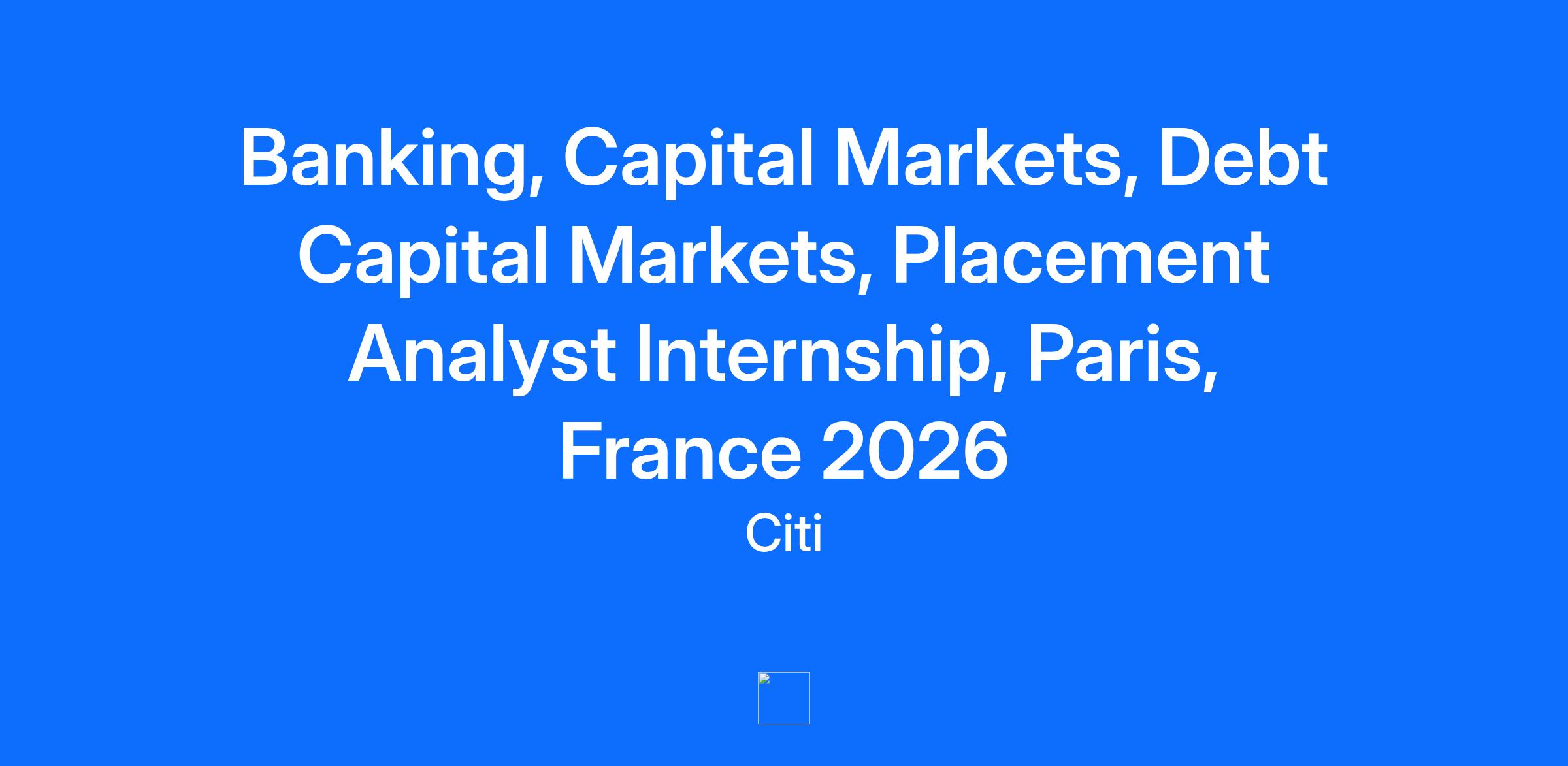 You are ready to bring your knowledge from the classroom to the boardroom; and Citi wants to help you get there. Whether it’s honing your skills or building your network; we know that success cannot come without growth. Our programs equip you with the knowledge and training you need to play a valuable role on your team. We provide you with the knowledge and skills you need to succeed. Our DCM Team based in Paris is currently looking for an Intern Analyst to start in January 2026. We are advising our clients regarding the issuance of various fixed income products and their capital structure. As an intern analyst in the DCM team, you will get the unique opportunity to work alongside a small team where you will be able to actively participate in day-to-day tasks as well as work closely with other related departments such as Fixed Income Sales and Corporate & Investment Bankers. Your time here will look something like this... Supporting senior team members in the origination& execution of live transactions that include benchmark bonds as well as private placements for European Financial Institutions and Agencies, with a focus on France, Belgium, and Switzerland. Preparation of pitch books during the preliminary stages of a transaction Collecting market information to support client coverage and decision making Preparation of term sheets and indicative pricing updates Condensing research from a vast variety of sources and prepare macro and credit market updates for our clients We want to hear from you if... You are available to start in January 2026 You are currently enrolled in a tier-1 university or top French "Ecole de Commerce" or "Ecole d’Ingénieur" that can provide an internship agreement You are fluent in French and English – Another European language (Italian, Spanish…) would be desirable You have excellent analytical, presentation, and numerical skills You are fully proficient in Microsoft Office (Excel, PowerPoint, Word) - Bloomberg, Dealogic or FactSet knowledge would be a strong plus You thrive in a fast-paced ever changing environment With student status and related visa covering the whole internship period Who we think will be a great fit... We’re looking for motivated individuals, who are eager to grow their careers. Successful candidates take pride in all aspects of their work and recognize that it is a reflection not just of the firm, but of themselves. We value diversity and so do you. We’ll also be looking for the following: Commitment to personal growth and career development, a strong desire to learn and succeed in a team environment Intellectual curiosity and proactive approach Strong communication, planning and organizational skills Desire to develop a deep understanding of the financial industry, more specifically investment banking and DCM products Unquestioned commitment to integrity ethical decision-making We recruit for 6-month internships from January to June 2026. We therefore encourage early applications. Before you apply, please make sure you have visited our 'Career Inspiration Page'! Head over to learn more about life at Citi, ask a question or get handy tips from the previous Q&A. ------------------------------------------------------ Job Family Group: Institutional Banking ------------------------------------------------------ Job Family: Investment Banking ------------------------------------------------------ Time Type: Full time ------------------------------------------------------ Most Relevant Skills Please see the requirements listed above. ------------------------------------------------------ Other Relevant Skills For complementary skills, please see above and/or contact the recruiter. ------------------------------------------------------ Citi is an equal opportunity employer, and qualified candidates will receive consideration without regard to their race, color, religion, sex, sexual orientation, gender identity, national origin, disability, status as a protected veteran, or any other characteristic protected by law. If you are a person with a disability and need a reasonable accommodation to use our search tools and/or apply for a career opportunity review Accessibility at Citi. View Citi’s EEO Policy Statement and the Know Your Rights poster.