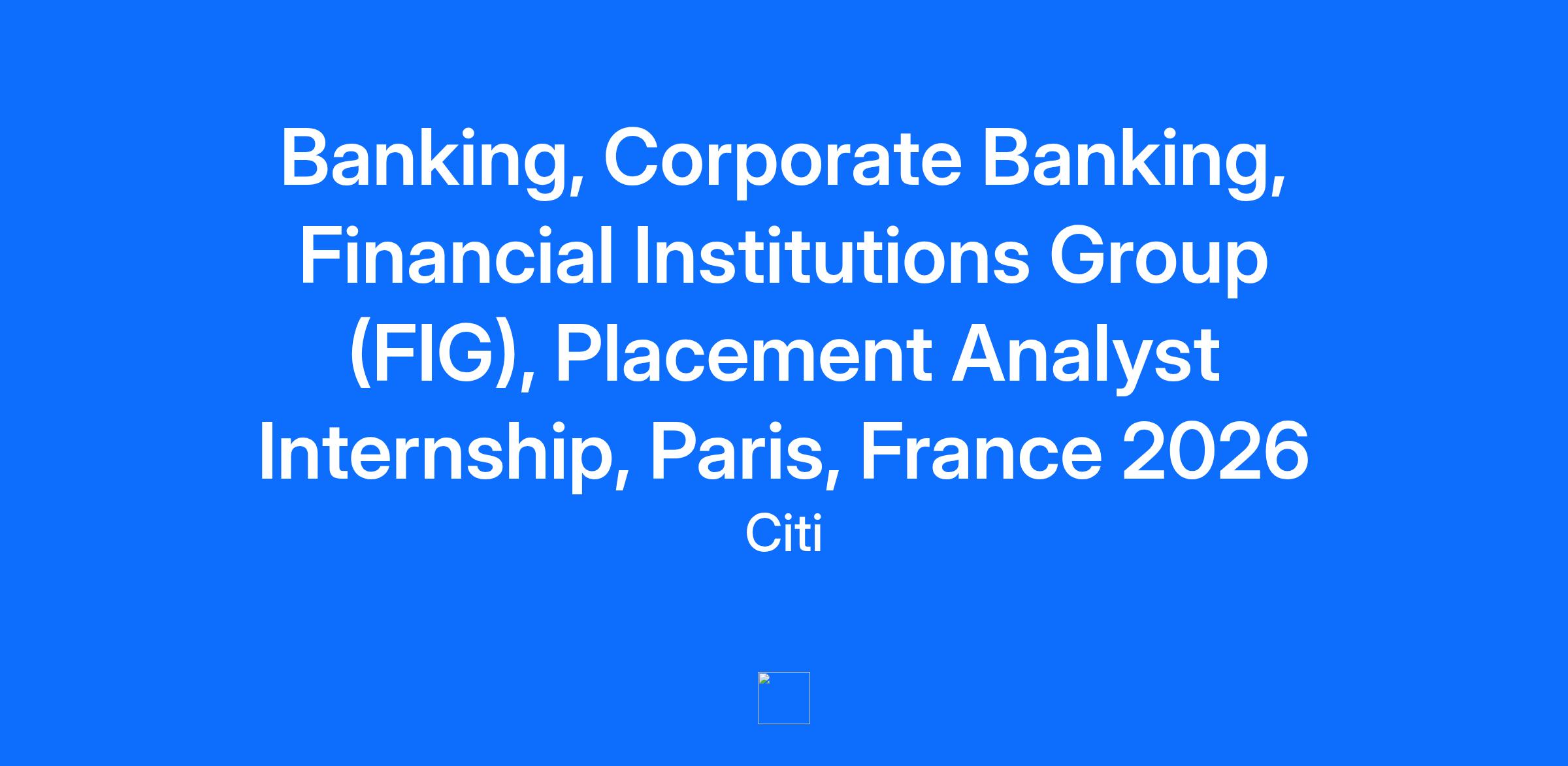 You’re ready to bring your knowledge from the classroom to the boardroom, and Citi wants to help you get there. Whether it’s honing your skills or building your network, we know that success can’t come without growth. Our programs equip you with the knowledge and training you need to play a valuable role on your team, and establish a long-term career here. At Citi, we value internal mobility, and career growth is not a question of if, but when. Citi is looking for Intern Analysts to join the Financial Institutions Group (“FIG”) Corporate Banking team in Paris, France in January 2026. FIG Corporate Bankers are relationship-focused finance professionals responsible for understanding the wide range of complex financial issues facing our clients around the world. They drive the client dialogue on cash management, capital structure, liability management, liquidity and funding strategies, risk management, and investment solutions. The FIG client portfolio includes large banks, insurers, traditional and alternative asset managers, and financial market infrastructures. Unique to Citi, FIG Corporate Bankers are also responsible for credit allocation as well as relationship management. They work in partnership with various Citi groups across the firm including Risk Management, Investment Banking, and the Capital Markets Origination. If none of these terms make sense right now, that’s ok! Our Internship is designed to help you increase your knowledge, so whatever your degree is in we will give you the training and support you need to excel. We provide you with the knowledge and skills you need to succeed. This will be aligned to the FIG team. We’re committed to teaching you the ropes. During the 6 months internship, you will be placed with a Corporate Banking FIG team to work with for the duration of the Program Your time here will look something like this... As an Intern, main tasks involve: Credit Analysis: Financial and operational analysis, including historical and projected performance of the clients Preparation of materials for Risk and Business approval committees: credit memos for annual reviews and episodic transactions (e.g. M&A, DCM, ECM, project finance, etc.) Bank’s credit exposure and capital management: Gather data through various Citi’s systems in order (1) to monitor bank’s exposure and profitability with its client, as well as (2) to produce concise analysis for the team Assistance in client relationship development and business origination: Research and presentation of potential relationship development in the field of numerous Citi’s products (e.g. IB, Capital Markets Origination, Treasury and Trade Services, Markets, etc.) Development of the banking relationship across Citi geographical network Support Bankers on ad hoc pitches (acquisition financing, capital market transactions…) We want to hear from you if... You are available to start on January 2026 You are currently enrolled in a University that can provide an internship agreement You a student status and related visa covering the whole internship period You have very good knowledge of Corporate Finance and Financial Markets You are fluent in English both written and oral (working language). Good level in French is recommended and additional languages beneficial but not essential You have advanced skills in PowerPoint, Excel and Word Who we think will be a great fit... A dedication to learning and a true passion for the business are vital. As industries all over the globe continue to restructure and grow, we are hiring professionals who have a global perspective on the future of banking and want to make an impact on the corporate level. We value diversity and so do you. We’ll also be looking for the following: Commitment to personal growth and career development, a strong desire to learn and success in team environments Knowledge of the global or domestic business landscape is a plus, but not required Strong communication, planning and organizational skills Desire to develop a deep understanding of the financial industry Unquestioned commitment to integrity ethical and decision-making Interest in business We will recruit on a rolling basis and therefore encourage you to apply as soon as possible. Before you apply have you visited our 'Career Inspiration Page'? Head over to learn more about life at Citi, ask a question or get handy tips from the previous Q&A Before you apply have you visited our 'Career Inspiration Page'? Head over to learn more about life at Citi, ask a question or get handy tips from the previous Q&A ------------------------------------------------------ Job Family Group: Institutional Banking ------------------------------------------------------ Job Family: Investment Banking ------------------------------------------------------ Time Type: Full time ------------------------------------------------------ Most Relevant Skills Please see the requirements listed above. ------------------------------------------------------ Other Relevant Skills For complementary skills, please see above and/or contact the recruiter. ------------------------------------------------------ Citi is an equal opportunity employer, and qualified candidates will receive consideration without regard to their race, color, religion, sex, sexual orientation, gender identity, national origin, disability, status as a protected veteran, or any other characteristic protected by law. If you are a person with a disability and need a reasonable accommodation to use our search tools and/or apply for a career opportunity review Accessibility at Citi. View Citi’s EEO Policy Statement and the Know Your Rights poster.
