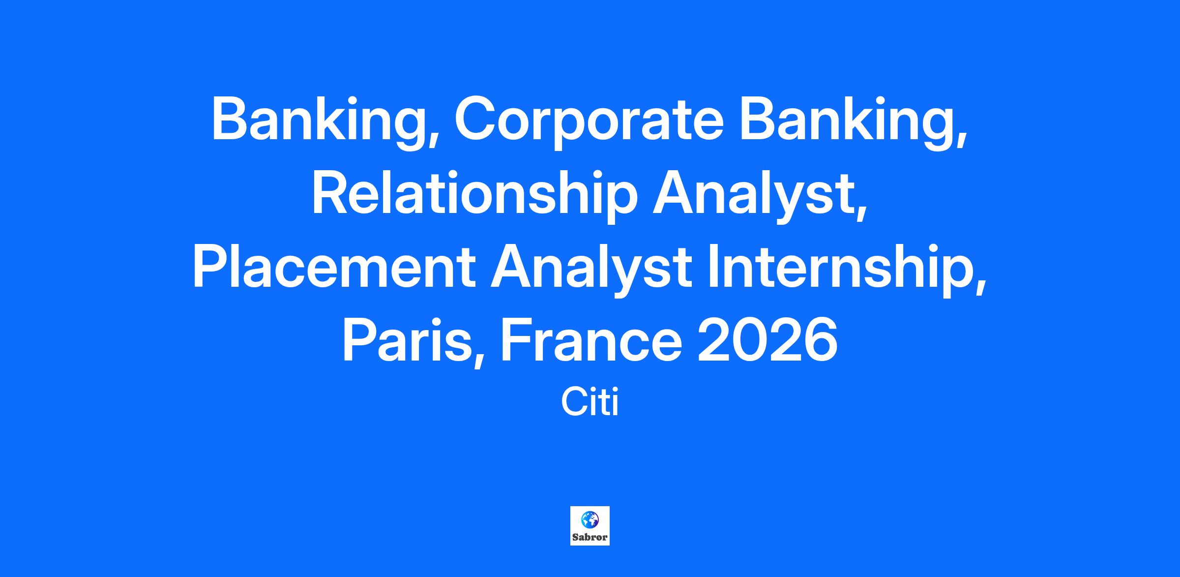 You're the brains behind our work. You’re ready to bring your knowledge from the classroom to the boardroom, and Citi wants to help you get there. Whether it’s honing your skills or building your network, we know that success can’t come without growth. Our programs equip you with the knowledge and training you need to play a valuable role on your team, and establish a long-term career here. At Citi, we value internal mobility, and career growth is not a question of if, but when. Citi’s is looking for RA Intern to join the Corporate Banking team in Paris, France in January 2026. Corporate Bankers are relationship-focused finance professionals responsible for understanding the wide range of complex financial issues facing our clients around the world. Corporate Bankers drive the client dialogue on cash management, capital structure, liability management, liquidity and funding strategies, risk management, and investment solutions. Unique to Citi, Corporate Bankers are also responsible for credit allocation as well as relationship management. Corporate Bankers work in partnership with various Citi groups across the firm including Risk Management, Investment Banking, and the Capital Markets Origination. If none of these terms make sense right now, that’s ok! Our Internship is designed to help you increase your knowledge, so whatever your degree is in we will give you the training and support you need to excel. We provide you with the knowledge and skills you need to succeed. We’re committed to teaching you the ropes. During the 6 month internship, you will be placed with a Corporate Banking team to work with for the duration of the Program. Top-performing RA Intern will have an opportunity to return to Citi after graduation to work as a full-time RA. Your time here will look something like this... Develop understanding of the internal Risk Policy. Support the RA team with credit requests from the network and request appropriate approvals. Administration of new and existing credit limits, collaborating with Credit Administration. Preparation of reports/clients credit facility lists (excel, PPT slides). Respond to ad-hoc internal queries. Support the RA team in maintaining client information database up to date. We want to hear from you if... You are available to start in January 2026 You are currently enrolled in a University that can provide an internship agreement You have a student status and related visa covering the whole internship period You have a strong interest in Finance or Accounting You have very good knowledge of Corporate Finance and Financial Markets You are fluent in English both written and oral (working language). Good level in French is recommended but not essential You have advanced skills in PowerPoint, Excel and Word You have relevant professional experience from previous internship(s) Who we think will be a great fit... A dedication to learning and a true passion for the business are vital. As industries all over the globe continue to restructure and grow, we are hiring professionals who have a global perspective on the future of banking and want to make an impact on the corporate level. We value diversity and so do you. We’ll also be looking for the following: Commitment to personal growth and career development, a strong desire to learn and success in team environments Strong communication, planning and organizational skills Unquestioned commitment to integrity ethical and decision-making We will recruit on a rolling basis and therefore encourage you to apply as soon as possible. Successful candidates will be offered a competitive salary. Before you apply have you visited our 'Career Inspiration Page'? Head over to learn more about life at Citi, ask a question or get handy tips from the previous Q&A. ------------------------------------------------------ Job Family Group: Institutional Banking ------------------------------------------------------ Job Family: Investment Banking ------------------------------------------------------ Time Type: Full time ------------------------------------------------------ Most Relevant Skills Please see the requirements listed above. ------------------------------------------------------ Other Relevant Skills For complementary skills, please see above and/or contact the recruiter. ------------------------------------------------------ Citi is an equal opportunity employer, and qualified candidates will receive consideration without regard to their race, color, religion, sex, sexual orientation, gender identity, national origin, disability, status as a protected veteran, or any other characteristic protected by law. If you are a person with a disability and need a reasonable accommodation to use our search tools and/or apply for a career opportunity review Accessibility at Citi. View Citi’s EEO Policy Statement and the Know Your Rights poster.