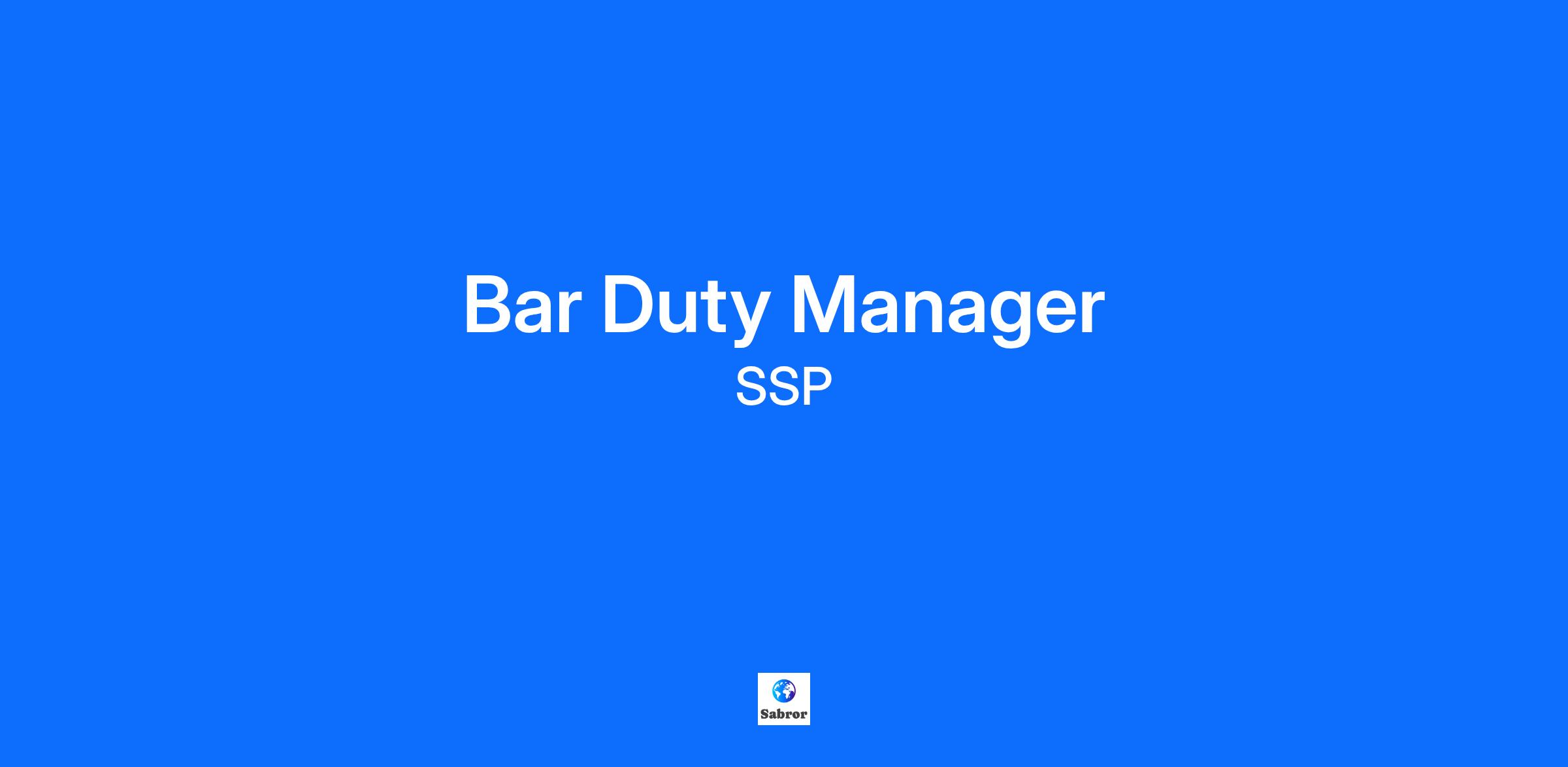 BAR DUTY MANAGER – BRISTOL AIRPORT, CABIN BAR PLEASE NOTE THIS ROLE IS FOR MORNING SHIFTS ONLY Pay Rate: £13.80 per hour + as a little incentive, you will earn an extra £1.50 per hour for hours worked between midnight and 6 AM, bringing your rate of pay to £15.30 per hour. You will also receive service charge!* Shift Pattern: Full-time, scheduled between 3am to 11:30am. Working flexibly across weekdays, weekends, bank and public holidays. Join our team as a Bar Duty Manager & step into the buzz of hospitality leadership at SSP! Work with iconic brands like Starbucks, M&S, Burger King and BrewDog in some of the busiest locations across the UK & Ireland. No two days are the same - lead your team, deliver great service, and be part of the energy! ABOUT YOU: Hospitality moves fast - and so do you! If you thrive on action, love leading people, and want to make an impact every day, our Bar Supervisor role’s got your name on it. 5 years of references and Criminal Record Check required. Due to some responsibilities within the Bar Duty Manager role, applicants will need to be 18 years of age or over to perform certain tasks or work on certain shifts and will be required to sell and handle alcohol. ABOUT THE BAR DUTY MANAGER ROLE: Take ownership of opening, closing, and daily operations while solving problems on the fly. Lead your team through busy shifts, keeping the energy high and the atmosphere positive. Inspire your team to deliver great customer service, be the go-to person for customer and team queries. Results focussed, staying informed about unit performance and championing improvements. Previous experience leading a team in busy Hospitality or Retail is ideal and/or and if you’ve tackled night shifts before, even better! AS A BAR DUTY MANAGER WE WILL OFFER YOU: Discounted Meal while on shifts. Free parking whilst on shift. Free A1 (Bristol bus), A3 (Weston Super Mare bus) and A4 (Bath bus). Employee Discounts. Friends and Family Discount App. Award-winning training, apprenticeships and development programs. Health & Wellbeing Support. A fast-paced, rewarding role where you’ll lead great people and shape the atmosphere every shift. Step up, lead brilliantly and apply today to join SSP as a Bar Duty Manager! * *There is no contractual entitlement to be considered for a distribution of the tips within your role. At SSP, we value diversity and are committed to building a team that reflects a variety of skills, talents, and backgrounds.