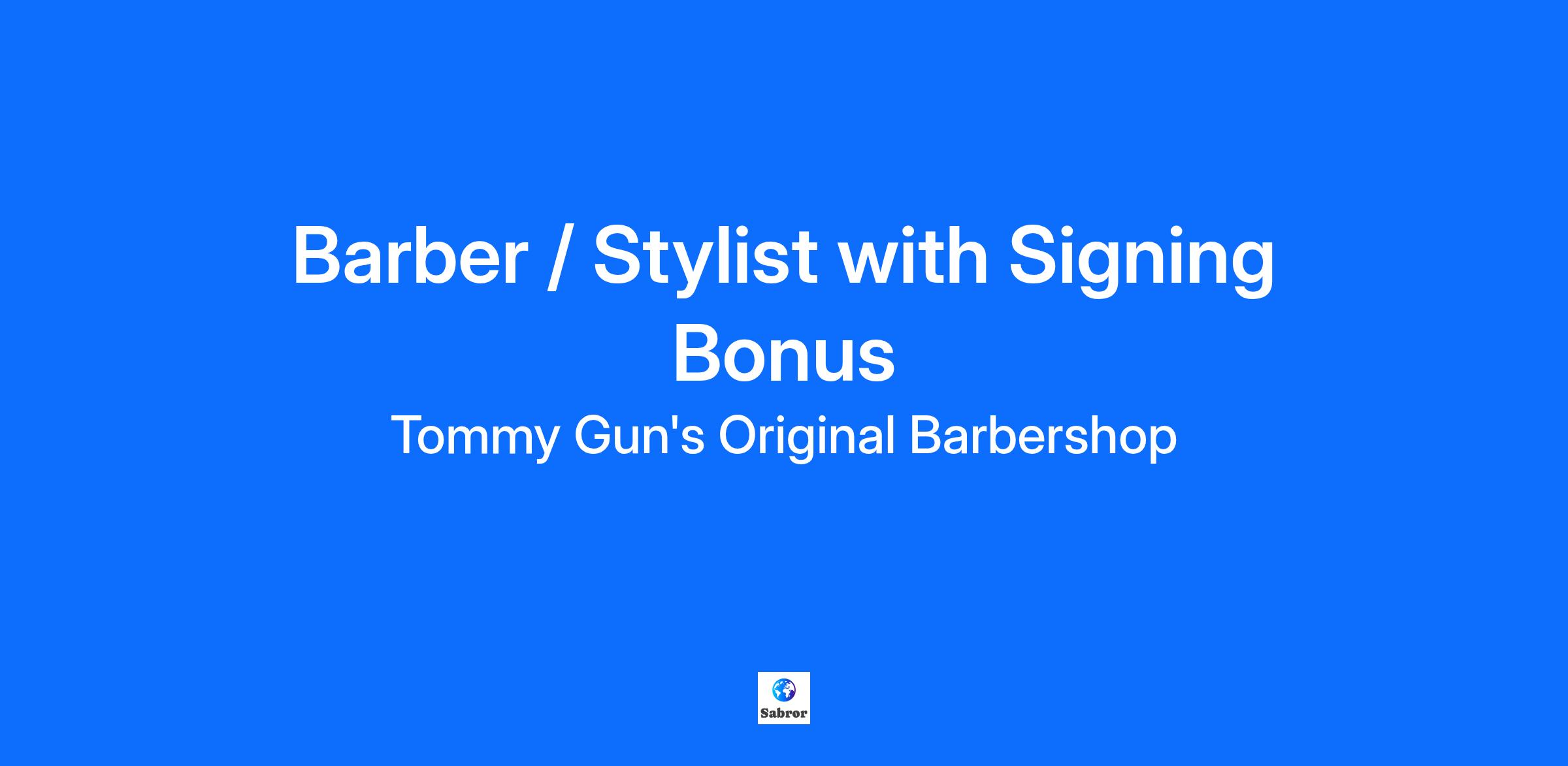Exciting Opportunity: Join our Team at Tommy Gun's Halifax + receive a $1,500 Signing BONUS! Don't miss out on our incredible signing bonus! We are thrilled to offer a generous $1,500 as a welcome gift to our new full time team members. Please ask for details during your interview. Position: Experienced and Trained Barbers or Hairstylists Work Term: Full-time and Part-time Location: Larry Uteck - Halifax Wage: starts at $15.20 per hour, plus tips (performance-based pay scale) Who we are: At Tommy Gun’s we believe that there’s nothing greater than The Fresh Cut Feeling; running your hands across your face after having a hot towel shave or the smile you get when you know your Barber or Stylist has nailed your look. At Tommy Gun’s our mission is to ensure that every Guest who visits us walks away feeling and looking their best. Our commitment to an unparalleled Tommy Gun’s experience doesn’t stop with our customers—we want you to love where you work. When our team is happy, everybody’s happy. Benefits: At Tommy Gun's we invite skilled barbers to join our respected team. With over 100 global locations, our brand presence ensures a consistent flow of clientele, boasting an average wait time of just 50 minutes. As the backbone of our organization, Barbers enjoy benefits after just 6 months for full-time team members, RRSP contributions, and vacation pay. Tiered performance-based pay Retail & Service Commissions Daily Cash Tips - because you deserve instant recognition! Guaranteed Clientele - your chair is always in demand! Health and Dental Benefits - we've got your back! Matching RRSP Contributions - plan for your future success! Flexible Hours & Work Schedule - your life, your terms! Ongoing Training with National & Brand Educators - stay at the cutting edge! Generous Retail Discount - treat yourself! Global Opportunities - Canada, USA, Australia, and NZ await your talent! Access to industry leaders – we know people! Positive and Professional Work Environment - because your workplace should feel like home! Requirements: Are you a Trained Barber or Hairstylists, or in the process of completing your Apprenticeship? We're seeking individuals with: Exceptional Customer Service Skills - can you go above and beyond for every guest, every time Adaptability to a Fast-paced Environment In-depth Industry Knowledge and Trend Awareness Excellent Communication Skills Flexibility for Shift Work Why Join Tommy Gun’s? Unmatched Work Experience Supportive Team Environment Comprehensive Training and Ongoing Education Opportunities for Career Advancement Learn more about Tommy Gun's: https://ca.tommyguns.com/ Locally Owned and Operated ~ Elevate Your Career with Tommy Gun’s. Apply Today!