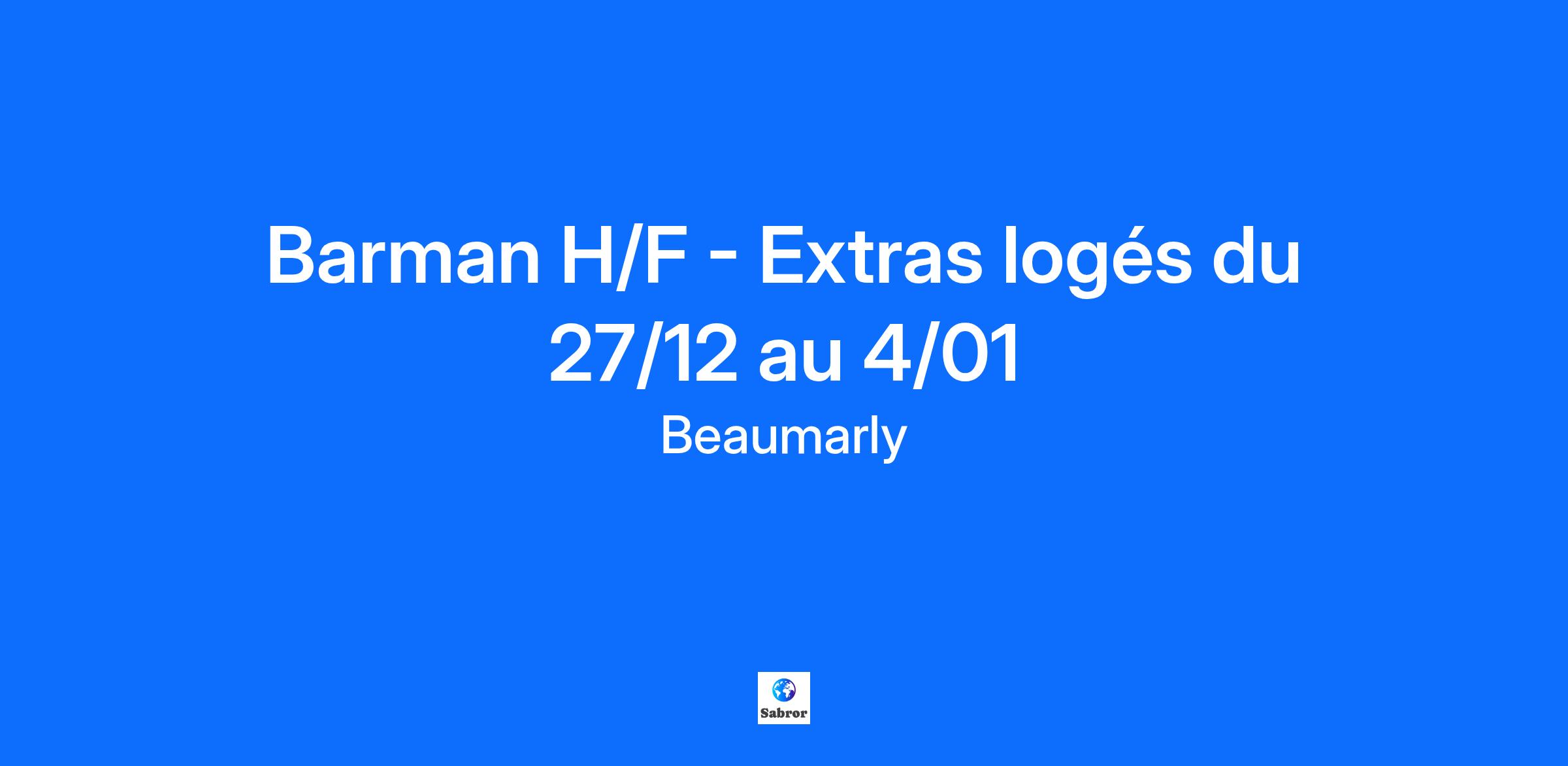 Rejoins-nous et deviens créateur d’art de vivre ! Beaumarly est une histoire de famille, d’amitié et d’entrepreneur. Notre Gouvernance est restreinte, nous prenons des décisions et nous évoluons rapidement. Nous construisons notre entreprise au gré des opportunités. Nous sommes agiles et réactifs, nous sommes présents à Paris, en province et, très prochainement, à l’international. Aujourd’hui, nous comptons deux marques : Beaumarly et Hôtel Amour, auxquelles sont rattachées nos 27 Maisons : hôtels & restaurants. Sur la ville côtière de la Côte Fleurie, notre équipe du restaurant "Le Deauville" recrute un barman en extras du 27/12/25 au 4/01/26. Rejoignez notre équipe de passionnés et participez à la création de moments mémorables pour nos clients, dans un établissement au style soigné où l'élégance et la gastronomie se rencontrent. Pourquoi nous rejoindre ? * Contrat en extras du 27/12 au 4/01 * 2 jours de repos consécutifs * Poste logé pendant la période d'essai * Heures supplémentaires rémunérées * Formations * Evolution professionnelle * Equipe dynamique et professionnelle * Etablissement au style soigné et élégant * Entreprise investie dans l’équité sociale et la gestion des déchets, une société qui a le souci du monde de demain A ce poste, tu auras pour missions d' : * Assurer l'approvisionnement, la mise en place, et le service au bar, * Préparer les boissons correspondant à la commande, * Elaborer les cocktails, * Veiller à la propreté de ton lieu de travail, * Entretenir le matériel et les équipements du bar. Notre futur barman H/F Tu as au minimum une expérience d'un an en tant que barman. Tu es dynamique, motivé et impliqué ! Également, tu dois être doté d'un bon sens de l'organisation, ainsi que d'un bon sens relationnel pour mener à bien tes missions. Beaumarly reconnait et recrute tous les talents. Pour cela, à compétences égales, une attention particulière sera apportée aux personnes en situation de handicap.