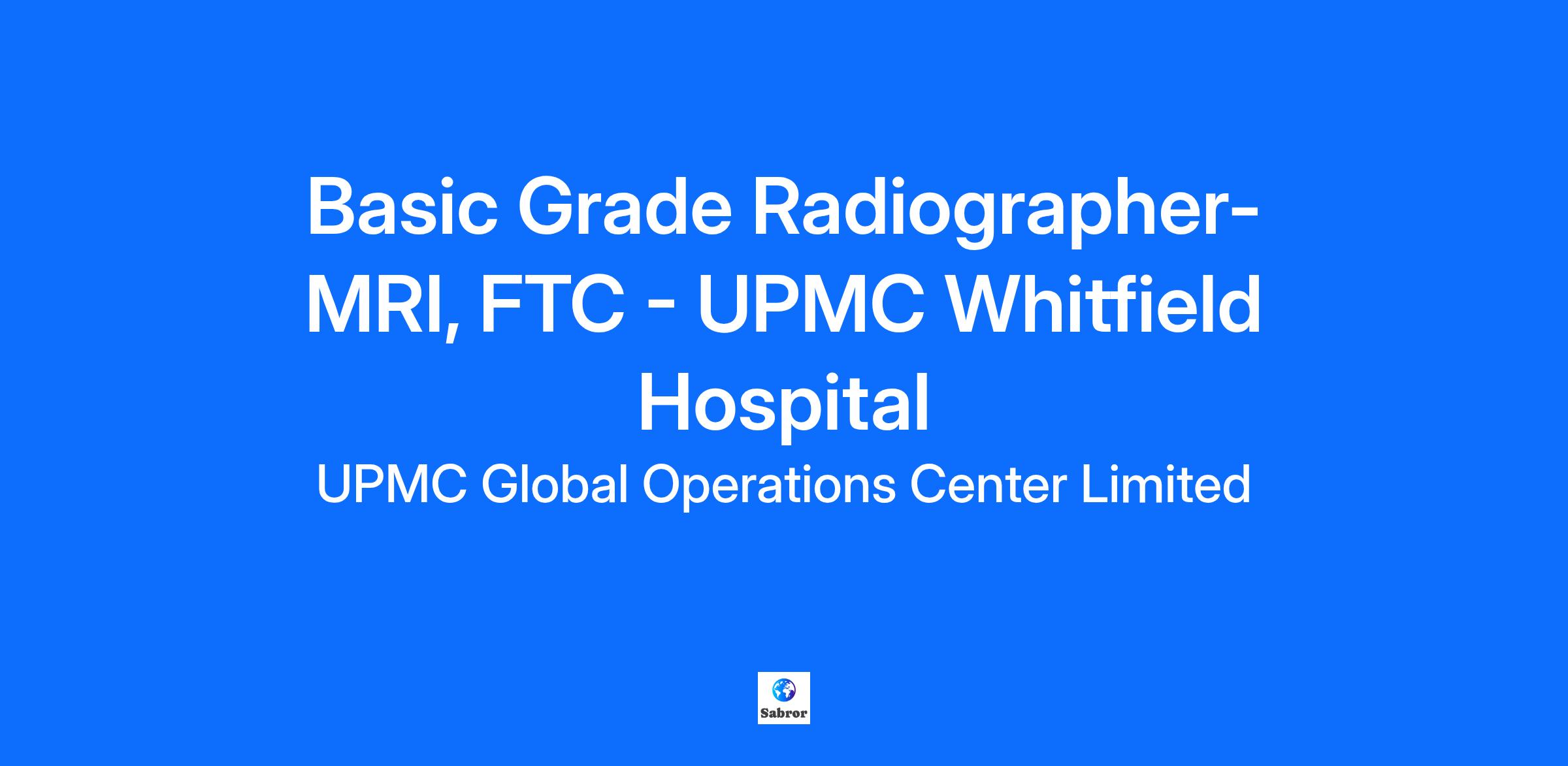Basic Grade Radiographer- MRI, FTC - UPMC Whitfield Hospital