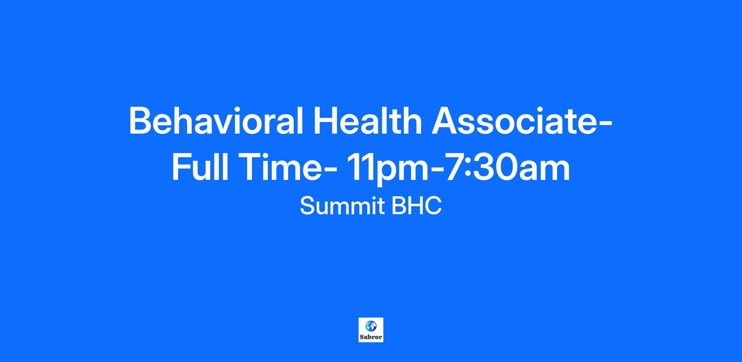 Behavioral Health Associate- Full Time- 11pm-7:30am | The Farley Center | Williamsburg, Virginia About the Job: Job Description Summary Schedule: Full-Time Opportunity, 11pm -7:30am + working every other weekend on a rotation. The Behavioral Health Associate I serves as an integral part of the multidisciplinary treatment team and is responsible for monitoring and reporting of client behaviors; providing continuous client care, supervision, interaction, and role modeling; assisting in client data collection, recording, and maintenance; and responding in crisis situations and medical emergencies as needed. Roles and Responsibilities: · Ensures the wellbeing of clients and provides a safe, positive, supportive, and structured environment. Maintains a constant awareness and supervision of clients. · Conducts safety checks, ensuring that supervision is conducted at intervals in accordance with individualized supervision guidelines. · Checks clients for contraband and manages the client’s valuables and belongings. · Interacts routinely with clients, observes behaviors and communicates significant observations to supervisor. Promotes interest in recreational activities. · Engages with client in activities and interactions designed to encourage achievement of treatment goals. · Facilitates client educational-rehabilitative groups which cover a variety of topics including social skills, coping skills, anger management and independent living skills. · May take and record vital signs properly and communicates significant changes in client’s condition to the charge nurse. · Documents in client records timely, accurately, and appropriately. · Applies de-escalation techniques to help manage client’s emotions, behavior and participation in treatment. · Assists with unit cleaning, organization of new admits charts, discharge process, filing, etc. Initiates client/employee incident reports. · Provides transfer or transportation for client or coordinates transportation with appropriate staff member, as required. · Provides verbal report/briefing to the oncoming shift. · Serves as a resource for new clients introducing them to other clients and staff, explaining programs and encouraging participation. Orients clients to the activities program, explaining the benefits of activities. · Maintains an awareness of client's needs and individual goals while motivating clients towards activities which are beneficial to them. Observes clients’ interest levels and behaviors. · Assists with activity planning by offering new activity ideas and diverse therapeutic recreation program. · Organizes and sets up the equipment that is used in recreational activities. Provides clients with activity resources and supplies, as needed. · Enforces safety rules to prevent injury and modifies activities to suit the needs of specific groups. · Helps to develop and maintain departmental resources, sharing the responsibility to monitor equipment and supplies. · High school graduate or equivalent. · Six months or more experience working with the specific population of the facility preferred. · Knowledge of common psychiatric disorders and/or dual diagnosis and various treatment modalities of the population served preferred. · CPR and de-escalation certification required (training available upon hire and offered by facility). · First aid may be required based on state or facility requirements. Why The Farley Center?The Farley Center offers a comprehensive benefit plan and a competitive salary commensurate with experience and qualifications. Qualified candidates should apply by submitting a resume. The Farley Center is an EOE. Veterans and military spouses are highly encouraged to apply. Summit BHC is dedicated to serving Veterans with specialized programming at our treatment centers across the country. We recognize and value the unique strengths of the military community in supporting our mission to serve those who have served.