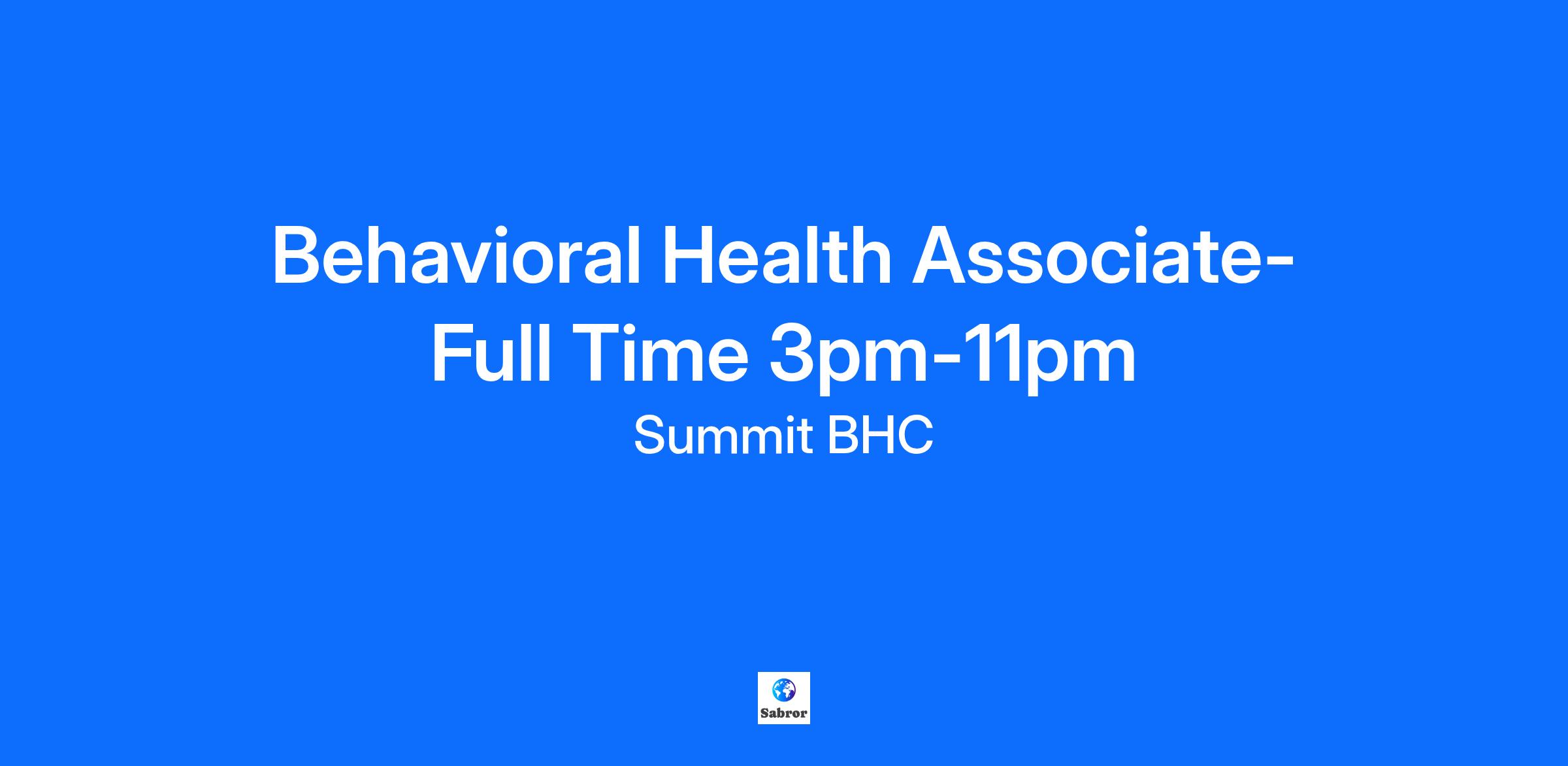 Behavioral Health Associate- Full Time 3pm-11pm | The Farley Center | Williamsburg, Virginia About the Job: Schedule: Full-Time Opportunity, 3pm -11pm + working every other weekend on a rotation. The Behavioral Health Associate I serves as an integral part of the multidisciplinary treatment team and is responsible for monitoring and reporting of client behaviors; providing continuous client care, supervision, interaction, and role modeling; assisting in client data collection, recording, and maintenance; and responding in crisis situations and medical emergencies as needed. Roles and Responsibilities: · Ensures the wellbeing of clients and provides a safe, positive, supportive, and structured environment. Maintains a constant awareness and supervision of clients. · Conducts safety checks, ensuring that supervision is conducted at intervals in accordance with individualized supervision guidelines. · Checks clients for contraband and manages the client’s valuables and belongings. · Interacts routinely with clients, observes behaviors and communicates significant observations to supervisor. Promotes interest in recreational activities. · Engages with client in activities and interactions designed to encourage achievement of treatment goals. · Facilitates client educational-rehabilitative groups which cover a variety of topics including social skills, coping skills, anger management and independent living skills. · May take and record vital signs properly and communicates significant changes in client’s condition to the charge nurse. · Documents in client records timely, accurately, and appropriately. · Applies de-escalation techniques to help manage client’s emotions, behavior and participation in treatment. · Assists with unit cleaning, organization of new admits charts, discharge process, filing, etc. Initiates client/employee incident reports. · Provides transfer or transportation for client or coordinates transportation with appropriate staff member, as required. · Provides verbal report/briefing to the oncoming shift. · Serves as a resource for new clients introducing them to other clients and staff, explaining programs and encouraging participation. Orients clients to the activities program, explaining the benefits of activities. · Maintains an awareness of client's needs and individual goals while motivating clients towards activities which are beneficial to them. Observes clients’ interest levels and behaviors. · Assists with activity planning by offering new activity ideas and diverse therapeutic recreation program. · Organizes and sets up the equipment that is used in recreational activities. Provides clients with activity resources and supplies, as needed. · Enforces safety rules to prevent injury and modifies activities to suit the needs of specific groups. · Helps to develop and maintain departmental resources, sharing the responsibility to monitor equipment and supplies. · High school graduate or equivalent. · Six months or more experience working with the specific population of the facility preferred. · Knowledge of common psychiatric disorders and/or dual diagnosis and various treatment modalities of the population served preferred. · CPR and de-escalation certification required (training available upon hire and offered by facility). · First aid may be required based on state or facility requirements. Why The Farley Center?The Farley Center offers a comprehensive benefit plan and a competitive salary commensurate with experience and qualifications. Qualified candidates should apply by submitting a resume. The Farley Center is an EOE. Veterans and military spouses are highly encouraged to apply. Summit BHC is dedicated to serving Veterans with specialized programming at our treatment centers across the country. We recognize and value the unique strengths of the military community in supporting our mission to serve those who have served.