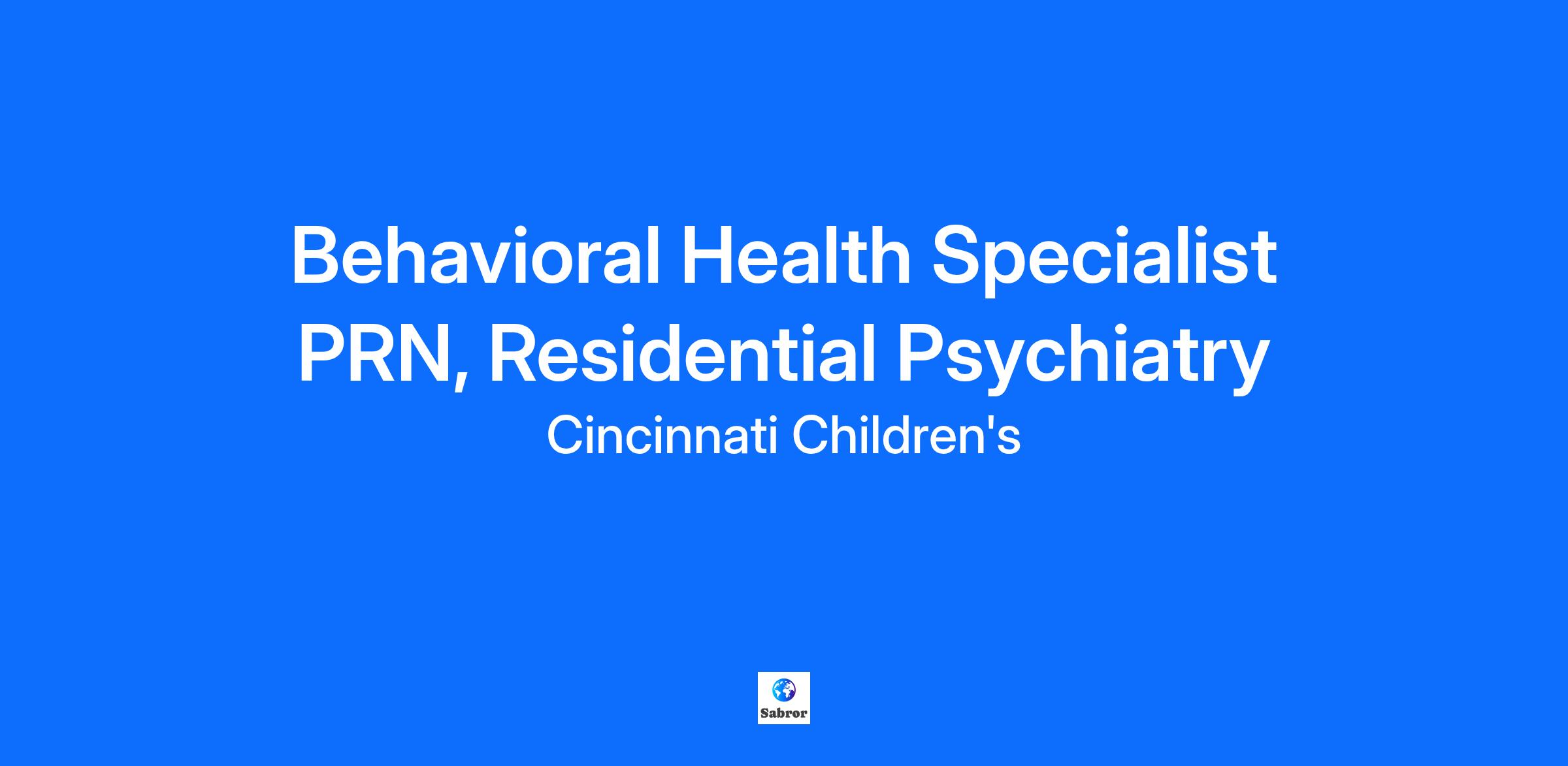 Behavioral Health Specialist, Residential Psychiatry Expected Starting Salary Range: $21.00 - $24.05 Location/Unit: College Hill – Residential Department Shift/Hours/FTE: Rotating Day/Evening - PRN Benefits Eligibility: Not Benefits Eligible Behavioral Health Specialist - A Day in the Life Working as a Behavioral Health Specialist (BHS) at Cincinnati Children’s Hospital Medical Center, you will enjoy: Leading and co-leading group programming to support therapeutic outcomes. Implementing a token economy to reinforce positive behaviors, promote skill-building, and support progress toward discharge goals. Providing direct patient care in a team-based setting and collaborating with an interdisciplinary team to ensure the best outcomes. Implementing individualized patient care plans and documenting behavioral observations. Establishing a safe, stable, and nurturing environment for youth in crisis. A state-of-the-art mental health facility that opened in October 2023! Job Responsibilities Milieu Management: Create a safe, stable, and nurturing environment that fosters support and consistency. Implement a token economy to reinforce positive behaviors. Support patients with a variety of severe psychological/psychiatric difficulties, including mood disorders, disruptive/aggressive behavior, self-harm, anxiety, psychosis, eating disorders, intellectual disability and neurodevelopmental disorders who often have histories including significant psychosocial stressors and trauma. Proactively prevent and respond to crises using Therapeutic Crisis Intervention (TCI) strategies, including verbal de-escalation and physical interventions when necessary due to imminent risk. Lead and intervene in behavioral crises, apply appropriate strategies based on the Stress Model of Crisis and individualized treatment plans. Conduct safety checks, room searches, and patient safety searches. Follow policies and collaborate with the interdisciplinary team. Plan of Care: Implement individualized care plans, including behavioral interventions and support for activities of daily living (bathing, feeding, toileting). Provide care primarily in group settings, with individualized programming as needed per treatment team recommendations. Maintain designated observation status (e.g., continuous observation, 15-minute checks, remaining within arm’s-length of patient). Group Programming: Lead structured group programming and facilitate patient engagement; adjust delivery to meet developmental needs of patients, observe behavior and participate in problem-solving Therapeutic Relationships: Build rapport while maintaining professional boundaries. Recognize trauma impacts and use developmentally appropriate therapeutic communication. Contribute to team planning and patient-centered care discussions. Documentation: Complete accurate and timely documentation, including shift notes, incident documentation (e.g., restraint, seclusion), and safety checks. Summarize what happens before and after target behaviors. Actively participate in shift reports, safe handoff procedures, and data collection. Qualifications Required: High school diploma or equivalent AND 2 years of work experience in a related job discipline OR Preferred: Bachelor's degree in a related field (experience not required but preferred) Primary Location College Hill Campus Schedule Part time Shift Rotating (United States of America) Department College Hill Residential Employee Status Stand By FTE 0 Weekly Hours 0 *Expected Starting Pay Range *Annualized pay may vary based on FTE status $21.00 - $25.72 Market Leading Benefits Including*: Medical coverage starting day one of employment. View employee benefits here. Competitive retirement plans Tuition reimbursement for continuing education Expansive employee discount programs through our many community partners Shift Differential, Weekend Differential, and Weekend Option Pay Programs for qualified positions Support through Employee Resource Groups such as African American Professionals Advisory Council, Asian Cultural and Professional Group, EQUAL - LGBTQA Resource Group, Juntos - Hispanic/Latin Resource Group, Veterans and Military Family Advocacy Network, and Young Professionals (YP) Resource Group Physical and mental health wellness programs Relocation assistance available for qualified positions *Benefits may vary based on FTE Status and Position Type About Us At Cincinnati Children’s, we come to work with one goal: to make children’s health better. We believe in a holistic team approach, both in caring for patients and their families, and in advancing science and discovery. We strive to do better and find energy and inspiration in our shared purpose. If you want to be the best you can be, you can do it at Cincinnati Children’s. Cincinnati Children's is: Recognized by U.S. News & World Report as a top 10 best Children's Hospitals in the nation for more than 15 years Consistently among the top 3 Children's Hospitals for National Institutes of Health (NIH) Funding Recognized as one of America’s Best Large Employers (2025), America’s Best Employers for New Grads (2025) One of the nation's America’s Most Innovative Companies as noted by Fortune Consistently certified as great place to work A Leading Disability Employer as noted by the National Organization on Disability Magnet® designated for the fourth consecutive time by the American Nurses Credentialing Center (ANCC) We Embrace Innovation—Together. We believe in empowering our teams with the tools that help us work smarter and care better. That’s why we support the responsible use of artificial intelligence. By encouraging innovation, we’re creating space for new ideas, better outcomes, and a stronger future—for all of us. Comprehensive job description provided upon request. Cincinnati Children’s is proud to be an Equal Opportunity Employer committed to creating an environment of dignity and respect for all our employees, patients, and families