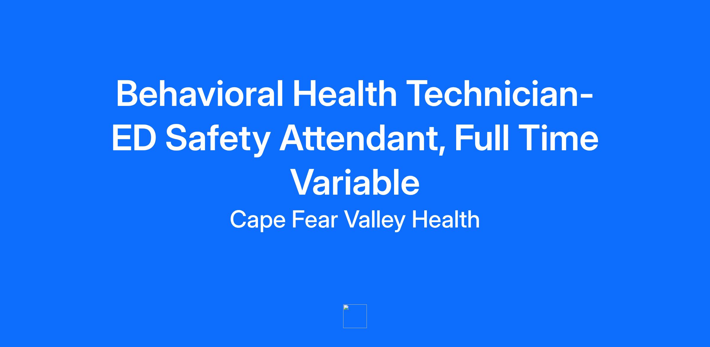 $7,500 Sign-On Bonus! Facility Cape Fear Valley Medical Center Location Fayetteville, North Carolina Department ED Safety Attendants Job Family Professional Work Shift Variable (United States of America) Summary Performs routine patient care duties to include observation, monitoring and recording changes in patient’s condition, obtaining vital signs, assisting with activities of daily living, providing emotional support and care under the direction of a nurse, and facilitates groups Assists with performing contraband searches; inventory of patient’s personal belongings. Effectively utilizes crisis intervention and de-escalation techniques as needed. Assists with maintaining a safe, clean, and therapeutic environment. Serves as resource for medical staff, nursing staff, security, and other Behavioral Health Technicians. Major Job Functions The following is a summary of the major essential functions of this job. The incumbent may perform other duties, both major and minor, that are not mentioned below. In addition, specific functions may change from time to time: Provides care to the patients in a manner that promotes safety, protects patient rights, preserves patient dignity, provides comfort and is conducive to a positive therapeutic environment Assists with new admissions including, but not limited to, conducting contraband searches, orientating patient to room and environment, obtaining vital signs and securing patient belongings in designated area Assists with transfers and discharges to include, but not limited to, obtaining vital signs and gathering patient belongings Obtaining and monitoring vital signs, obtain patient weight and report abnormalities to nurse Assists patients with activities of daily living, (personal hygiene, and toileting if necessary) Assists with therapeutic holds, restraints, and seclusion procedures after completing NCI Training Assess patients through play and group activities, report abnormal findings to nurse Assists with Q-15-minute rounding and video, visual constant and touch constant observation, monitoring and documentation as directed by nurse Assists with documentation of intake and output and graphing of vital signs as directed Facilitates Therapeutic Community Meeting and Wrap-up as assigned Participates in educational and performance improvement initiatives Actively participates in cost containment Other duties as assigned Minimum Qualifications The following qualifications, or equivalents, are the minimum requirements necessary to perform the essential functions of this job: Education and Formal Training: High school diploma or equivalent required Associates degree or Bachelors degree in Psychology/Social Work preferred Nursing Assistant certification accepted BLS from the American Heart Association required Nonviolent Crisis Intervention training and certification within 30 days of employment Work Experience: 2 years of psychiatric experience preferred Knowledge, Skills, and Abilities Required: Must possess excellent verbal and written communication skills Must possess excellent customer service skills Demonstrates competency to work with children, adolescents, and adults with mental illness Possesses basic knowledge of age specific considerations for the population served Must possess unrestricted NCI Certification upon completion of training General computer competency required Physical Requirements: Ability to work variable shifts Position requires bending, prolonged standing, and walking Ability to turn and lift patients Must possess visual and auditory acuity for observation and manual dexterity for computer use and documentation May involve skin, eye, mucous membrane, or parenteral contact with blood or other potentially infectious material Required Licenses and Certifications Cape Fear Valley Health System is an Equal Opportunity Employer M/F/Disability/Veteran/Sexual Orientation/Gender Identity For exceptional healthcare come to Cape Fear Valley Health where caring employees are committed to integrity, patient-centeredness and excellence throughout the entire healthcare process. At Cape Fear Valley Health, our goal is to improve the quality of every life we touch. Our diverse team of doctors, nurses and staff work together to create a better experience for every patient, every time. Cape Fear Valley is a 950-bed, 8-hospital regional health system, the 8th largest in North Carolina, with more than 1 million inpatient and outpatients annually. A private not-for-profit organization with over 7,000 employees and 850 physicians. Our employees and physicians proudly serve a seven-county region of southeastern North Carolina, including Fayetteville, Fort Bragg, Hope Mills, Raeford, Lumberton, Elizabethtown, Clinton, Lillington, Dunn and beyond. Our medical facilities include Cape Fear Valley Medical Center, Highsmith-Rainey Specialty Hospital, Cape Fear Valley Rehabilitation Center, Behavioral Health Care, Bladen County Hospital, Hoke Hospital, Central Harnett Hospital, Betsy Johnson Hospital, as well as more than 60 medical offices and specialty care clinics spread throughout the Cape Fear region.