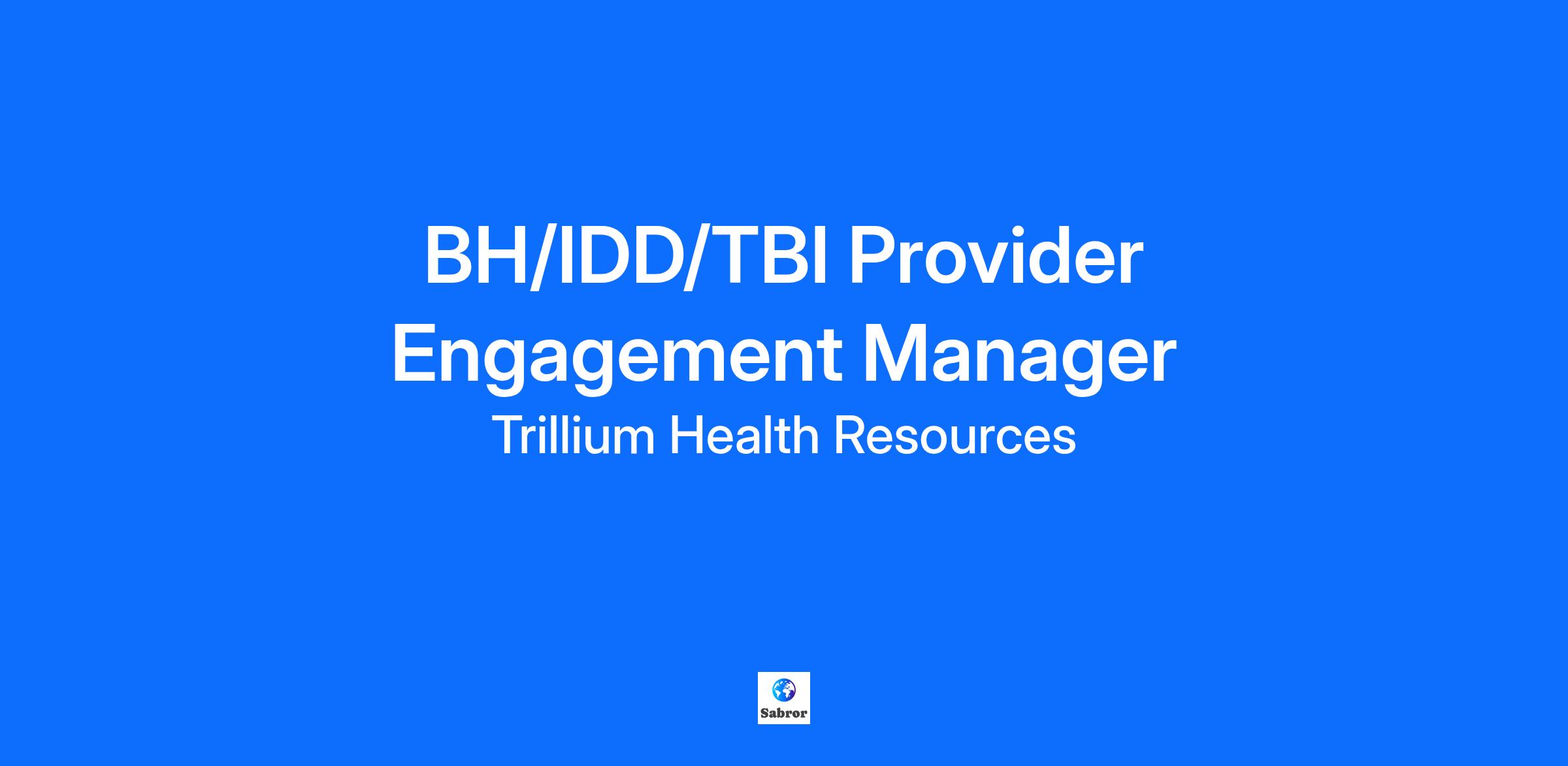 Working Title: BH/IDD/TBI Provider Engagement Manager
