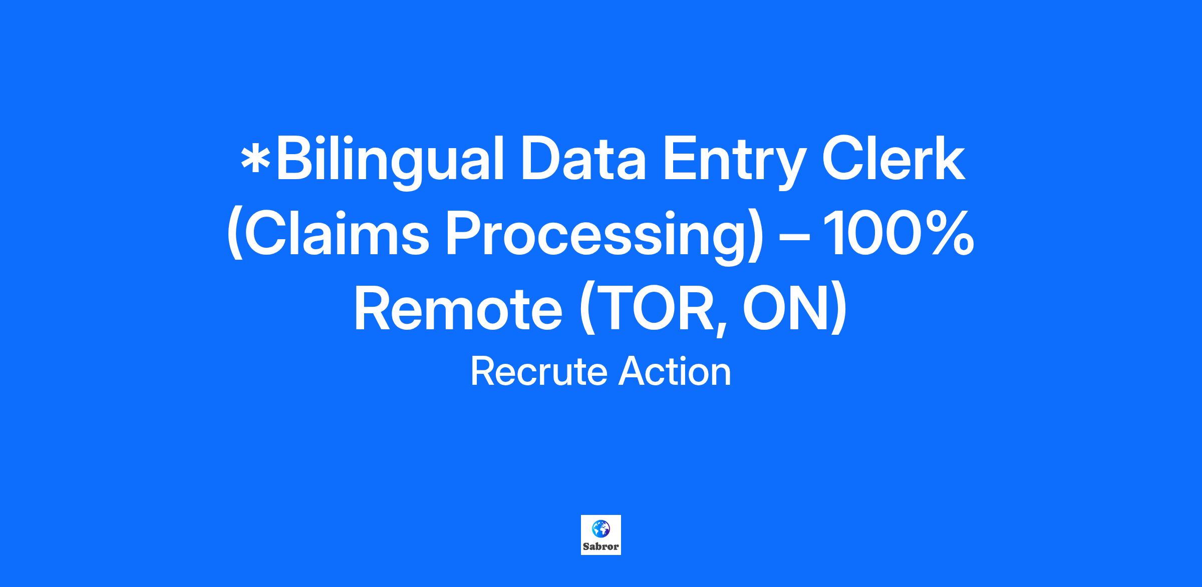 *Bilingual Data Entry Clerk (Claims Processing) – 100% Remote (TOR, ON)
