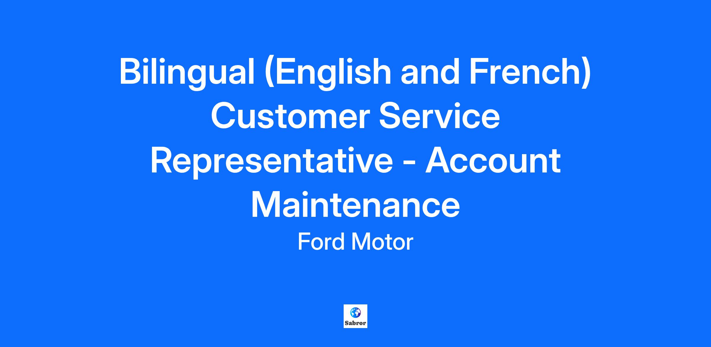 DescriptionWorking with a large team, as well as a broad network for Ford/Lincoln dealers across the country, the Bilingual (French/English) Account Maintenance Customer Service Representative will have the opportunity to advance Ford Credit Canada’s reputation as a customer-focused lender, providing personalized service and professional expertise.