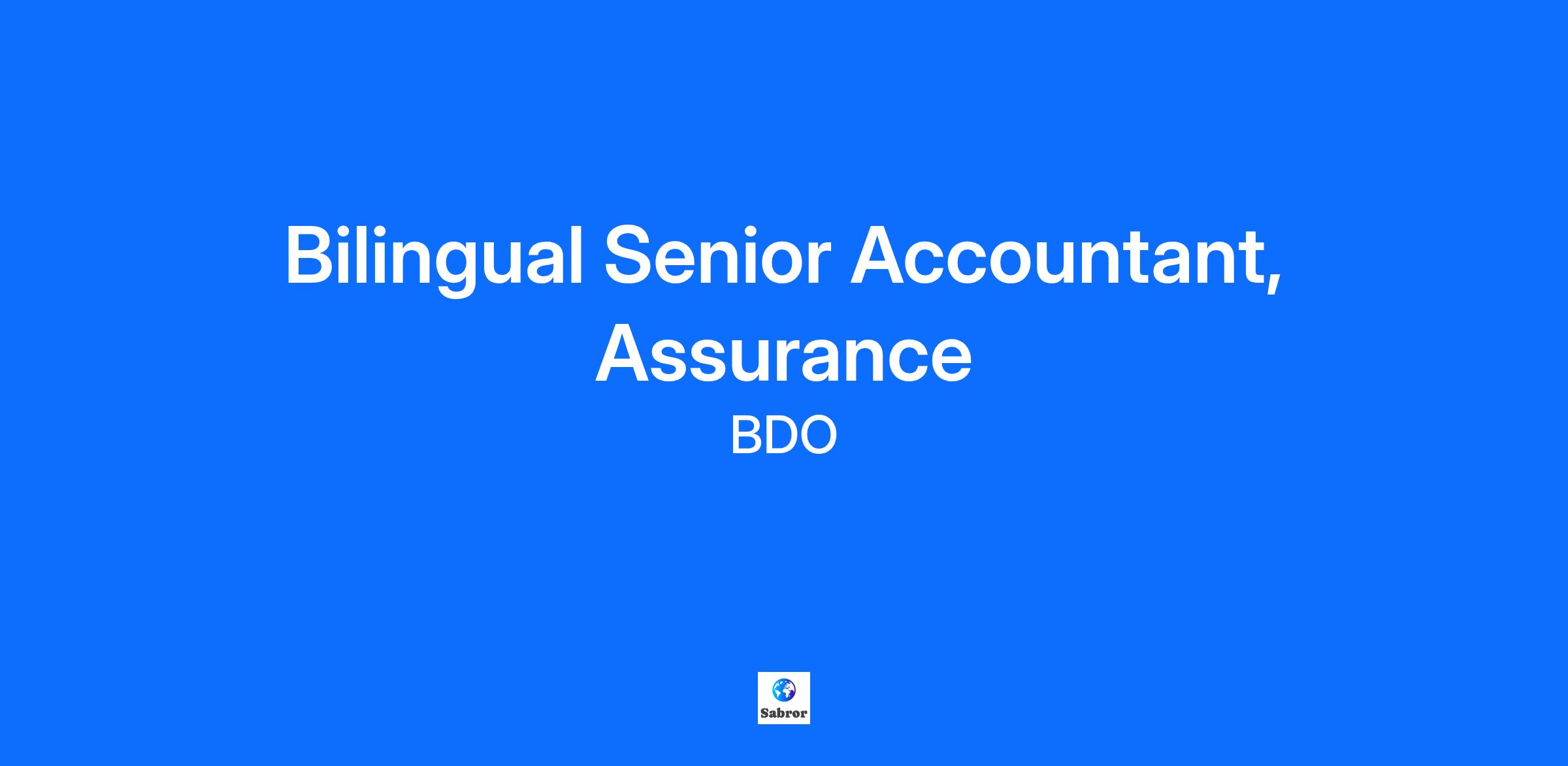 Putting people first, every day BDO is a firm built on a foundation of positive relationships with our people and our clients. Each day, our professionals provide exceptional service, helping clients with advice and insight they can trust. In turn, we offer an award-winning environment that fosters a people-first culture with a high priority on your personal and professional growth. Your Opportunity Our Winnipeg office is looking for a Bilingual Senior Accountant to join the Assurance team. If you are a candidate that is currently located Canada and you are interested in relocating to the Winnipeg area, BDO may offer financial assistance. The selected candidate will be required to fulfill the following responsibilities: Effectively and efficiently handle audit tasks independently or within a team environment Efficiently prepare year-end engagements and tax returns for your clients in a variety of industries Perform audits on a variety of organizations, prepare working papers and financial statements per regulatory standards Build positive working relationships with clients and effectively respond to request and suggestions Participate in business development initiatives and identify new business opportunities with existing clients Effectively communicate with team members regarding progress updates and issues on an ongoing basis Engage in training staff and invest in the professional development of your team Fluently bilingual in both French and English (written and oral) How do we define success for your role? You demonstrate BDO's core values through all aspects of your work: Integrity, Respect and Collaboration You understand your client’s industry, challenges, and opportunities; clients describe you as positive, professional, and delivering high quality work You identify, recommend, and are focused on effective service delivery to your clients You share in an inclusive and engaging work environment that develops, retains & attracts talent You actively participate in the adoption of digital tools and strategies to drive an innovative workplace You grow your expertise through learning and professional development. Your experience and education You have completed your CPA designation or are in the process of completion. You have 2-3 years of audit experience in the public accounting industry. You enjoy working within the private enterprise, non-profit and public sector industries and are keen to develop further knowledge in these areas. You value teamwork, client service, and quality in detailed work. You display strong problem solving, analytical, and communication skills in both French and English. Why BDO? Our people-first approach to talent has earned us a spot among Canada’s Top 100 Employers for 2025. This recognition is a milestone we’re thrilled to add to our collection of awards for both experienced and student talent experiences. Our firm is committed to providing an environment where you can be successful in the following ways: We enable you to engage with how we change and evolve, being a key contributor to the success and growth of BDO in Canada. We help you become a better professional within our services, industries, and markets with extensive opportunities for learning and development. We support your achievement of personal goals outside of the office and making an impact on your community. Giving back adds up: Where company meets community. BDO is actively involved in our communities by supporting local charity initiatives. We support staff with local and national events where you will be given the opportunity to contribute to your community. Total rewards that matter: We pay for performance with competitive total cash compensation that recognizes and rewards your contribution. We provide flexible benefits from day one, and a market leading personal time off policy. We are committed to supporting your overall wellness beyond working hours and provide reimbursement for wellness initiatives that fit your lifestyle. Everyone counts: We believe every employee should have the opportunity to participate and succeed. Through leadership by our Diversity, Equity and Inclusion Leader, we are committed to a workplace culture of respect, inclusion, and diversity. We recognize and celebrate the valuable differences among each of us, including race, religious beliefs, physical or mental disabilities, age, place of origin, marital status, family status, gender or gender identity and sexual orientation. If you require accommodation to complete the application process, please contact us. Flexibility: All BDO personnel are expected to spend some of their time working in the office, at the client site, and virtually unless accommodations or alternative work arrangements are in place. Our model is a blended approach designed to support the flexible needs of our people, the firm and our clients. It’s about creating work experiences that meet everyone’s needs and providing flexibility to adjust when, where and how we work to meet the expectations of our role. Code of Conduct: Our Code of Conduct sets clear standards for how we conduct business. It reflects our shared values and commitments and includes guiding principles to help us make ethical decisions and maintain trust with each other, our clients, and the public. Ready to make your mark at BDO? Click “Apply now” to send your up-to-date resume to one of our Talent Acquisition Specialists. To explore other opportunities at BDO, check out our careers page. #LI-HD1 Note: Applications will be accepted until 11:59 PM on the day prior to the application deadline date above When it comes to our people, we believe in helping you unlock possibilities, build your passions, and grow your competitive edge. From our expansive client base to growing talent pool, our people are the core of BDO. Our multi-award winning talent experience continues to make us proud. Our culture is open and collaborative. We foster inclusive ways to thinking