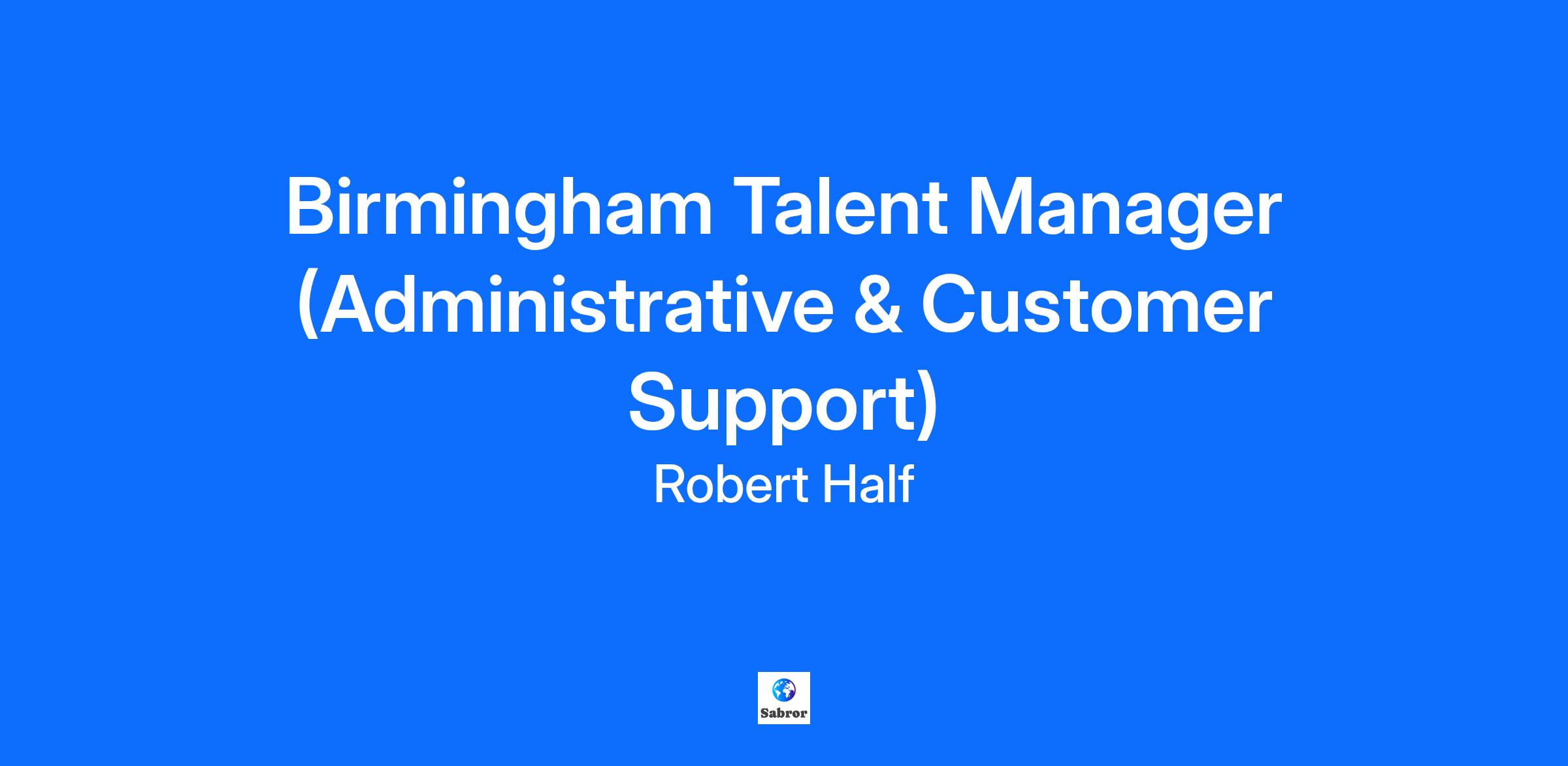 JOB REQUISITION Birmingham Talent Manager (Administrative & Customer Support) LOCATION AL BIRMINGHAM JOB DESCRIPTION Job Summary Our Talent Managers work in a team environment and have responsibility for negotiating and developing business with new and current clients. Talent Managers market our services via telephone, video and by conducting in-person meetings with hiring managers and decision-makers in administrative and customer support departments. Additional responsibilities include: recruiting, interviewing and matching highly skilled administrative and customer support professionals with clients’ projects, contract assignments and contract to full-time opportunities; managing ongoing engagements to deliver outstanding customer service to both clients and candidates; providing ongoing communication and career guidance to candidates; and participating in local trade association and networking events to increase Robert Half’s presence in the local business community. Qualifications: BA/BS degree preferred. 1+ years administrative or customer support experience preferred. 2+ years’ experience with Business Development in a Metrics Driven environment. At least one with success in developing new business in a multi‐call, multi‐decision maker environment. Prior success marketing to and closing top level decision makers at small/medium sized businesses and cultivating mutually beneficial long term relationships. Working knowledge of current Windows Operating System, Microsoft Office Suite, and any Contact Management Application (Salesforce). Knowledge and familiarity with administrative and customer support department operations. Positive attitude and an engaging businesslike approach. Top Reasons to Work for Robert Half: EXCITING CAREER OPPORTUNITIES WITH THE INDUSTRY LEADER – For more than 75 years, our history of success and strong client relationships provide a level of stability few companies can match. PERFORMANCE = REWARD – We offer exceptional earning potential and a competitive benefits package, including a base salary and bonus pay (for talent professional positions), group health insurance benefits (medical, vision, dental), flexible spending and health savings accounts, life and accident insurance, adoption, surrogacy and fertility assistance, paid parental leave of up to 6 weeks, and short/long term disability. Robert Half provides paid time off for vacation, personal needs, and sick time. The amount of Choice Time Off (CTO) our people receive varies based on their years of service and is pro-rated based on the hours worked per week. A new hire earns up to 17 days of CTO per calendar year. Our people also receive up to 11 paid holidays per calendar year. We also offer the opportunity to contribute to our company 401(k) savings and investment plan or deferred compensation plan (if eligible), with an employer match of 100% on the first 3% of your contributions for eligible employees. Learn more at roberthalfbenefits.com. UPWARD MOBILITY – With more than 300 locations worldwide, we provide excellent career advancement potential, both locally and beyond. TOOLS FOR SUCCESS – We provide world-class training, client relationship management tools and advanced technology to help you succeed. RESPECTED WORLDWIDE – Robert Half has appeared on FORTUNE magazine’s list of “Most Admired Companies” since 1998, as well as numerous “Best Places to Work” lists around the world. OUTSTANDING CORPORATE RESPONSIBILITY – We believe in an “Ethics First” philosophy, which means we are committed to social responsibility, promoting inclusion in the workplace, and actively participating in communities where we live and work. Learn more by downloading Robert Half’s Corporate Responsibility Report at roberthalf.com/about-robert-half/corporate-responsibility. Robert Half is committed to being an equal employment employer offering opportunities to all job seekers, including individuals with disabilities. If you believe you need a reasonable accommodation in order to search for a job opening or to apply for a position, please contact us by sending an email to HRSolutions@roberthalf.com or call 1.855.744.6947 for assistance. In your email please include the following: The specific accommodation requested to complete the employment application. The location(s) (city, state) to which you would like to apply. For positions located in San Francisco, CA: Robert Half will consider qualified applicants with criminal histories in a manner consistent with the requirements of the San Francisco Fair Chance Ordinance. For positions located in Los Angeles County, CA: Robert Half will consider for employment qualified applicants with arrest or conviction records in accordance with the Los Angeles County Fair Chance Ordinance for Employers and the California Fair Chance Act. JOB LOCATION AL BIRMINGHAM Robert Half is the world’s first and largest specialized talent solutions firm that connects opportunities at great companies with highly skilled job seekers. Robert Half offers contract, temporary and permanent placement solutions, and is the parent company of Protiviti®, a global consulting firm. Visit RobertHalf.com.