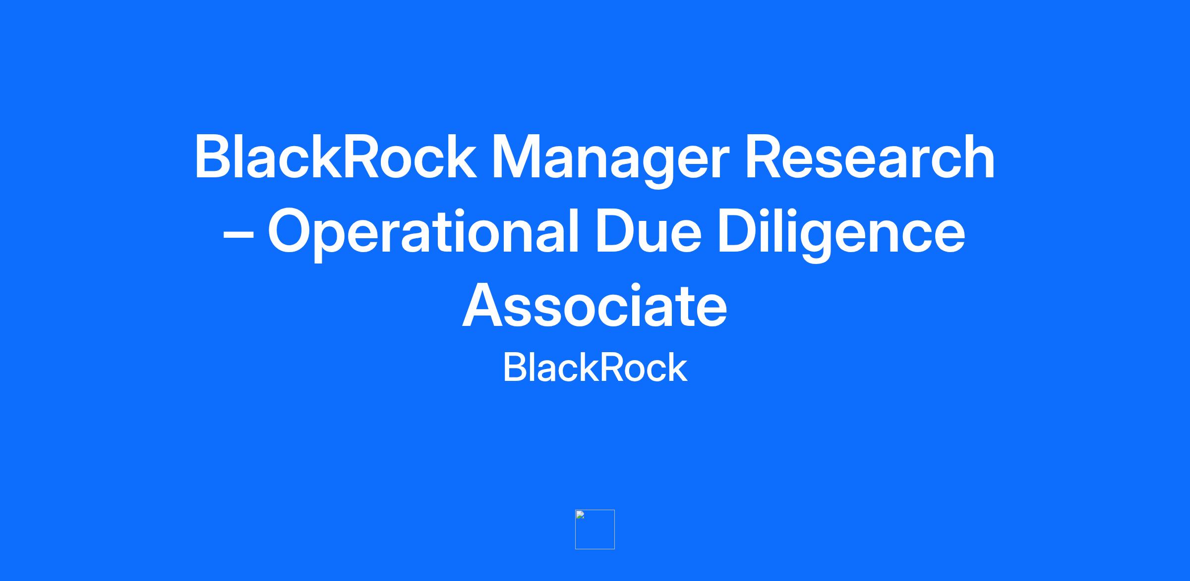 About this role BlackRock's Manager Research Operational Due Diligence team is looking for an Associate to join our team in London. Who we are: BlackRock Manager Research (“BMR”) is a global team that drives innovation in selecting the best investment managers across public and private markets. Whether it’s hedge funds or mutual funds, private credit or real estate, we help build portfolios that perform – using innovative methods to identify the top players in the industry. BMR is organized into three expert pillars: Investment Due Diligence (IDD), Operational Due Diligence (ODD), and Quantitative Due Diligence (QDD), where we analyze data, trends, and strategies to ensure our clients’ investments thrive. As part of BlackRock’s Multi-Asset Strategies & Solutions (MASS) group, you’ll be at the heart of how we approach asset allocation, portfolio construction, and active management. With over $1 trillion in assets under management, MASS is where innovation meets execution in delivering results for BlackRock clients globally. Your Role: As an Associate on our Operational Due Diligence team, you will dive deep into comprehensive operational reviews of underlying investments, assessing personnel, policies, procedures, and the overall control environment of the firm. You'll cover areas such as trading, asset valuation, third-party service providers, counterparty risk, regulatory developments, compliance, fund governance, as well as technology and cybersecurity. Your responsibilities will include performing assessments on new investment opportunities, ongoing monitoring of existing investments, and meeting with the C-suite and senior leadership of third-party investment managers, leading experts in BlackRock, and industry service providers. This role is perfect for someone who thrives in a dynamic and collaborative environment, possesses strong analytical and organizational skills, and has a passion for continuous development and improvement. Successful candidates will demonstrate outstanding attention to detail, excellent interpersonal skills, and a relentless drive to excel. If you have intellectual curiosity and a proven ability to work across teams, this is the opportunity for you! Join us and be part of a team that is shaping the future of investment management. What You’ll Do: Conduct operational due diligence reviews on existing and prospective investments, including evaluations of internal controls, operational support structure, personnel, trading infrastructure, regulatory environment, compliance program, financing arrangements, cash management procedures, valuation practices, NAV production, service providers, IT and cybersecurity, etc. Perform operational assessments and present findings to the Investment Committee. Deliver recommendations on best practices to external investment managers and internal partners. Coordinate and participate in meetings with C-suite executives (e.g. COO, CFO) and other senior management personnel. Contribute to client engagement efforts and ongoing servicing Conduct reviews of key industry service providers such as fund administrators, third party valuation agents, compliance and IT consultants, prime brokers, etc. Assist with legal fund documentation review and negotiations. Build a comprehensive understanding of investment strategies and asset classes through independent research, engagement in the industry and across the Firm. Drive initiatives and projects focused on process enhancement and emergent industry trends What You Offer: Fresh Perspectives: 3-5 years of experience is great but not crucial – we’re more interested in your curiosity and passion for investments. Academic Excellence: Whether you studied Finance, Economics, Mathematics, Engineering, or something similar, we want to see outstanding academic credentials. Ambition: Got your eye on the CFA or CPA? Amazing! We love people who are committed to personal growth. Confidence and Communication: You’re articulate, confident, and ready to present your ideas to everyone from teammates to senior leadership to C-suite executives. Energy and Drive: You bring a sense of urgency, a hands-on approach, and the ability to balance the big picture with the details. Relationship Builder: You’re great at establishing rapport and forming meaningful connections inside and outside the organization. Tech Savvy: Proficient in Python, R, SQL, etc.? Fantastic! We can put those skills to good use. Willingness to Travel: Domestically and internationally – our investment managers are all over the world! Our benefits To help you stay energized, engaged and inspired, we offer a wide range of employee benefits including: retirement investment and tools designed to help you in building a sound financial future; access to education reimbursement; comprehensive resources to support your physical health and emotional well-being; family support programs; and Flexible Time Off (FTO) so you can relax, recharge and be there for the people you care about. Our hybrid work model BlackRock’s hybrid work model is designed to enable a culture of collaboration and apprenticeship that enriches the experience of our employees, while supporting flexibility for all. Employees are currently required to work at least 4 days in the office per week, with the flexibility to work from home 1 day a week. Some business groups may require more time in the office due to their roles and responsibilities. We remain focused on increasing the impactful moments that arise when we work together in person – aligned with our commitment to performance and innovation. As a new joiner, you can count on this hybrid model to accelerate your learning and onboarding experience here at BlackRock. About BlackRock At BlackRock, we are all connected by one mission: to help more and more people experience financial well-being. Our clients, and the people they serve, are saving for retirement, paying for their children’s educations, b