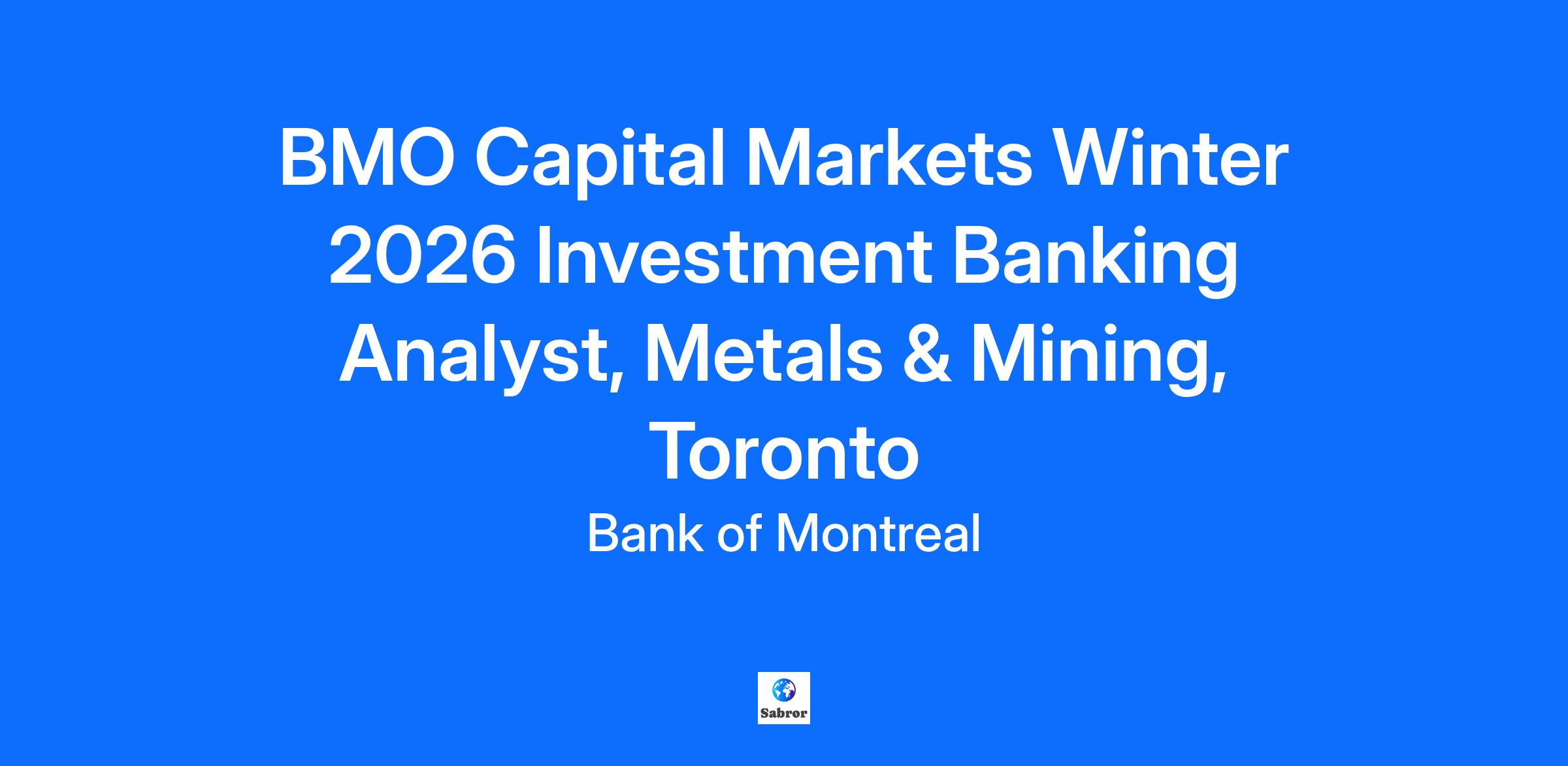 Application Deadline: 09/25/2025 Address: 100 King Street West Job Family Group: Capital Mrkts Sales & Service BMO Capital Markets BMO Capital Markets is a leading, full-service North American-based financial services provider, with over 2,700 professionals in 30 locations around the world, including 20 offices in North America, offering corporate, institutional and government clients access to a complete range of investment and corporate banking products and services. BMO Capital Markets is a member of BMO Financial Group (NYSE, TSX: BMO), one of the largest diversified financial services providers in North America with US$1.0 trillion total assets and approximately 54,000 employees as of January 31, 2025. Program Overview: This position will be situated with the Metals & Mining team in Toronto. Co-op Analysts will participate in a one-week training and orientation program and are assigned to a specific Investment Banking product or industry group during the program. In addition to this on-the-job experience, the program includes the opportunity to network across various business groups, learn about the culture of BMO Capital Markets, participate in training and learning seminars, and obtain career guidance from dedicated mentors. Responsibilities: As an Investment Banking Co-op Analyst on the Metals & Mining team at BMO Capital Markets, you will gain valuable exposure to a wide number of industries and work with a variety of financial products, including public and private debt and equity financings, mergers and acquisitions, and financial advisory. Responsibilities can include: Running valuation analyses; Performing complex financial modeling; Conducting industry and company research and analysis; Developing client presentations; Writing internal and external marketing memoranda; Performing other tasks supporting client relationships and business development. This position is ideally suited to talented, highly motivated individuals who seek to build a solid, comprehensive foundation in the basic skills of investment banking. Qualifications: As an Analyst you will be part of a dynamic Investment Banking environment. We are looking for highly motivated, mature individuals with: Enrolled in an undergraduate degree program, graduating in Spring 2027, 2028, 2029. Proven track record of excellent academic standing, extra curricular participation and demonstrated interest in finance. Excellent analytical skills in business, financial and credit analysis areas Strong interpersonal skills used within a demanding team environment Ability to attentively review, assess and provide detailed information daily on multiple projects in an organized manner Excellent capacity to independently function as part of a team through self-motivation Strong work ethic A high level of integrity Preference will be given to those students with a concentration in finance, accounting, economics, engineering and math (statistics) Demonstrated interest in the Metals & Mining Industry How to Apply: For your application to be eligible for consideration, you must apply to the BMO application link. Please ensure the following items are submitted in your application: Cover Letter (optional) Resume (mandatory) Transcript (mandatory) The campus job description above aligns to the full time job description below. Provides a combination of deep industry sector expertise, innovative thinking in a team-based approach and world class execution across a full suite of products to clients through an integrated Capital Markets platform using a sector ecosystem approach. Collaborates to generate creative, client-focused solutions to prospective and current clients. Develops written internal and external marketing on pitch material. Supports deal teams in development, presentation, and winning mandates. Seeks to develop an understanding of client needs and outcomes. Provides materials to support an outstanding client experience. Identifies opportunities for increased efficiency and improved service to internal and external clients. Provides analytical findings to deal teams. Supports the execution of strategic initiatives in collaboration with internal and external stakeholders. Builds effective relationships with internal/external stakeholders. Ensures alignment between stakeholders. Completes quality reports/analyses. Researches and analyzes company and industry financial and operating information. Performs complex financial modeling and runs valuation analysis as part of client / industry evaluations. Creates statistical exhibits and financial performance trend analysis for client presentations. Applies technical concepts and understands implication of work to client/transaction. Develops an understanding of and proficiency in using all required systems and models. Provides feedback on, and supports continuous improvement opportunities. Integrates information from multiple sources to enable more efficient processes, enhanced analysis, and/or streamlined reporting. Delivers financial modeling to support strategic recommendations to clients. Considers risk, internal controls and compliance as part of day-to-day accountabilities and adheres to policies and procedures. Focus may be on a business/group. Thinks creatively and proposes new solutions. Exercises judgment to identify, diagnose, and solve problems within given rules. Works mostly independently. Broader work or accountabilities may be assigned as needed. Qualifications: Typically between 3 - 5 years of relevant experience and post-secondary degree in related field of study or an equivalent combination of education and experience. An undergraduate degree with academic coursework in finance, economics, or accounting and an outstanding academic achievement. Financial analysis training and experience. 0 - 3 years of successive relevant experience within investment and/or corporate banking experience based on business requirements. Highly skilled in building complex financial models