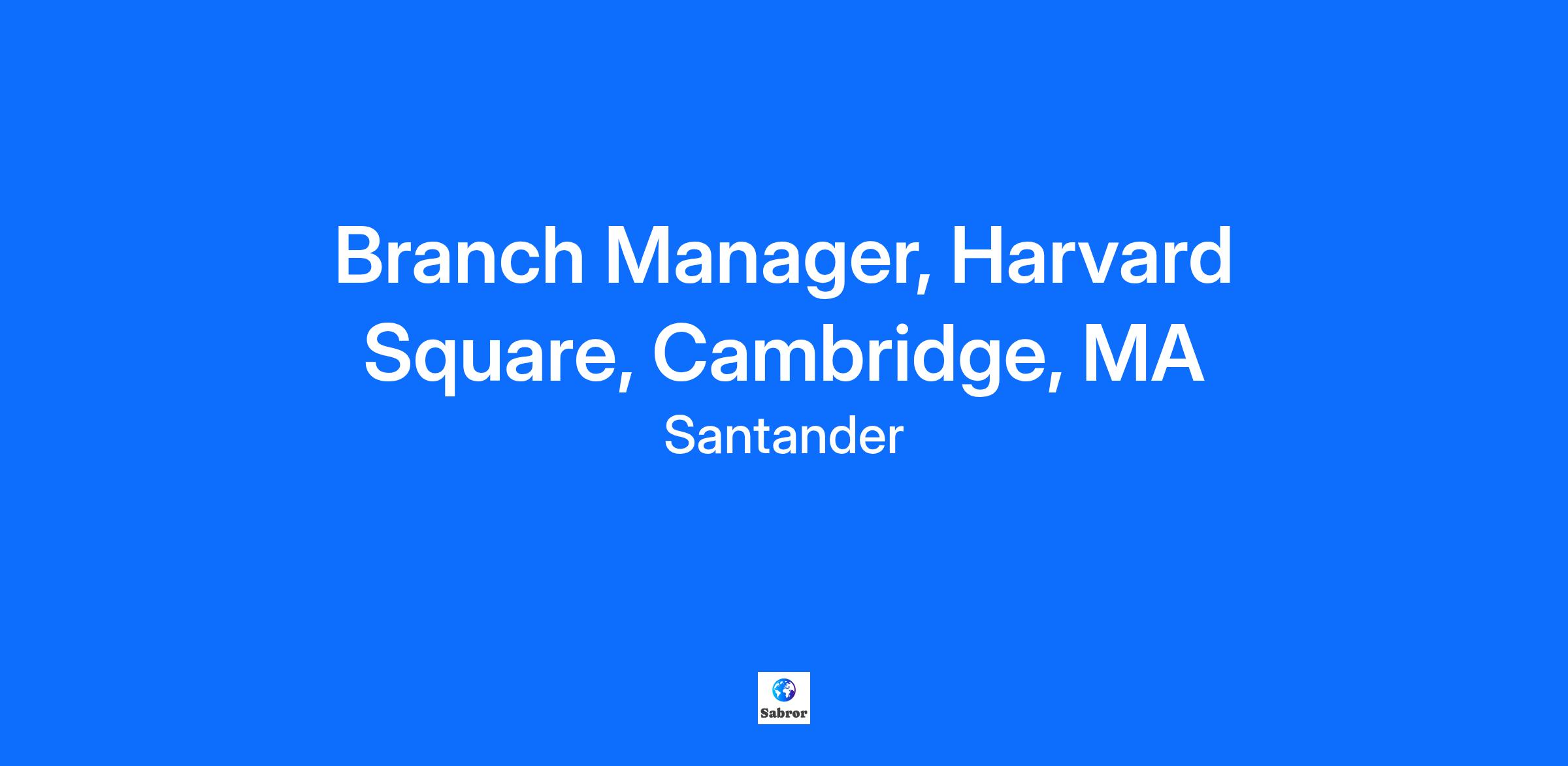 Branch Manager, Harvard Square, Cambridge, MA Country: United States of America Your Journey Starts Here: Santander is a global leader and innovator in the financial services industry. We believe that our employees are our greatest asset. Our focus is on fostering an enriching journey that empowers you to explore diverse career opportunities while nurturing your personal growth. We are committed to creating an environment where continuous learning and development are prioritized, enabling you to thrive both professionally and personally. Here, you will find ample opportunities to connect and collaborate with talented colleagues from around the world, sharing insights and driving innovation together. Join us at Santander, where you are supported by a culture of engagement and a commitment to your success. An exciting journey awaits, if you are interested in exploring the possibilities We Want to Talk to You! The Difference You Make: As a Branch Manager you oversee the performance of the branch and daily operations, ensuring excellent customer experience, achievement of financial goals and efficient operations. The manager is responsible for leading and coaching a team, managing sales activities, deepening customer relationships, and ensuring compliance with banking regulations. This role includes fostering a positive work environment to drive employee engagement and productivity. You develop a culture within the branch in which quality and continuous improvement on all performance accountabilities are understood and utilized by all team members. Direct overall branch performance, leading team to achieve sales targets, optimize operational processes and enhance customer satisfaction. Develop and implement sales strategies to grow revenue and market share. Motivate sales teams to effectively manage a pipeline of prospects and customers. Engage in consultative conversations with customers to offer tailored solutions that enhance their financial well-being, foster customer loyalty and increase branch productivity. Analyze branch performance data to drive strategic decisions to improve branch performance and operational efficiency. Coach and develop team members, setting clear expectations, enhancing performance and fostering professional development. Responsible for hiring, retaining and motivating branch colleagues across all job families within the branch. Accountable for managing branch scheduling to balance branch needs with employee availability. Utilize digital technologies and platforms to enhance customer interactions, educate them on self-service options and drive business outcomes. Provide an elevated experience, simplifying processes for customers while ensuring exceptional customer service. Manage escalated customer problems and provide effective solutions. Communicate clearly and effectively with customers in person, over the phone, or through digital channels. Accountable for risk management and compliance within a complex business environment, ensuring adherence to all company policies and regulatory requirements. Responsibilities may extend to supporting nearby branch locations based on business necessity. What You Bring: To perform this job successfully, an individual must be able to perform each essential duty satisfactorily. The requirements listed below are representative of the knowledge, skill, and/or ability required. Reasonable accommodations may be made to enable individuals with disabilities to perform the essential functions. High school diploma, GED: or equivalent education - Required. Bachelor's Degree: in related field or equivalent demonstrated through a combination of work experience, training, military service, or education - Preferred. 3+ Years Demonstrated successful experience in Retail Bank sales management or related bank operations/support function - Required. (OR) 5+ Years Experience in Retail sales management or equivalent demonstrated through a combination of work experience, training, military service, or education - Required. (OR) 12+ Months Demonstrated successful Santander experience related to the essential functions and responsibilities of the Branch Manager role. District Executive, District Operations Manager and Region President endorsement of performance - Required. (AND) 3+ Years Experience selling products and/or services in an incentive-based environment - Required. Proven experience in a sales leadership role, preferably as a Branch Manager or similar position. Proven relationship-building skills and a customer-centric approach. Excellent leadership and team management skills. Excellent customer service skills and a passion for helping others. Strong problem-solving skills with a proactive approach to issue resolution. Experience in coaching and developing team members. Excellent communication, consultative and influence skills both verbal and written. Ability to educate and connect customers to technology and share the value of digital tools and platforms. Ability to make data-driven decisions to improve performance and operational outcomes. Establishes and maintains effective working relationships. Ability to create a positive work environment and drive employee engagement. Strong knowledge of company policy, compliance regulations, risk management and loss prevention. Ability to work in a fast-paced environment and manage multiple priorities. Ability to interact with integrity and professionalism with customers and employees. Computer proficiency and basic math skills. Ability to work branch hours, which can include weekends and evenings. Certifications: No Certifications listed for this job. It Would Be Nice For You To Have: Established work history or equivalent demonstrated through a combination of work experience, training, military service, or education. Experience in Microsoft Office products. What Else You Need To Know: The base pay range for this position is posted below and represents the annualized salary range. For hourly p