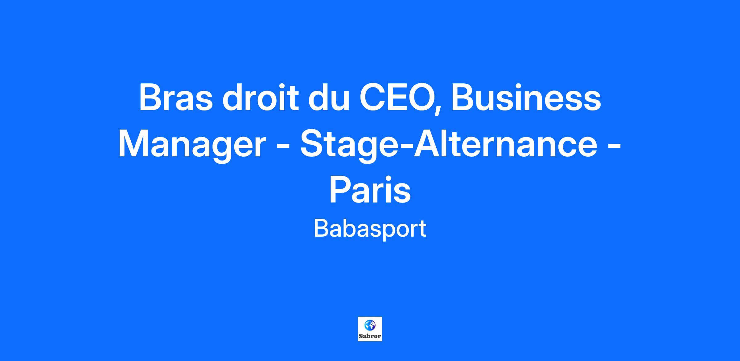 En rejoignant Babasport en tant que bras droit du CEO, tu participeras à l’évolution d’une startup en pleine croissance sur le marché de l'évènementiel. Ainsi, tu t’épanouiras dans un large spectre de missions qu’implique l’univers entrepreneurial. Vos missions Développement commercial : tu seras amené(e) à participer au développement commercial de Babasport (trouver de nouveaux leads, générer de nouveaux partenariats, etc.) Communication : tu participeras à la communication de Babasport sur les différents réseaux sociaux et de son rayonnement sur le marché du digital. Admin et Compta : tu aideras Antoine, dans les tâches administratives et opérationnelles du quotidien. Stratégique : au quotidien, tu participeras à des missions ponctuelles selon les besoins : benchmarks et veilles concurrentielles, gestion de documents stratégiques, présentation et audit prospectif, gestion des agenda, etc. Couteau suisse : tu seras également challengé(e) sur pleins d’autres sujets autour de l’univers entrepreneurial. Vos compétences Tu es quelqu’un de sympa (toujours), avec de l’humour (c’est mieux) et une mentalité start-up (indispensable), quelqu’un qui a le sens du service : la bienveillance et l’empathie sont une seconde nature, quelqu’un de rigoureux et d’autonome