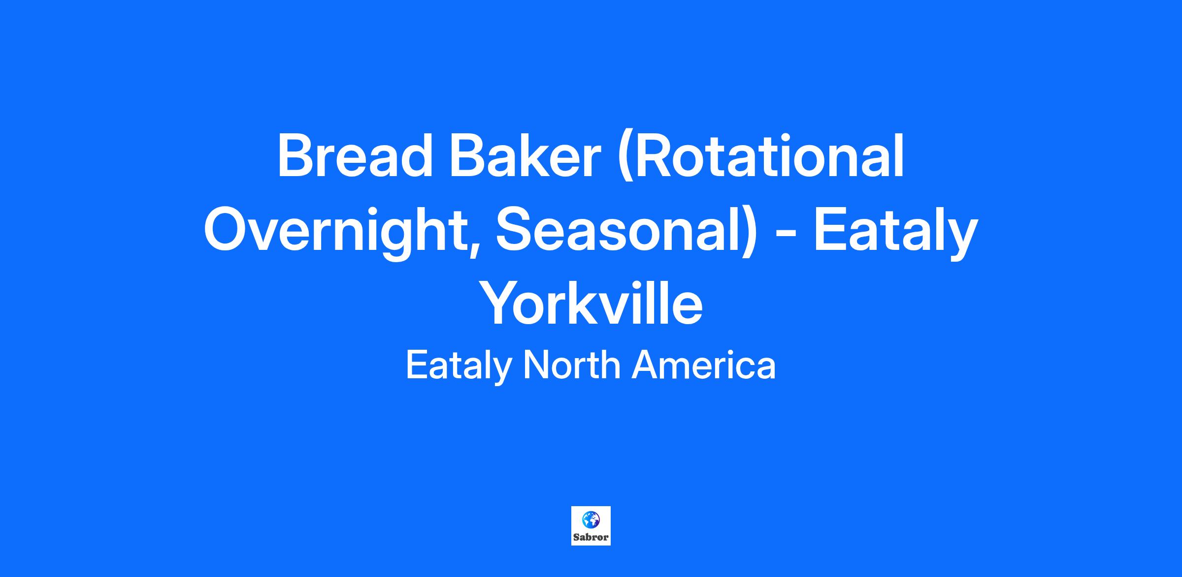 Company Description Eataly is the world’s largest artisanal Italian food and beverage marketplace! Eataly is not a chain; each Eataly is different, with its own character and own theme – but all with the same aim... for our guests to: EAT authentic Italian food at our restaurants, cafés and to-go counters SHOP a selection of high-quality Italian, local and homemade products LEARN through our classes and our team’s product knowledge Job Description This is a Seasonal role, with an expected end date of 01/04/2026. In Eataly’s 24-hour operating bakery, a Bread Baker is responsible for producing delicious bread and focaccia in accordance with our authentic Italian recipes. Reports to the Bakery Manager. Prepares bread, focaccia, rolls and other bread items for Eataly’s restaurants and retail operations Follows proper proofing and baking techniques for each variety of bread Maintains a clean and sanitary food production area according to Department of Health standards Works towards mastering all shifts and production processes Assists Sales Associates if needed and engages with guests interested in learning about our bread production Performs other duties as required or assigned Qualifications High school diploma or equivalent 1+ year of experience in a baker preparation position Basic math and measuring skills Good work ethic, communication and time management skills Post-secondary culinary program highly preferred Job Requirements Availability to work onsite with an open, flexible schedule often including evenings and weekends; overnights highly preferred Ability to lift up to 50 pounds Ability to exert well-paced mobility for up to 8 hours, including standing, walking, bending and squatting Ability to work with a wood burning oven, electric pizza convection oven and commercial spiral mixer Additional Information Benefits and Perks Medical, Dental, Vision Insurance Paid Time Off Paid Parental Leave RRSP Bonus program Free family meal daily Discounts at Eataly Classes on products and Italian cuisine Referral bonus program and more! Eataly is committed to creating and maintaining a workplace that is free from harassment and discrimination under the Ontario Human Rights Code. The Company’s policy is not to discriminate against any applicant or employee on the basis of a prohibited ground enumerated by the Ontario Human Rights Code (e.g. race, colour, creed (religion), place of origin, sex (including pregnancy, gender identity), sexual orientation, age, family status, or disability). Eataly also prohibits harassment of applicants and employees based on any of these prohibited grounds. Eataly welcomes and encourages applications from people with disabilities. Accommodations are available on request for candidates taking part in all aspects of the selection process. Please advise Human Resources if you require accommodation. Further, it is Eataly’s policy to comply with all applicable provincial and federal laws regarding background and criminal record checks in making hiring decisions.