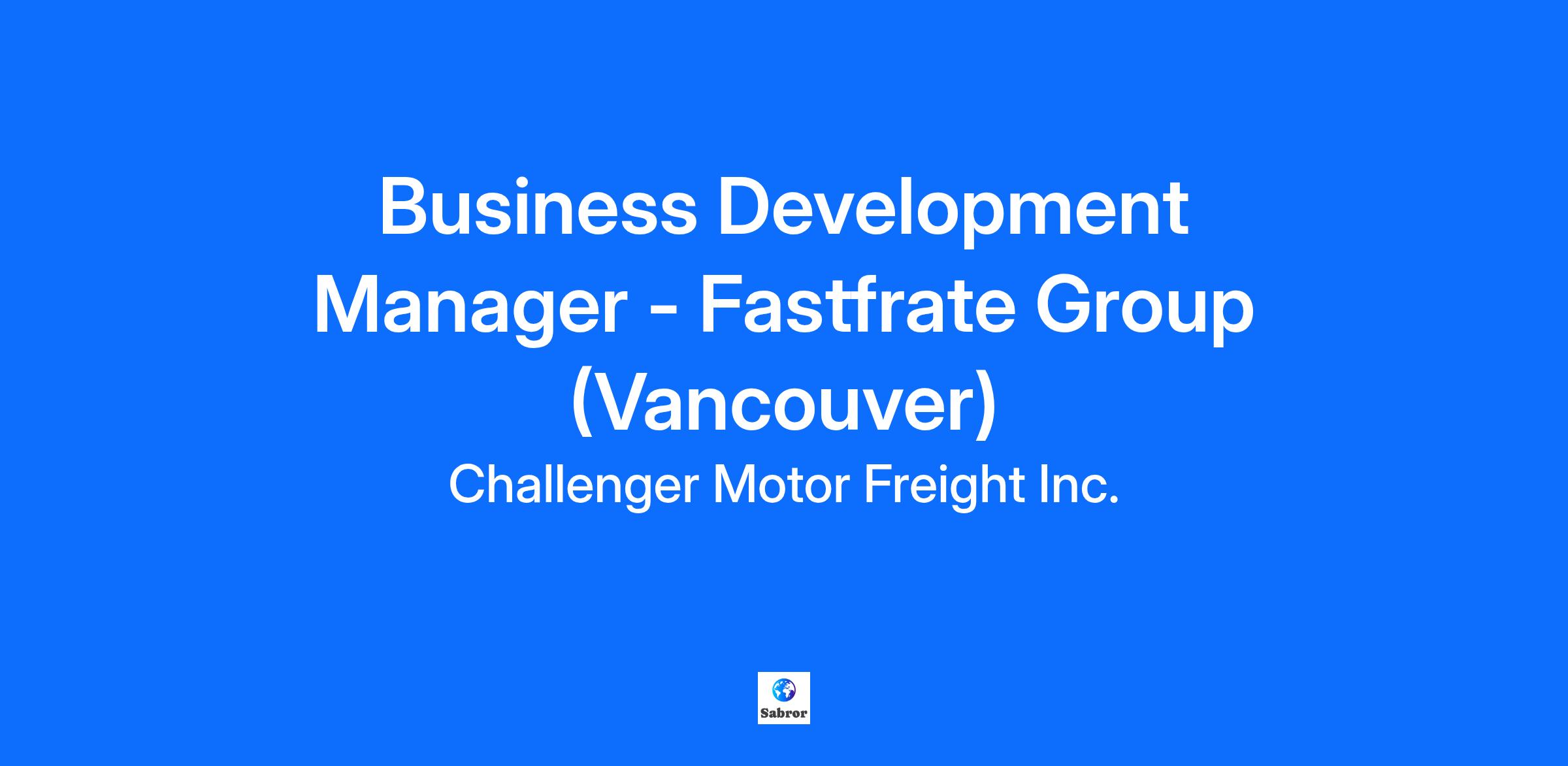 Business Development Manager - Fastfrate Group (Vancouver)