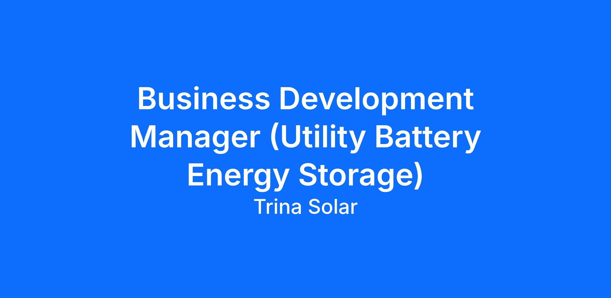 Business Development Manager (Utility Battery Energy Storage)