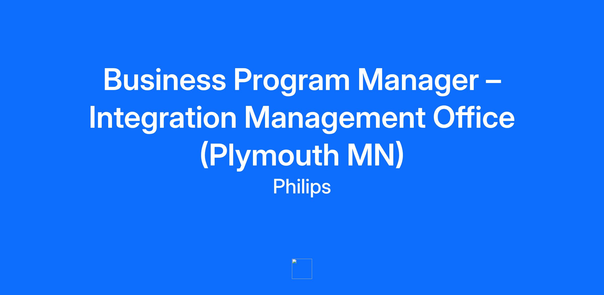 Job Title Business Program Manager – Integration Management Office (Plymouth MN) Job Description Drive seamless integration of a newly acquired business by partnering with the Business Integration Leader to execute strategy, manage cross-functional activities, and deliver transformative outcomes that position the company for long-term success while meeting the commitments of the deal model. Your role: Serve as the right hand to the Business Integration Leader, supporting strategy development and execution from team level to CEO alignment. Facilitate governance and decision-making through structured meetings, agendas, and progress reviews. Design and manage KPIs, leading indicators, and dashboards to measure success and enable proactive course correction. Help build communication plans to ensure leadership is informed. Oversee integration goals, timelines, and budgets, ensuring delivery of high-impact outcomes across all workstreams. Champion people and culture initiatives to foster engagement, alignment, and a smooth transition during integration. You're the right fit if: You have 5+ years of experience with Bachelor's OR Minimum 3 years of experience with Master's in areas such as Project Development, Business Strategy, Project Management or equivalent. Proven experience in program or project management, ideally in business integration, M&A, divestiture or transformation initiatives. Strong organizational and communication skills with the ability to influence and collaborate across functions. Experience building communication and culture plans, experience with efficiency tools for project and schedule management. Expertise in developing KPIs, dashboards, and performance tracking tools. Ability to manage complex projects within scope, time, and budget constraints. You have a Bachelor's/ Master's Degree in Business Administration, Project Management or equivalent. You must be able to successfully perform the following minimum Physical, Cognitive and Environmental job requirements with or without accommodation for this position. How we work together We believe that we are better together than apart. For our office-based teams, this means working in-person at least 3 days per week. Onsite roles require full-time presence in the company’s facilities. Field roles are most effectively done outside of the company’s main facilities, generally at the customers’ or suppliers’ locations. This is an office role About Philips We are a health technology company. We built our entire company around the belief that every human matters, and we won't stop until everybody everywhere has access to the quality healthcare that we all deserve. Do the work of your life to help improve the lives of others. Learn more about our business. Discover our rich and exciting history. Learn more about our purpose. Learn more about our culture. Philips Transparency Details The pay range for this position in Plymouth MN is $120,000 to $190,000 The actual base pay offered may vary within the posted ranges depending on multiple factors including job-related knowledge/skills, experience, business needs, geographical location, and internal equity. In addition, other compensation, such as an annual incentive bonus, sales commission or long-term incentives may be offered. Employees are eligible to participate in our comprehensive Philips Total Rewards benefits program, which includes a generous PTO, 401k (up to 7% match), HSA (with company contribution), stock purchase plan, education reimbursement and much more. Details about our benefits can be found here. At Philips, it is not typical for an individual to be hired at or near the top end of the range for their role and compensation decisions are dependent upon the facts and circumstances of each case. Additional Information US work authorization is a precondition of employment. The company will not consider candidates who require sponsorship for a work-authorized visa, now or in the future. Company relocation benefits will not be provided for this position. For this position, you must reside in or within commuting distance to Plymouth MN. #LI-Office This requisition is expected to stay active for 45 days but may close earlier if a successful candidate is selected or business necessity dictates. Interested candidates are encouraged to apply as soon as possible to ensure consideration. Philips is an Equal Employment and Opportunity Employer including Disability/Vets and maintains a drug-free workplace. At Philips, we believe that every human matters. As a global health-tech leader, we focus on improving people’s health and wellbeing through meaningful innovation. The people who work here share our passion and are motivated to bring this purpose to life. For more than 130 years, we have been creating technologies and innovations that improve people's lives and support healthcare practitioners. Headquartered in the Netherlands and operating in more than 100 countries globally, we focus our advanced technology and deep clinical and consumer insights on Precision Diagnosis, Image Guided Therapy, Enterprise Informatics, Monitoring/ Connected Care, Sleep & Respiratory Care and Personal Health. Together, we deliver better care for more people because we believe that every human matters. That's why we're taking steps to create an environment where we acknowledge and embrace our differences and uniqueness and listen to and value each other's views. When people feel cared for and listened to, they bring their best qualities to work, leading to better collaboration, communication, innovation and success. It is the policy of Philips to provide equal employment and advancement opportunities to all qualified employees and applicants for employment without regard to race, color, religion, sex, pregnancy/childbirth or related medical conditions, age, ethnic or national origin, sexual orientation, gender identity or expression, physical or mental disability, genetic information, citiz