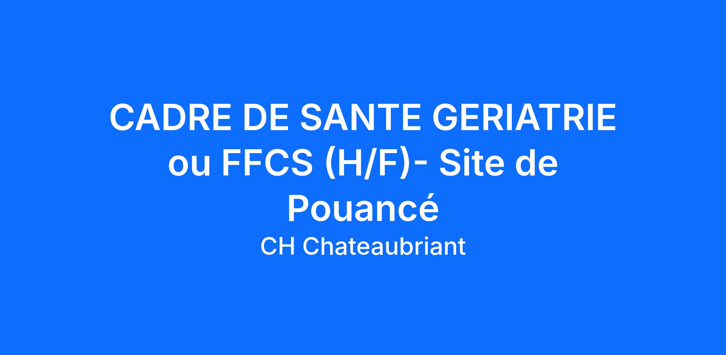 Le Centre hospitalier Châteaubriant-Nozay-Pouancé recherche un Cadre de Santé (H/F) ou un Faisant Fonction Cadre de Santé. Le poste est basé à Pouancé (secteur EHPAD) et à pourvoir dans les meilleurs délais.