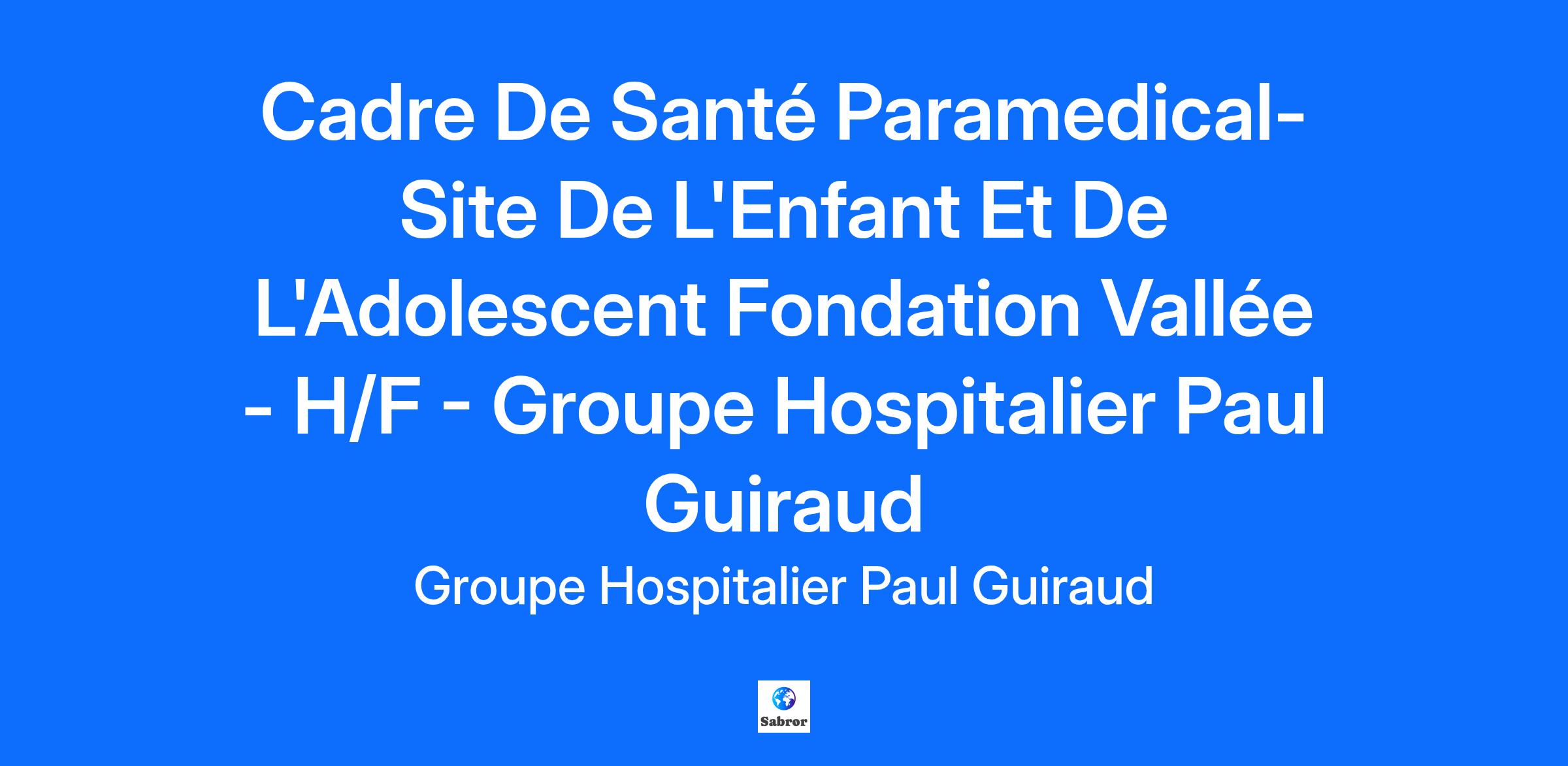 Métier / Fonction : Cadre de santé paramédical site de l’enfant et de l’adolescent – CH Fondation Vallée