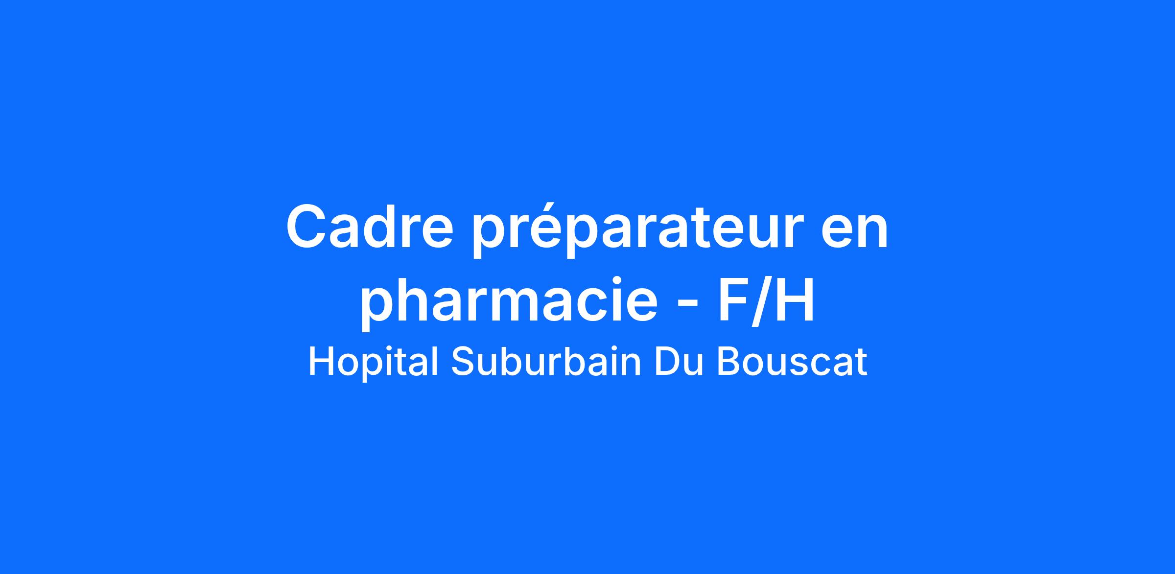 l’Hôpital Suburbain du Bouscat est à la recherche d’un.e cadre Préparateur en pharmacie en CDI à temps plein.
