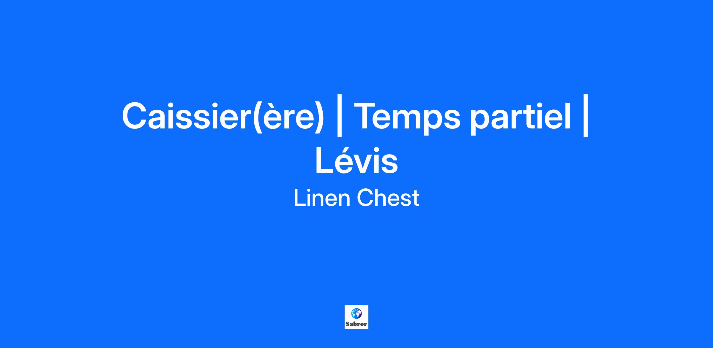 Description de l'entreprise Caissier(ère) | Temps partiel | Lévis Vous aimez offrir aux clients un service avant et après-vente impeccable ? Vous êtes à l’aise avec les systèmes de caisse et la gestion d’argent ? Vous voulez faire partie d’une équipe dynamique ? Nous sommes à la recherche de quelqu'un comme vous pour rejoindre notre équipe ! Description du poste Ce que nous vous offrons : Entreprise familiale qui priorise le bien-être de ses employés ; Congés de maladies payées ; Environnement de travail humain où nos talents sont reconnus et appréciés ; Opportunités de croissance au sein de l’entreprise ; Formations et développement professionnels ; Possibilité de faire du temps plein ou du temps partiel selon vos préférences ; Programme d’assurances collectives (médical, paramédical et dentaire)* ; Programme de référencement (jusqu’à 1000$) ; Rabais sur tous les produits Linen Chest ; Qualifications Passionné du service à la clientèle ; Expérience avec une caisse ; Habile et à l’aise avec un ordinateur ; Capable de fournir un excellent service à la clientèle ; Disponible le jour, le soir et le weekend. Informations complémentaires Il s'agit d'une occasion exceptionnelle de travailler pour une entreprise qui vous permettra d'évoluer dans un environnement de travail où vous pourrez vous épanouir et faire la différence. Venez faire carrière au sein de la grande famille Linen Chest ! * Le générique masculin inclut le féminin et est utilisé sans aucune discrimination et uniquement dans le but d'alléger le texte.